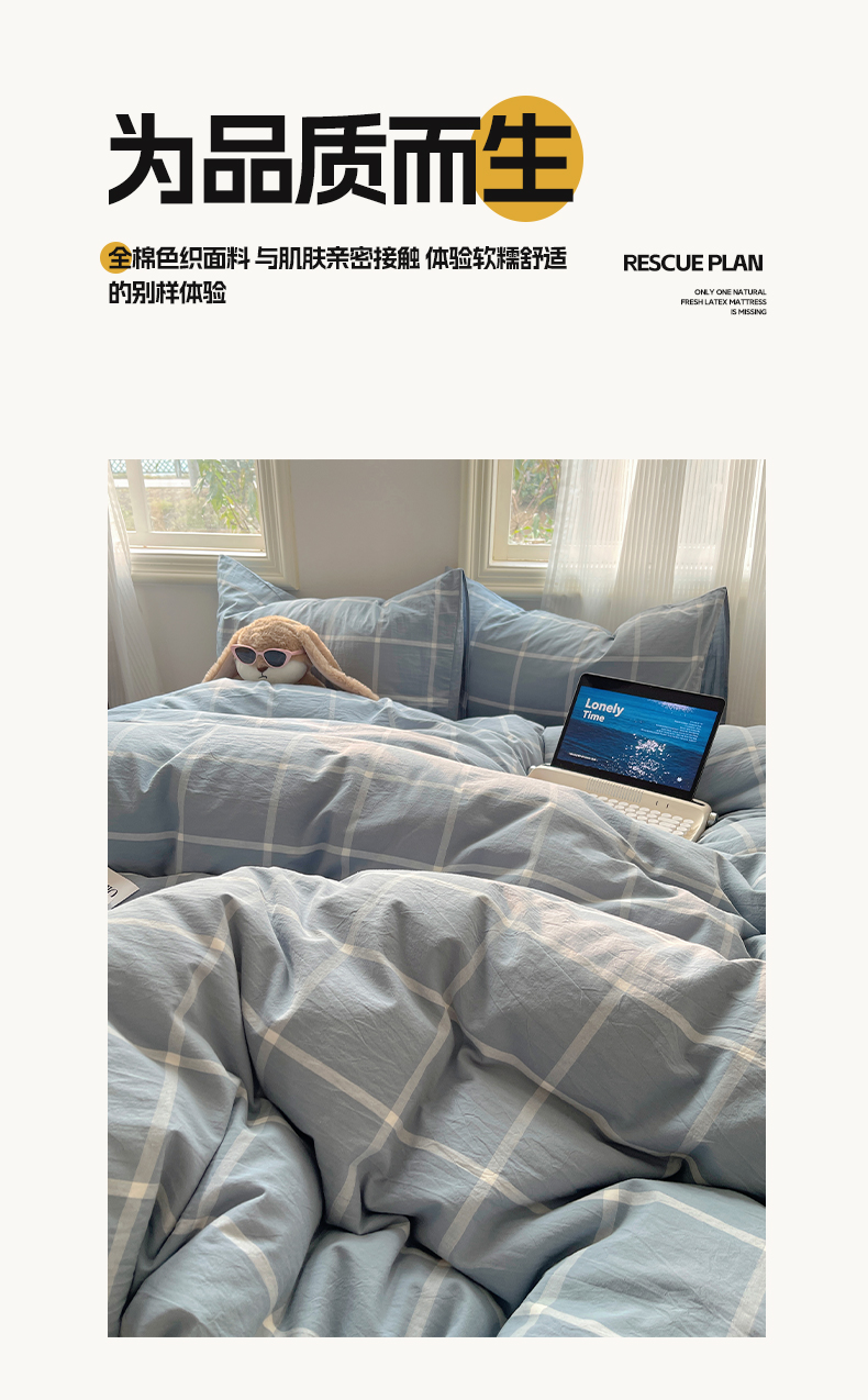 商品名称:雅居纺家纺 2024新款色织水洗棉四件套 柏林蓝格