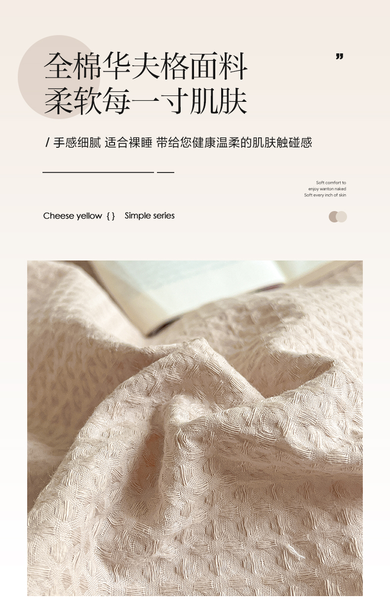 (总)雅居纺家纺 2022新款全棉华夫格普通款四件套,焦糖,米驼,奶油白,柔粉,深灰,雾蓝,月灰