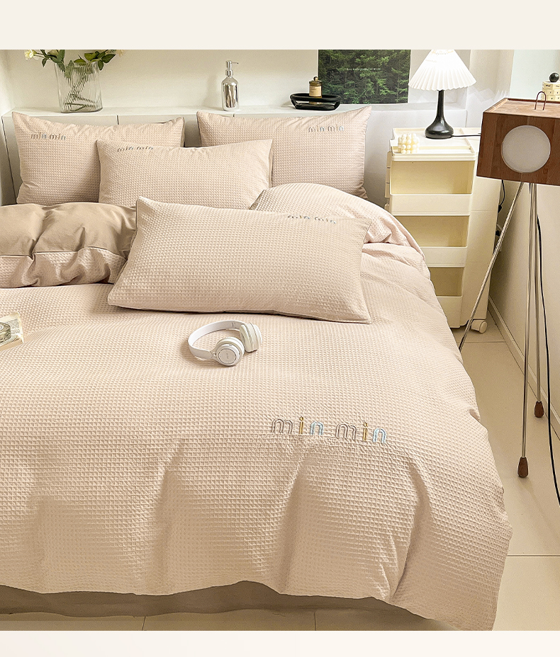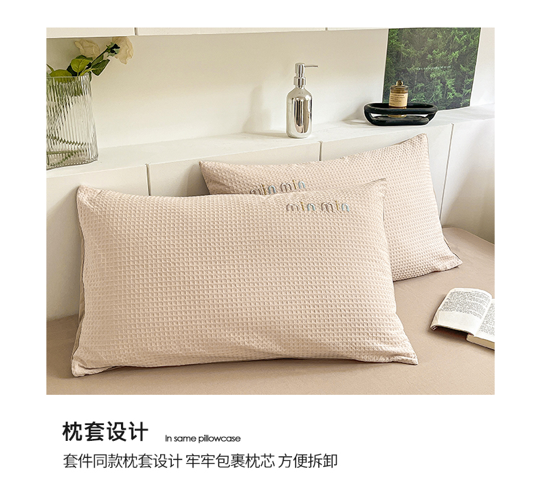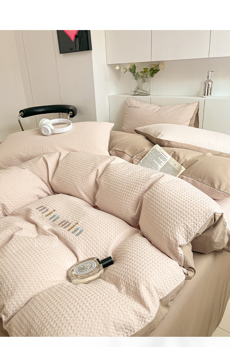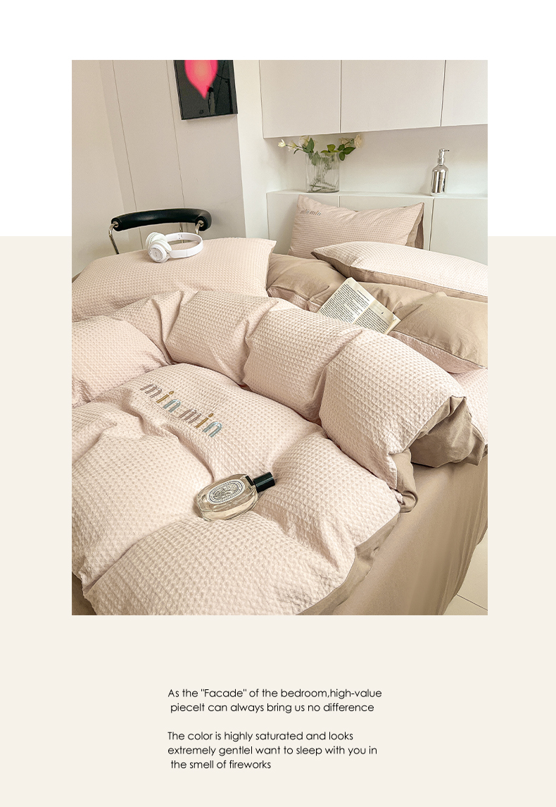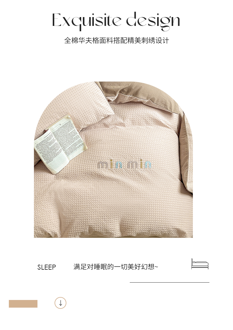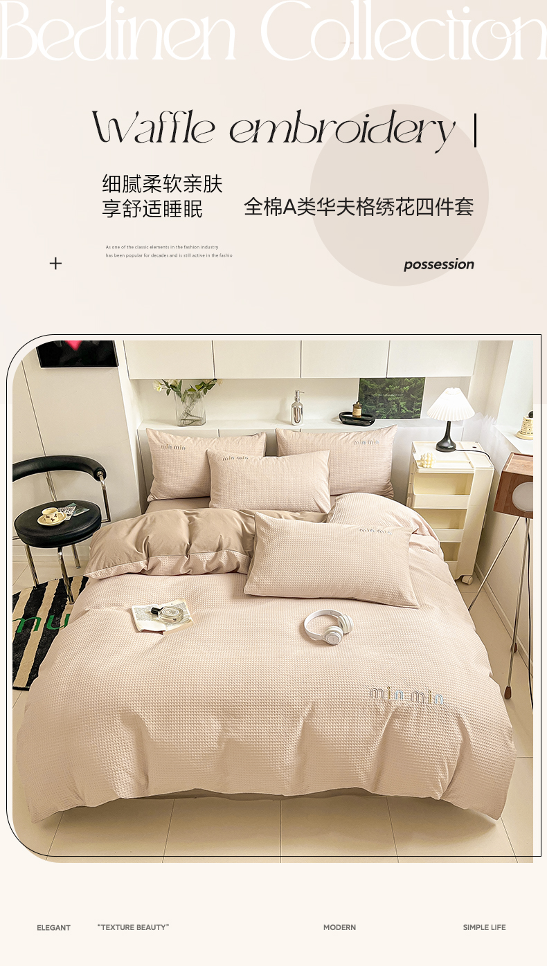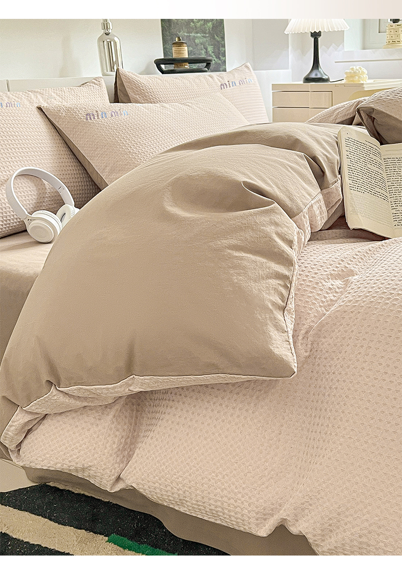 商品名称:雅居纺家纺 2024新款全棉华夫格绣花四件套 Min-驼色