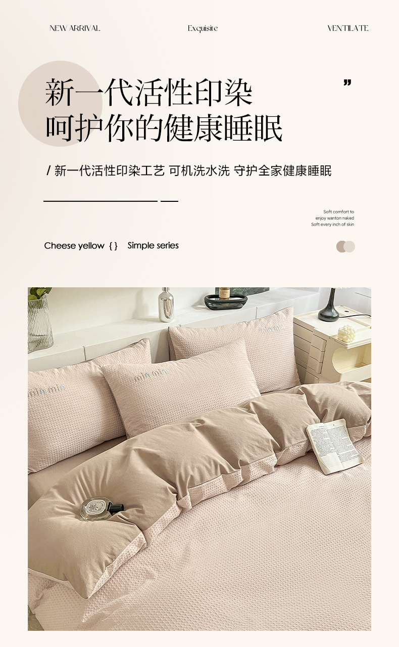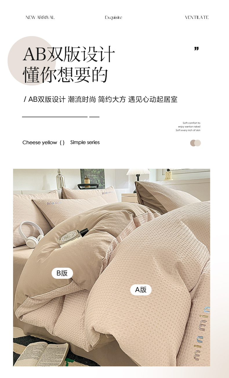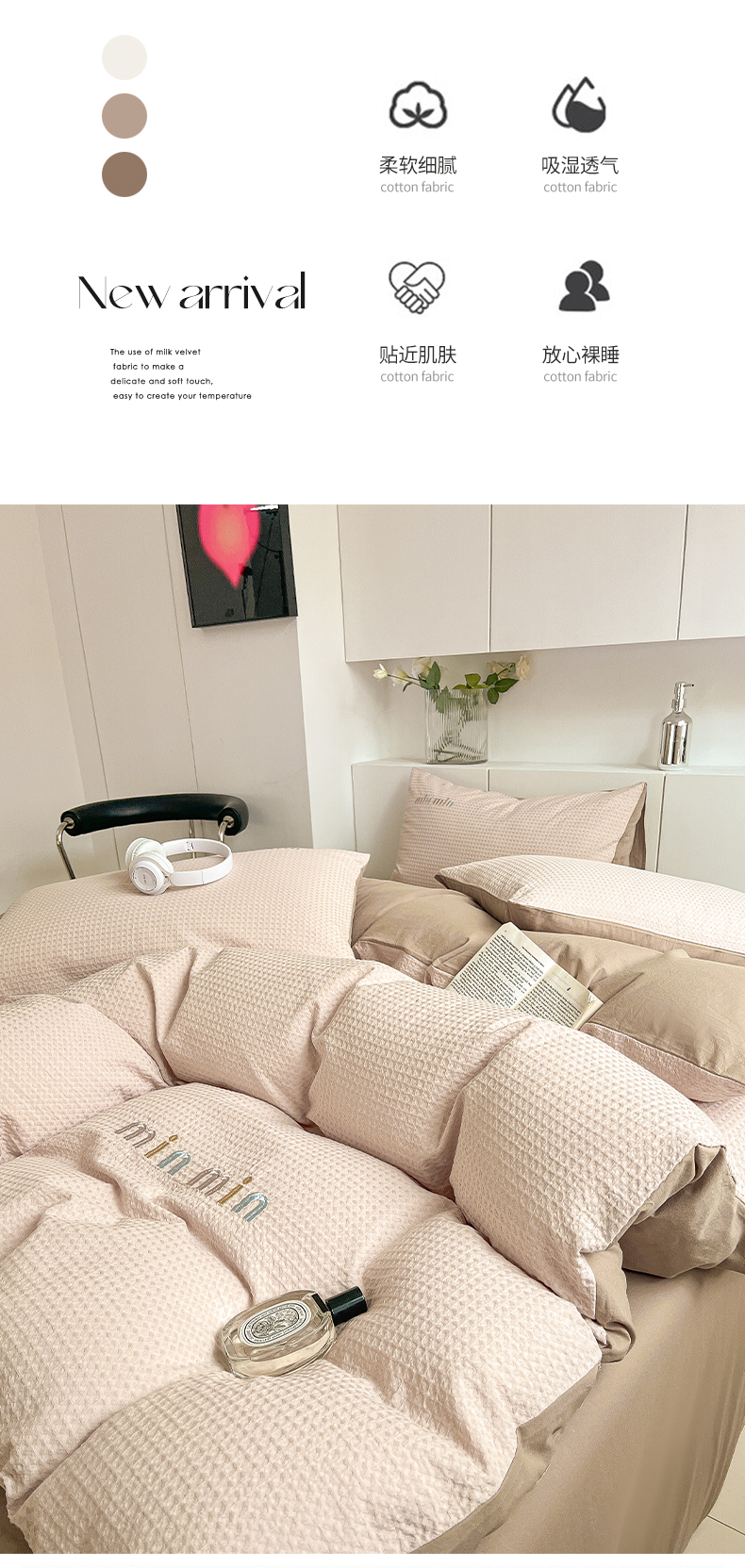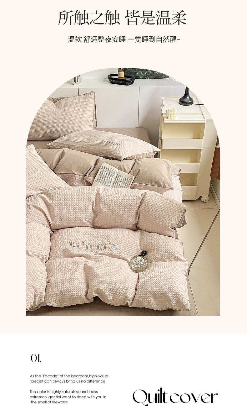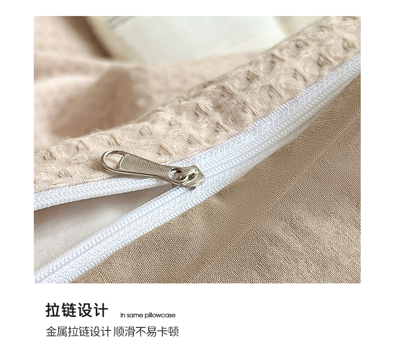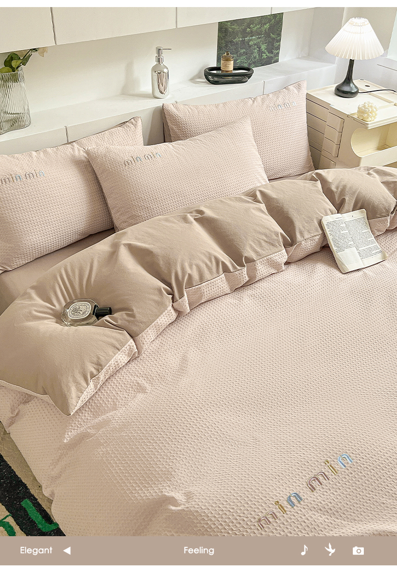 商品名称:雅居纺家纺 2024新款全棉华夫格绣花四件套 Min-驼色