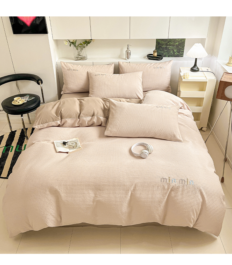 雅居纺家纺 2024新款全棉华夫格绣花四件套 Min-驼色