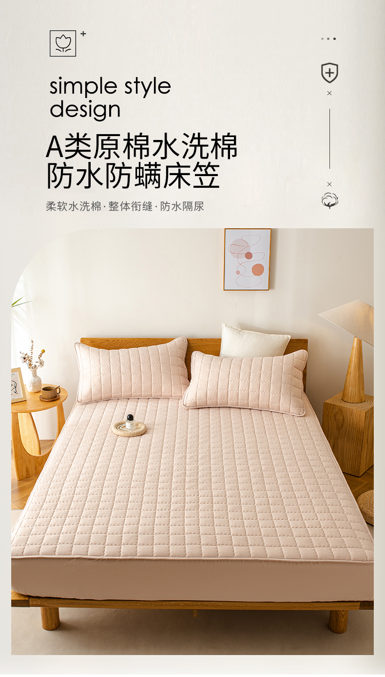 商品名称:花言狐语 2025新款A类原棉防水防污床笠--艾薇格系列 艾薇格床笠-卡其