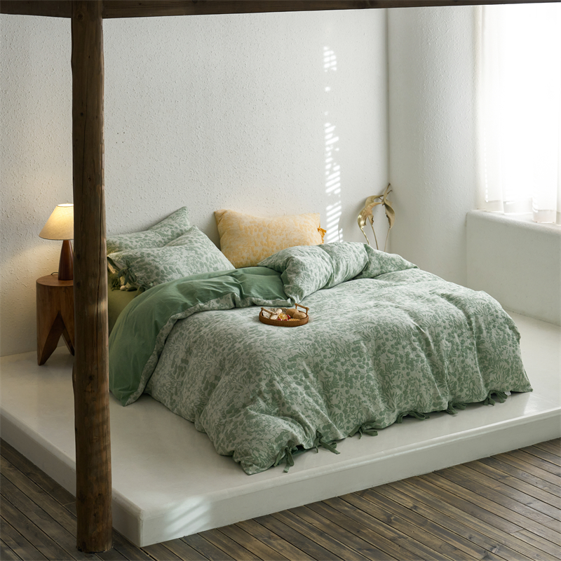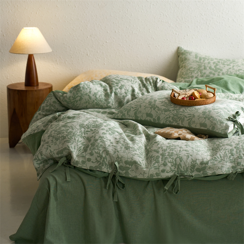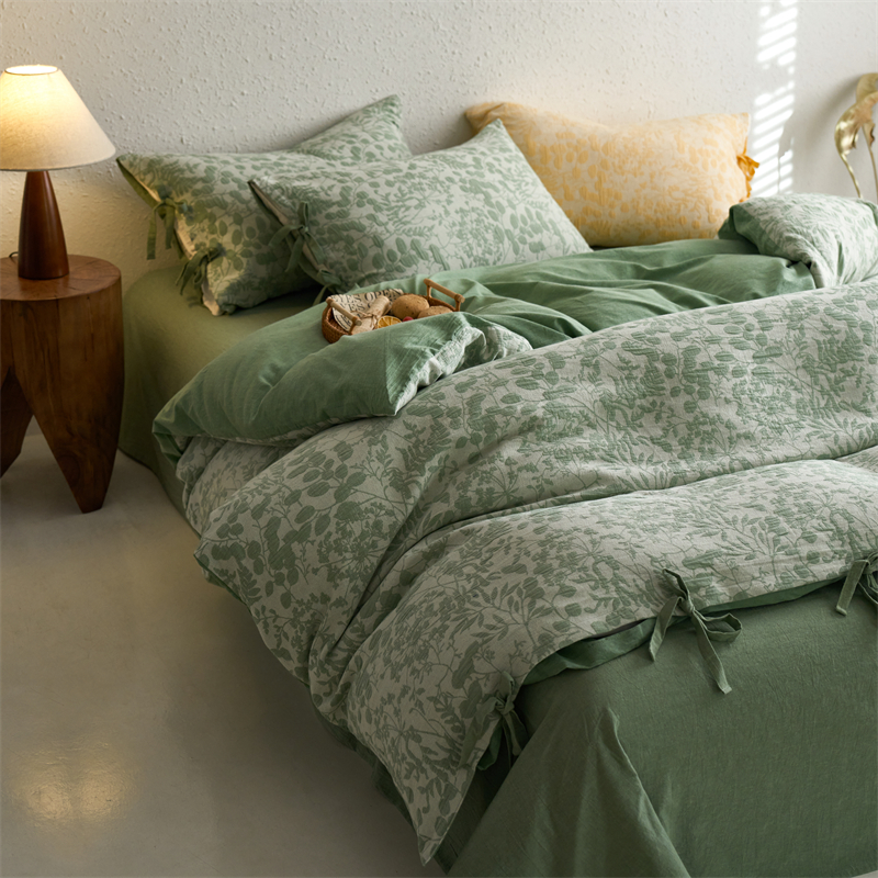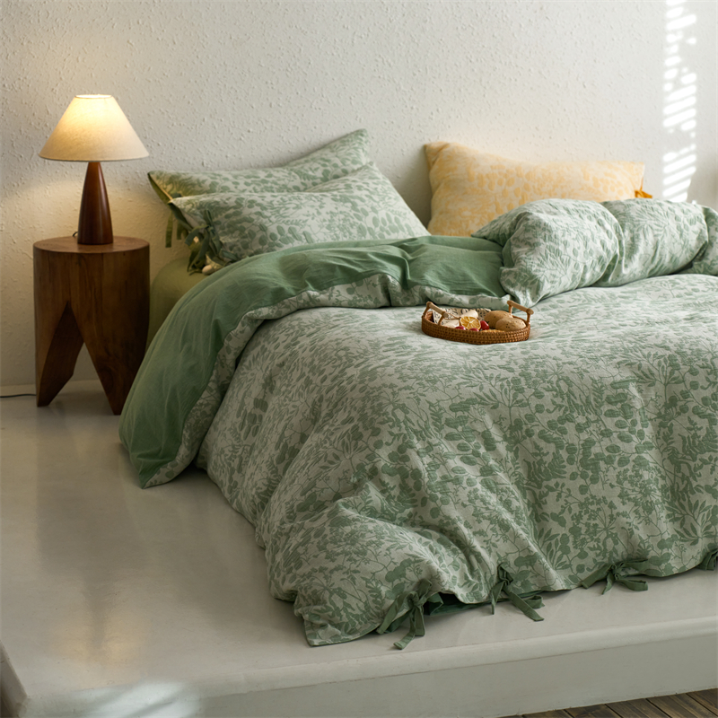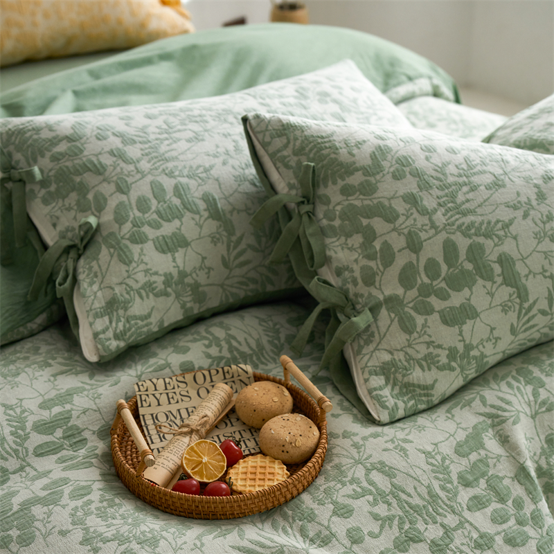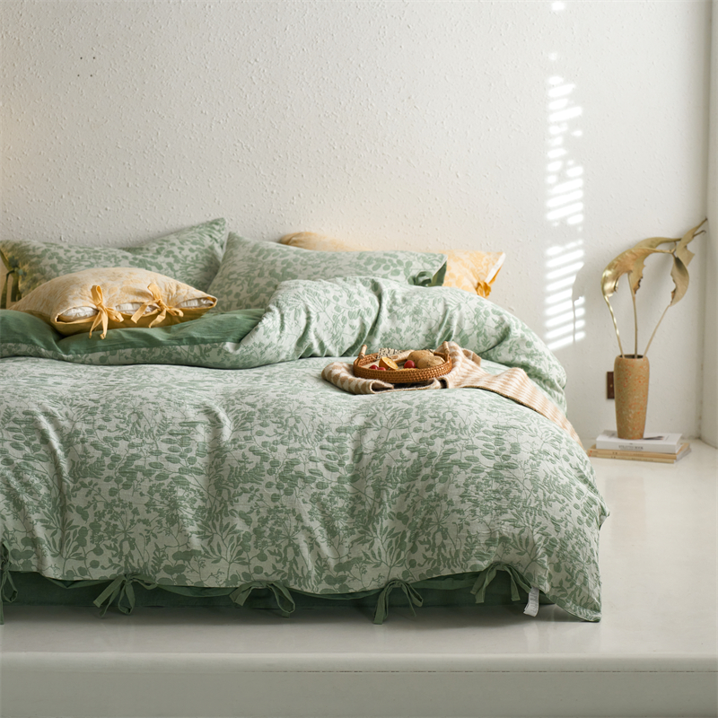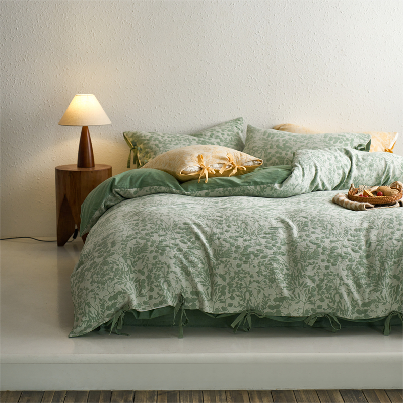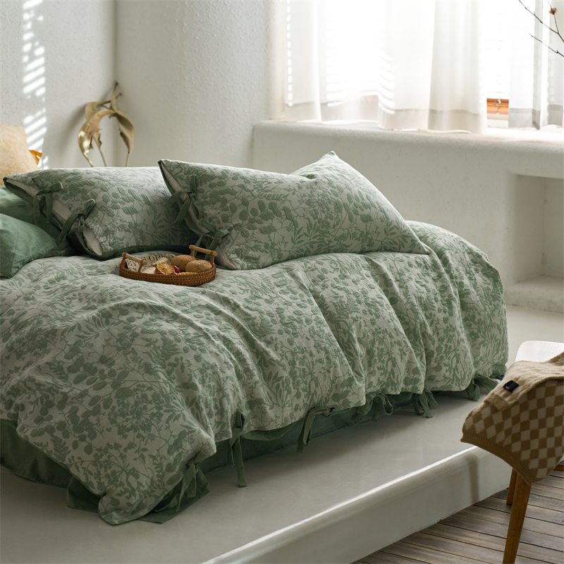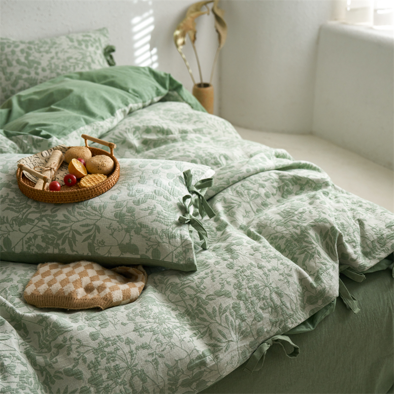 当前位置: 91家纺网 > 商品网购 > 床品套件 > 四件套 > 色织四件套 > 安莱生活 2024新款高端双层纱栀子花色织大提花蝴蝶结工艺款四件套 栀子花-嫩绿