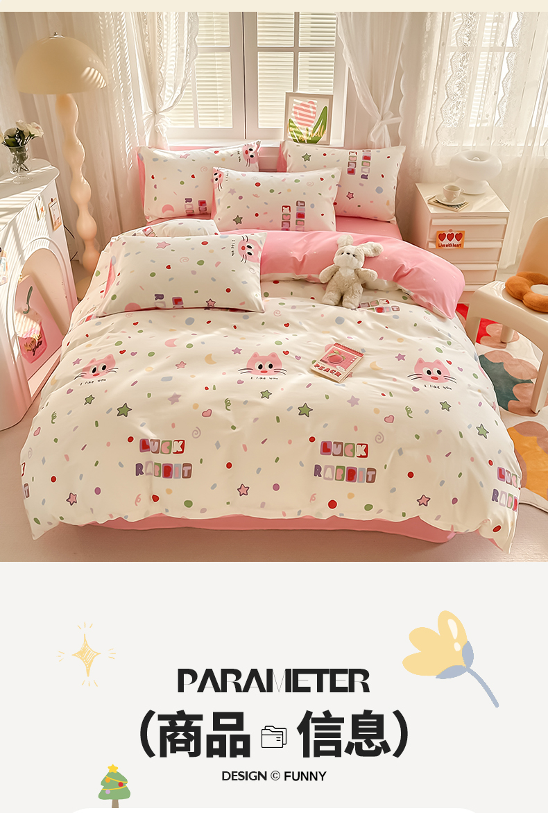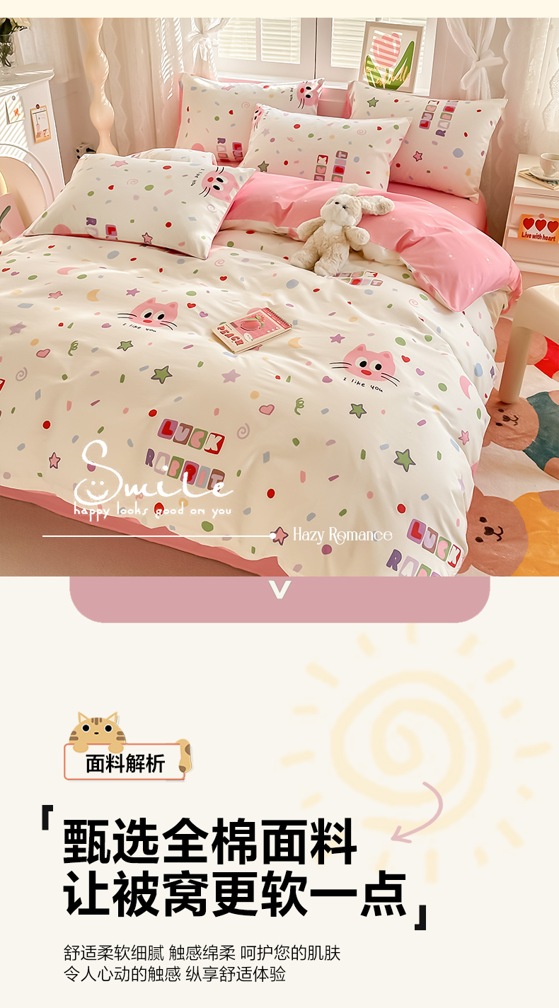 商品名称:沐辰 2024新款13372全棉印花四件套(第二批) 幸运猫