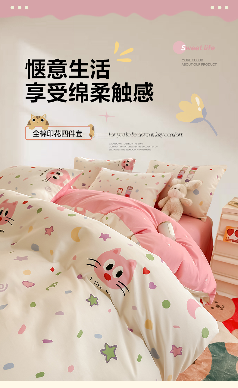 沐辰 2024新款13372全棉印花四件套(第二批) 幸运猫
