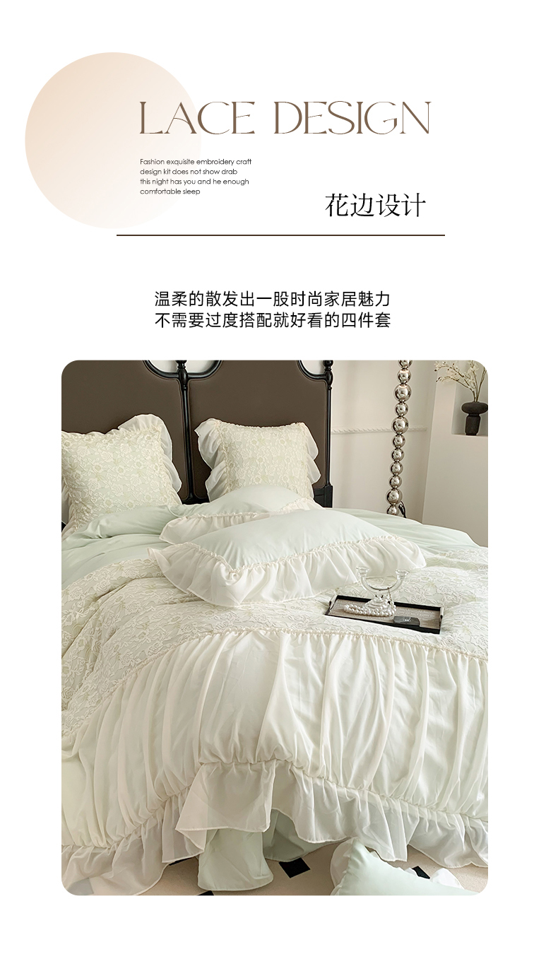 (总)吾欢心 2025秋冬新款加厚雕花绒婴儿绒安娜贝尔系列法式双层花边四件套,安娜贝尔白,安娜贝尔粉,安娜贝尔咖,安娜贝尔蓝,安娜贝尔绿,安娜贝尔紫