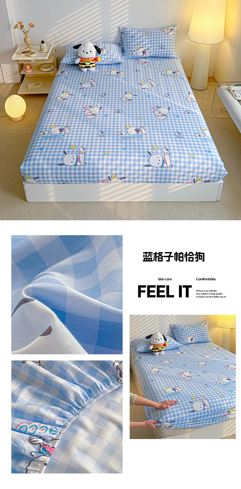 商品名称:爱丽丝 2024新款全棉三丽鸥新品系列-单床笠 格子帕恰狗