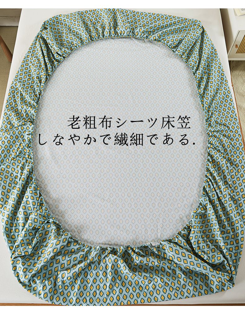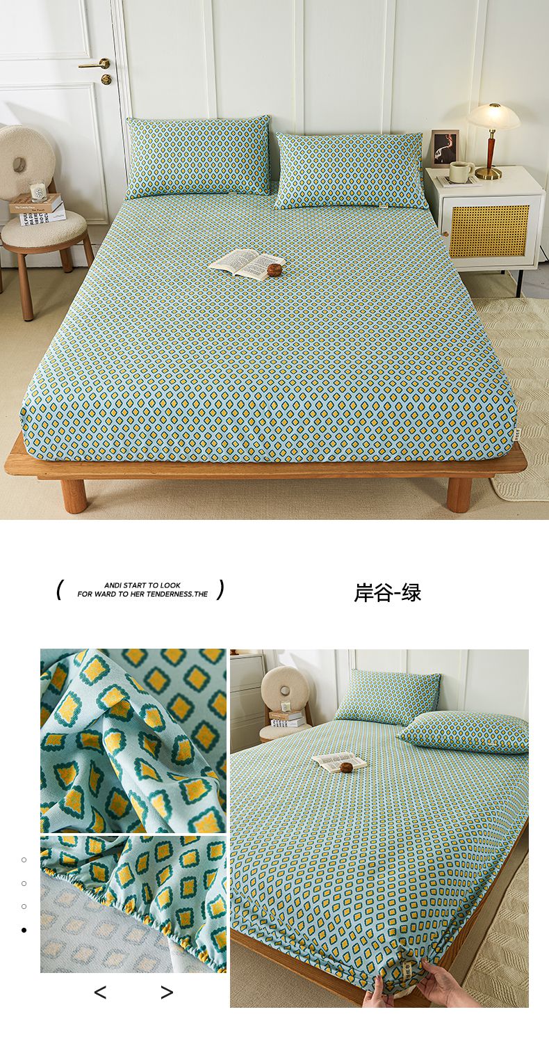 九沐良品 新款全棉无印老粗布单品床笠+三件套 岸谷-绿