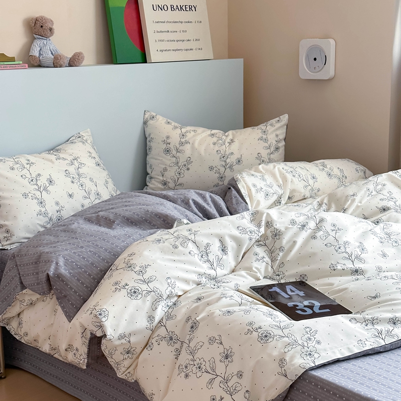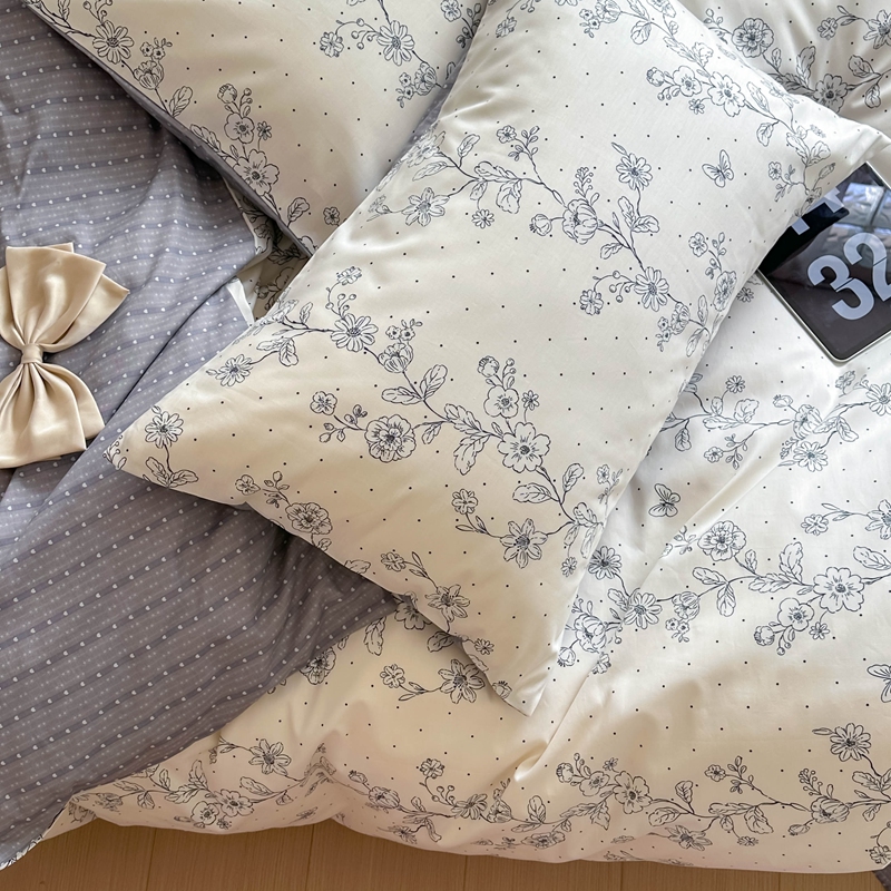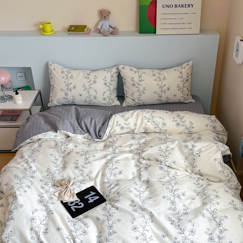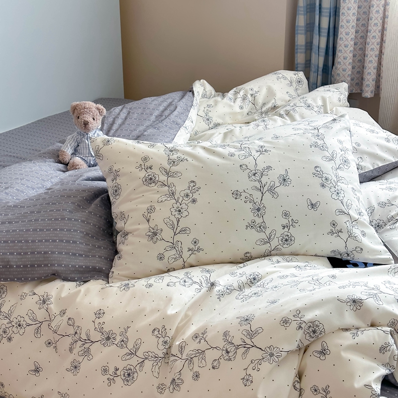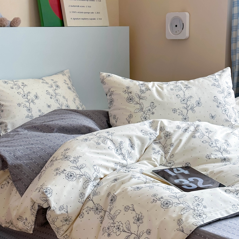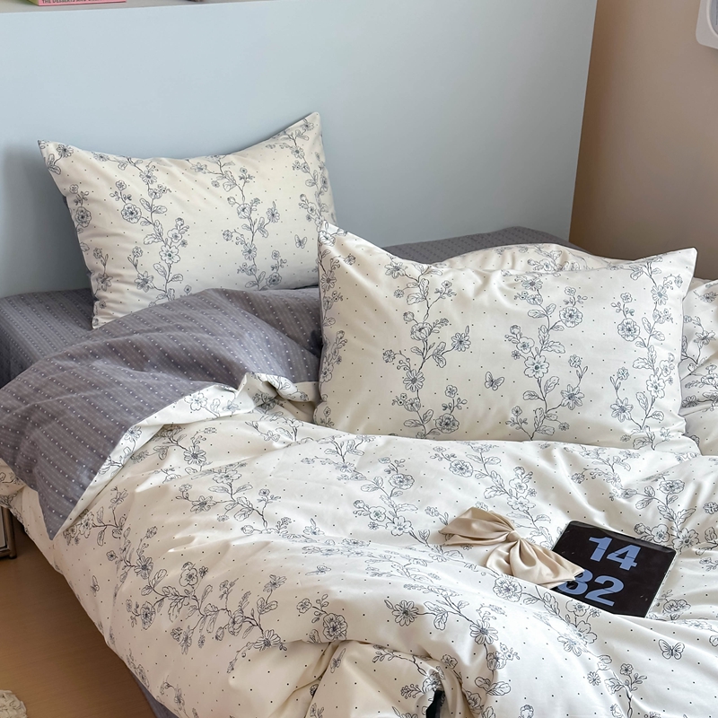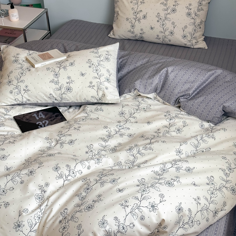 时年 2024新款全棉数码大版趣味系列四件套 花满溢-米