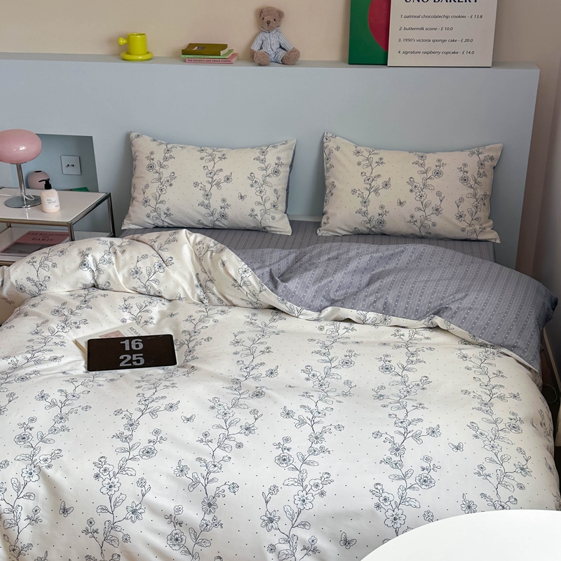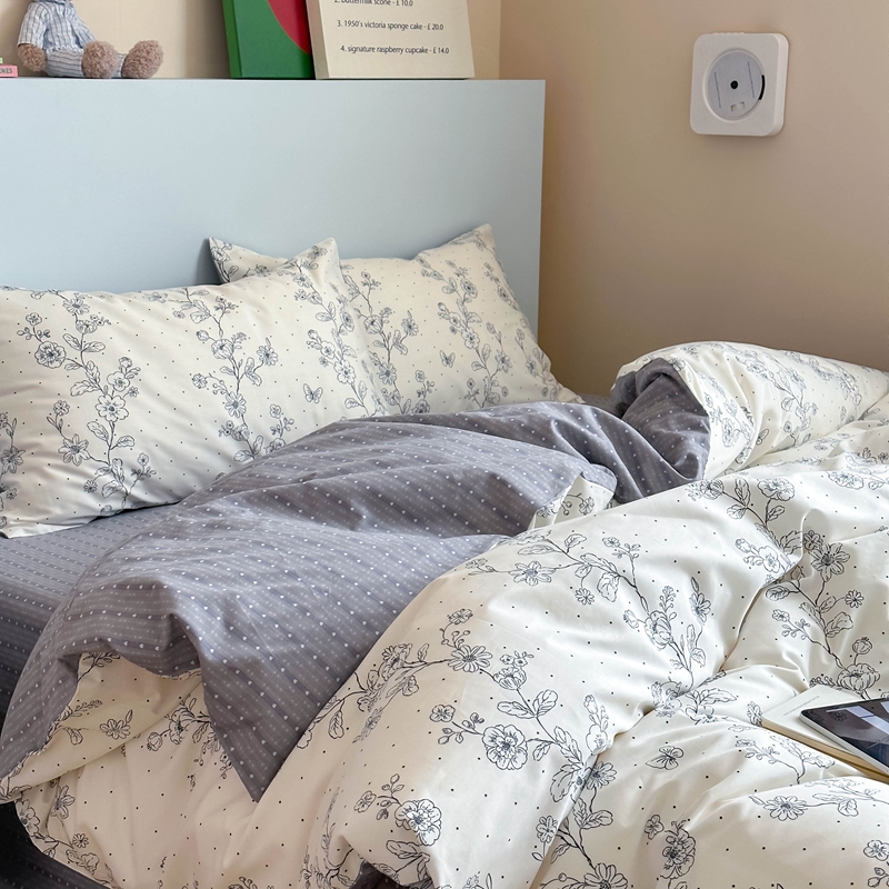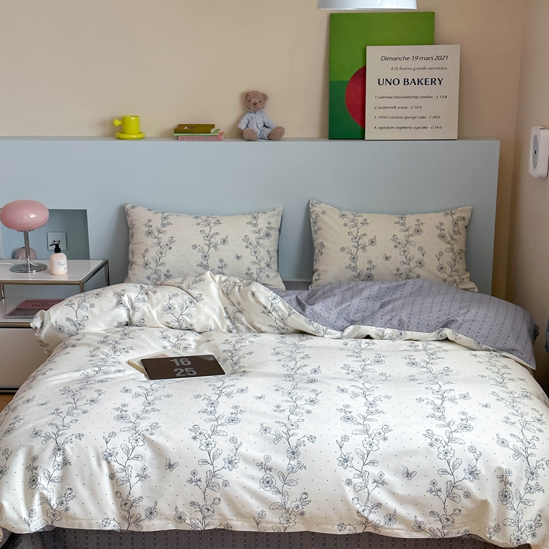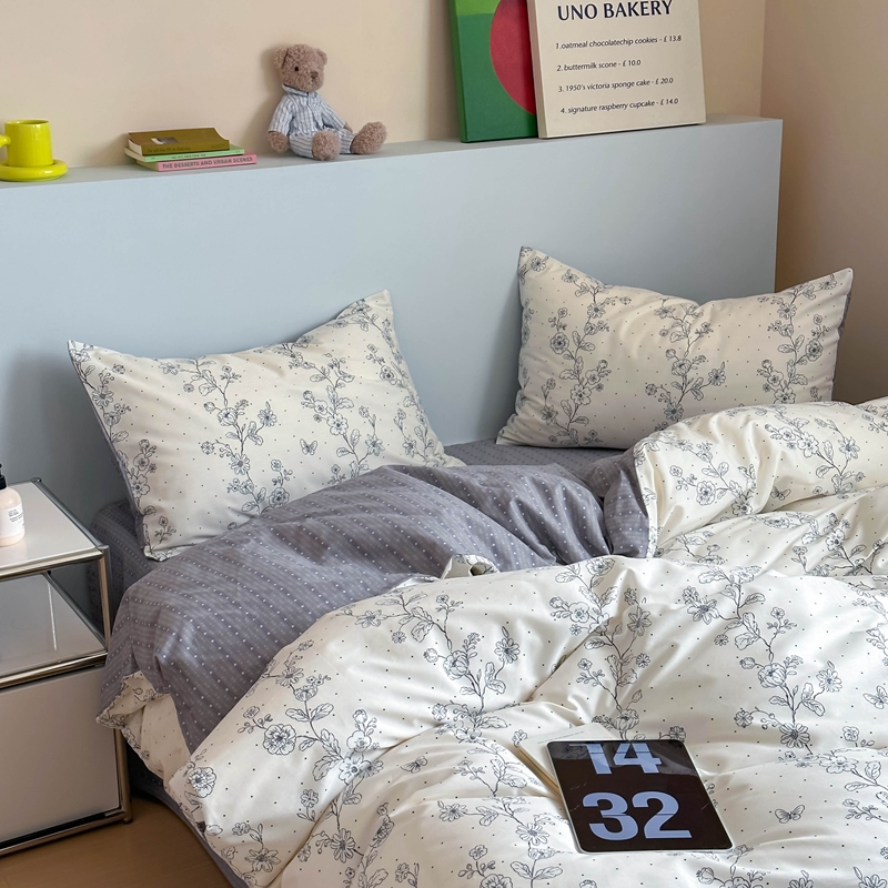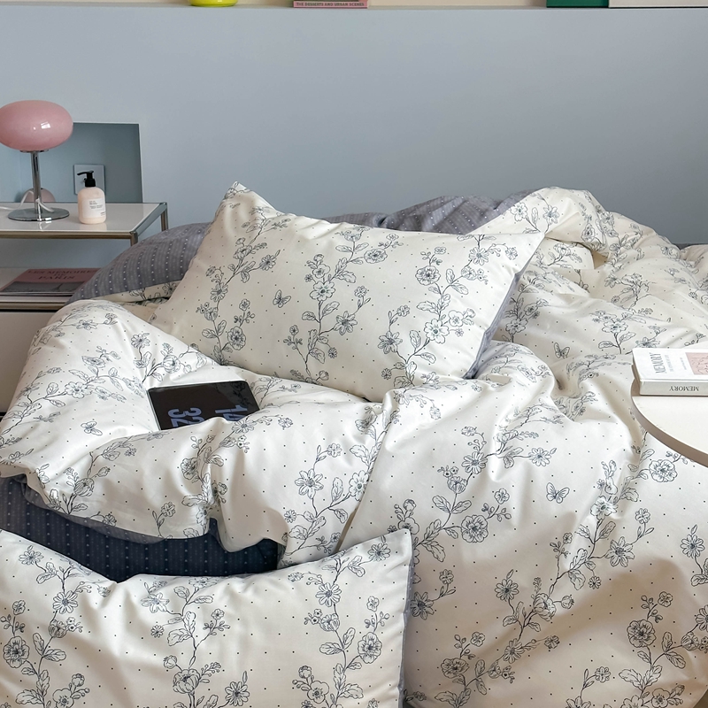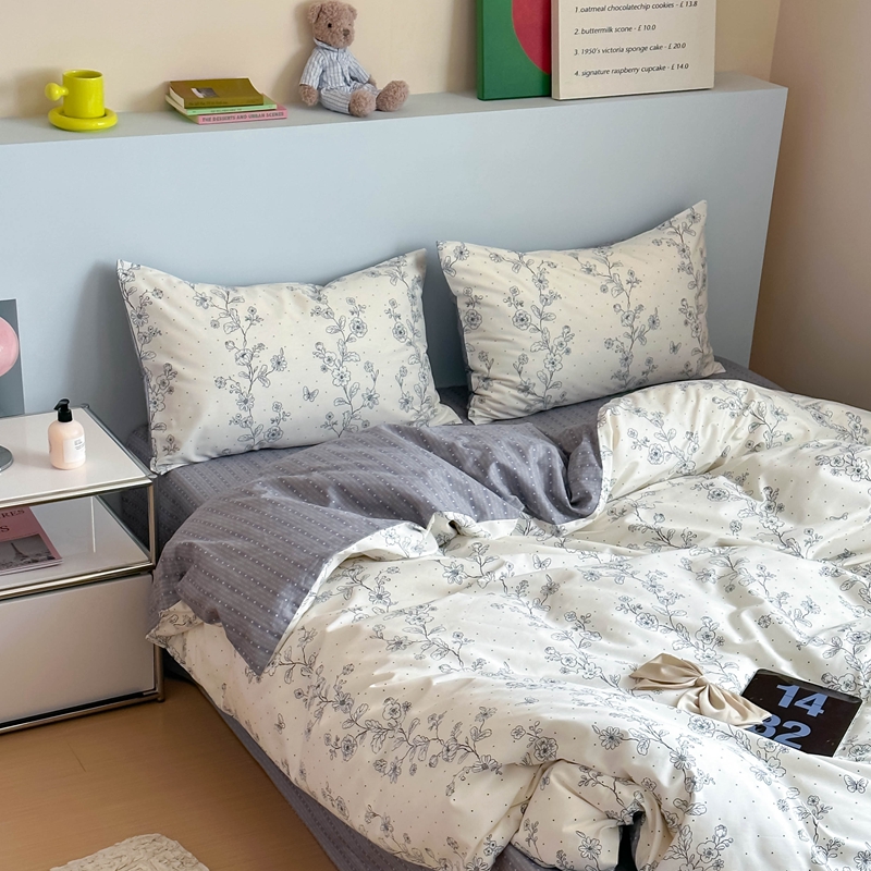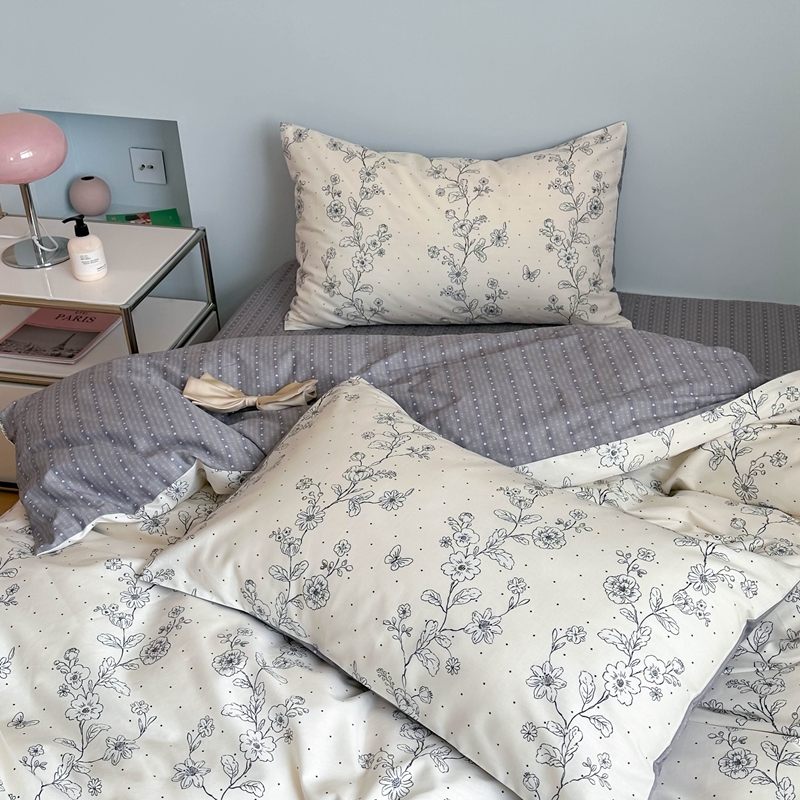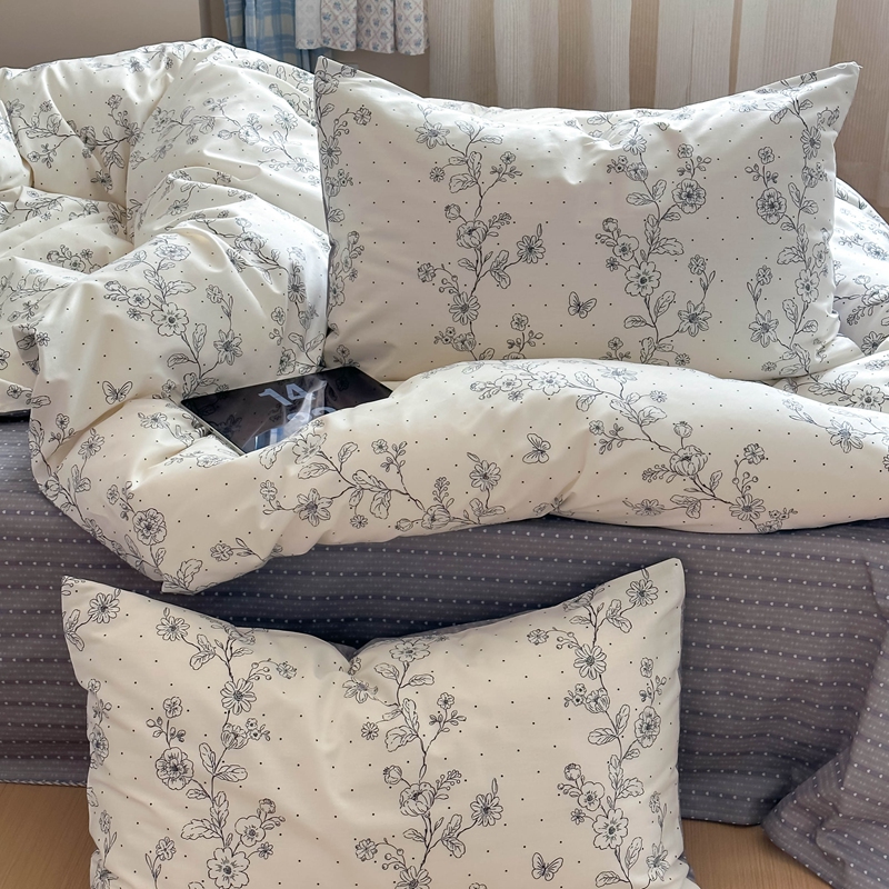 时年 2024新款全棉数码大版趣味系列四件套 花满溢-米