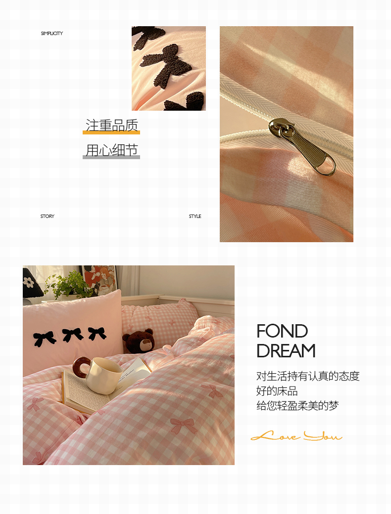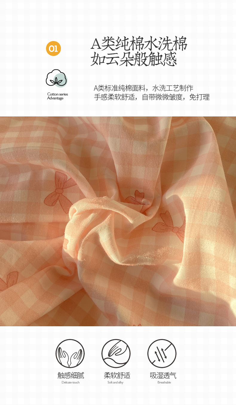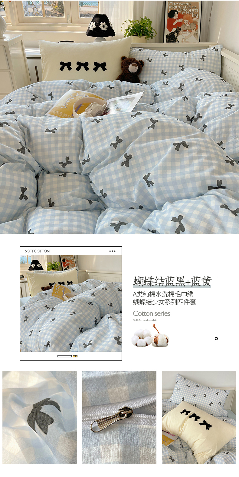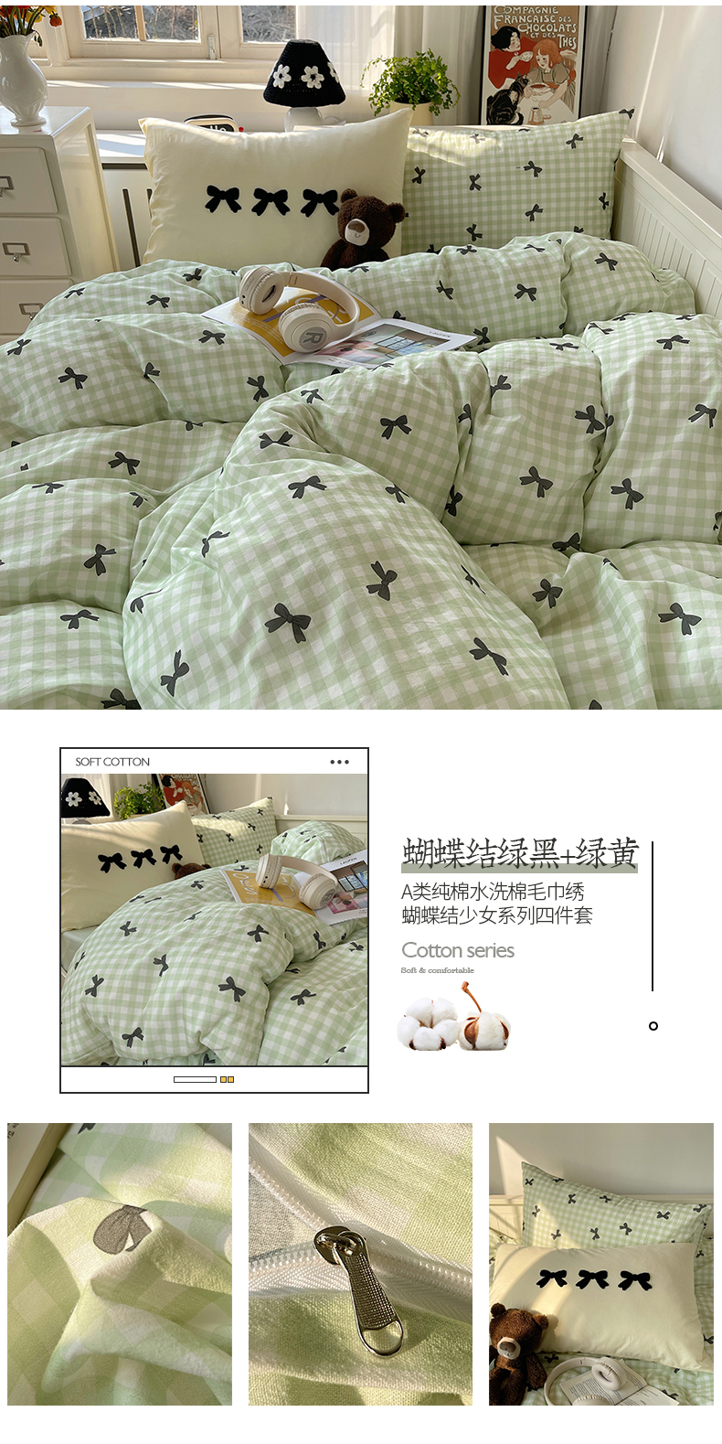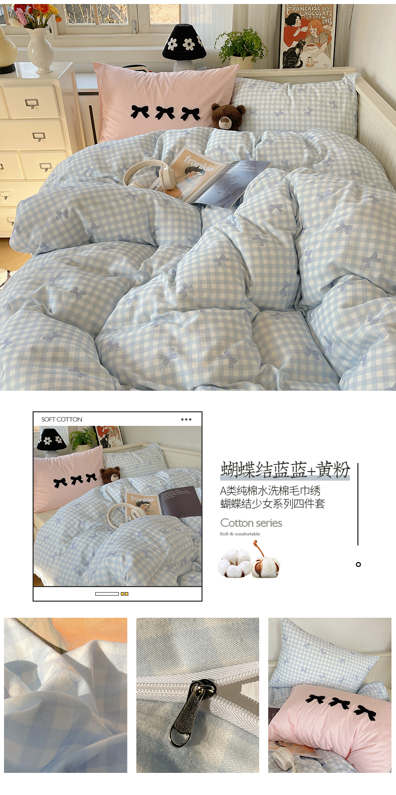 商品名称:(总)桃子家居 2024新款A类纯棉水洗棉毛巾绣蝴蝶结少女系列四件套