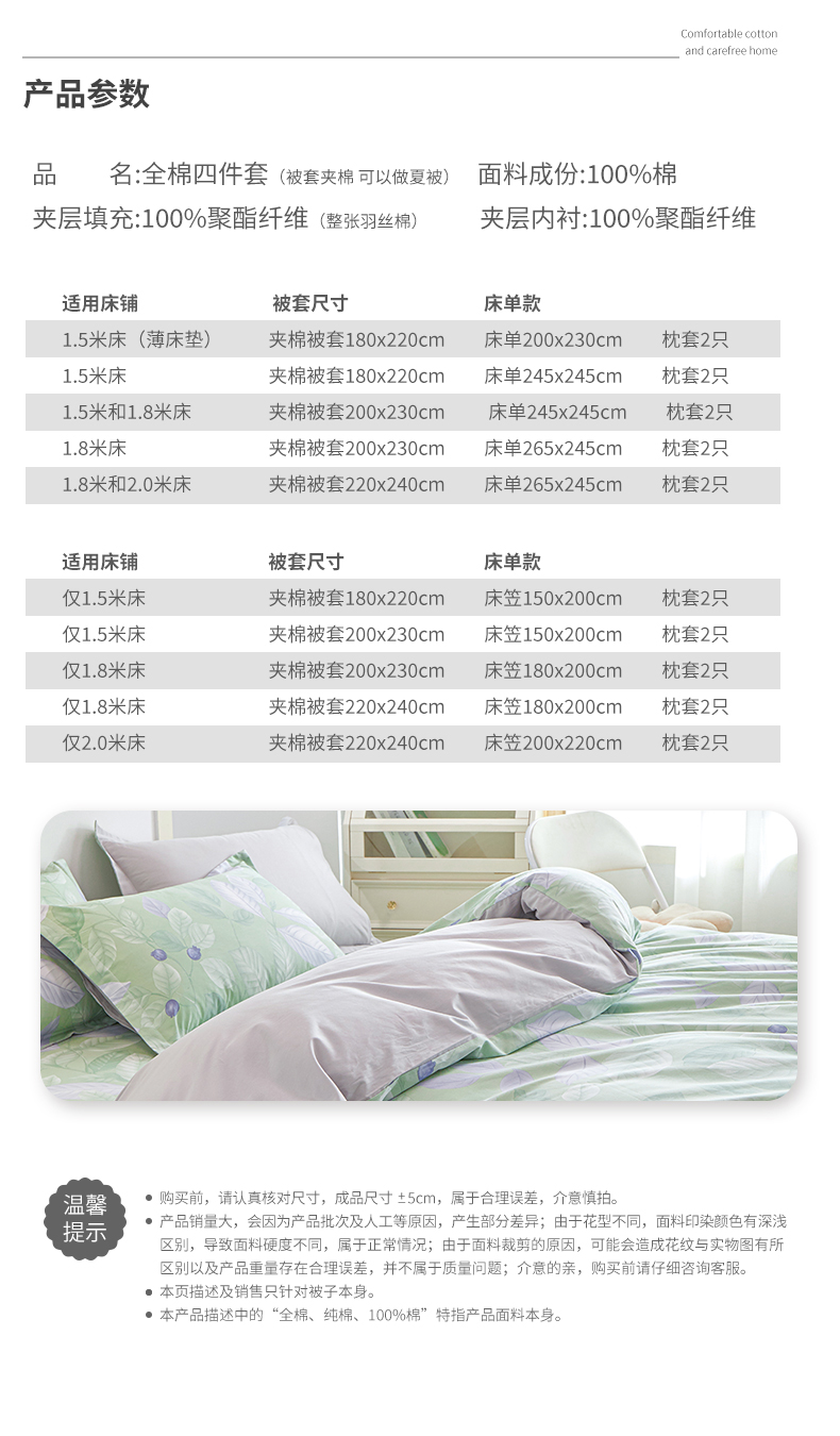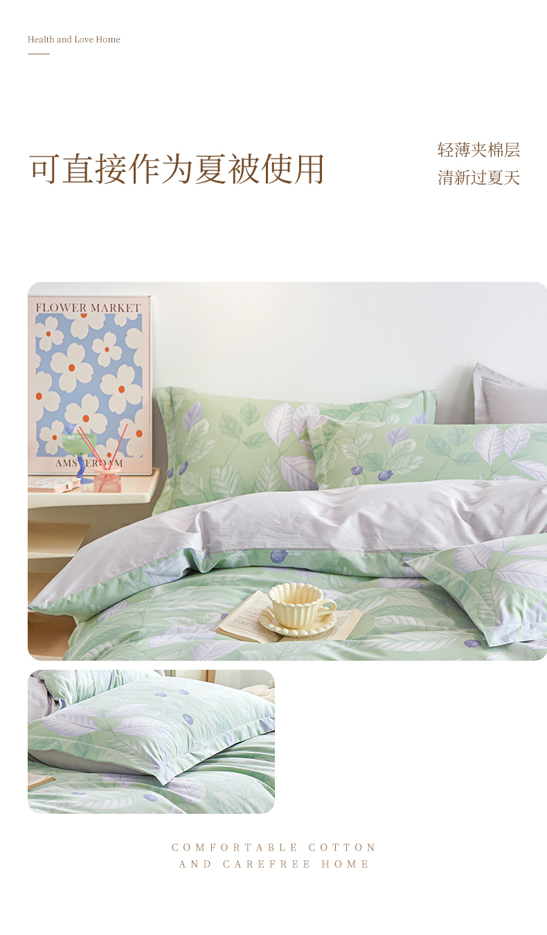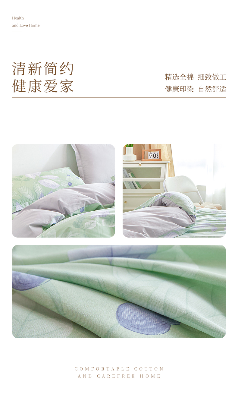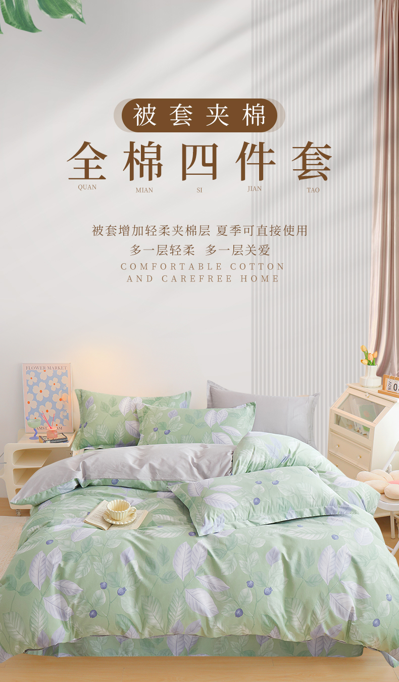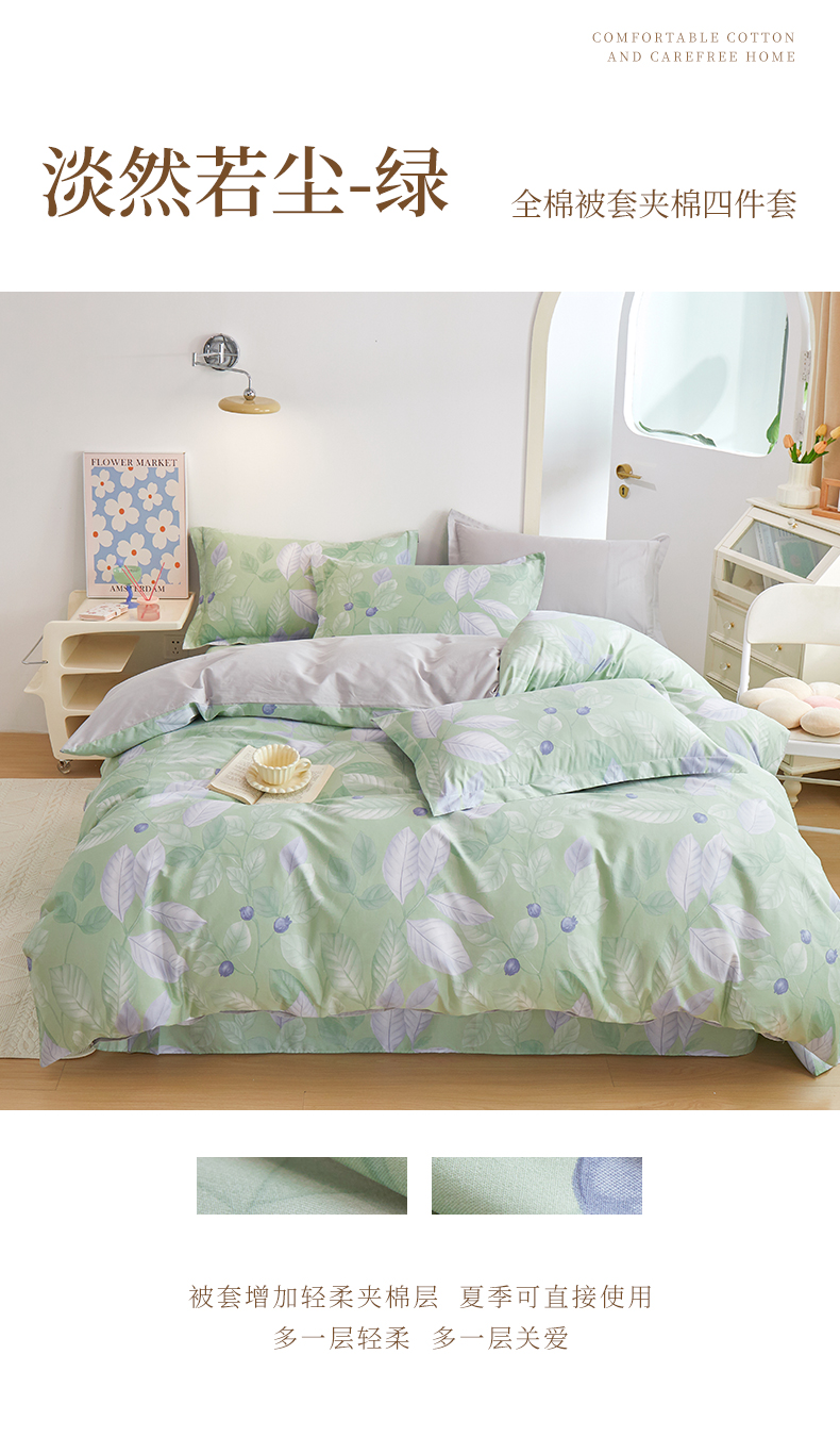 当前位置: 91家纺网 > 商品网购 > 床品套件 > 四件套 > 元元 2024新款小清新全棉四件套系列 -被套夹棉四件套 淡然若尘-绿