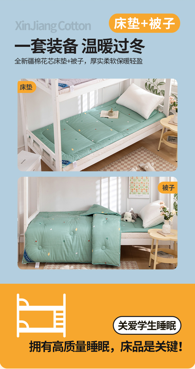 (总)学生宿舍纯棉面料0.9米1米床新疆长绒棉棉花被学生寝室全棉床垫