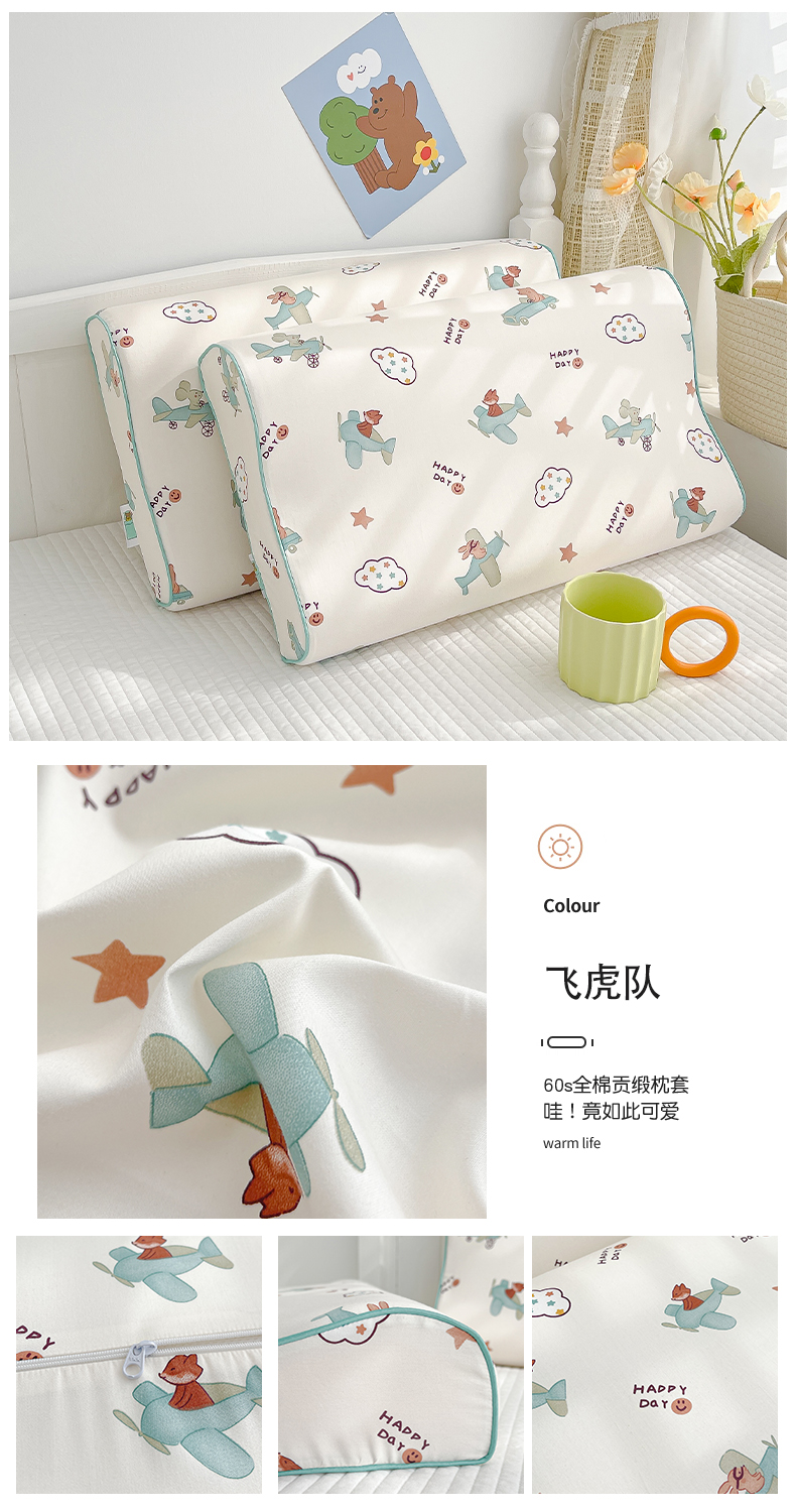(总)良佐生活 2023新款A类60支全棉贡缎乳胶枕枕套儿童橡胶枕头套高低,口袋熊,恐龙宝宝,开心熊 粉,冰淇淋,恐龙乐园,花仙兔,贝塔 粉,挖掘车