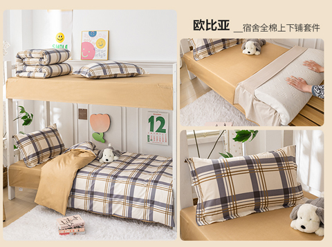 纯棉印花13070学生三件套寝室全棉宿舍床套件上下铺床品 欧比亚