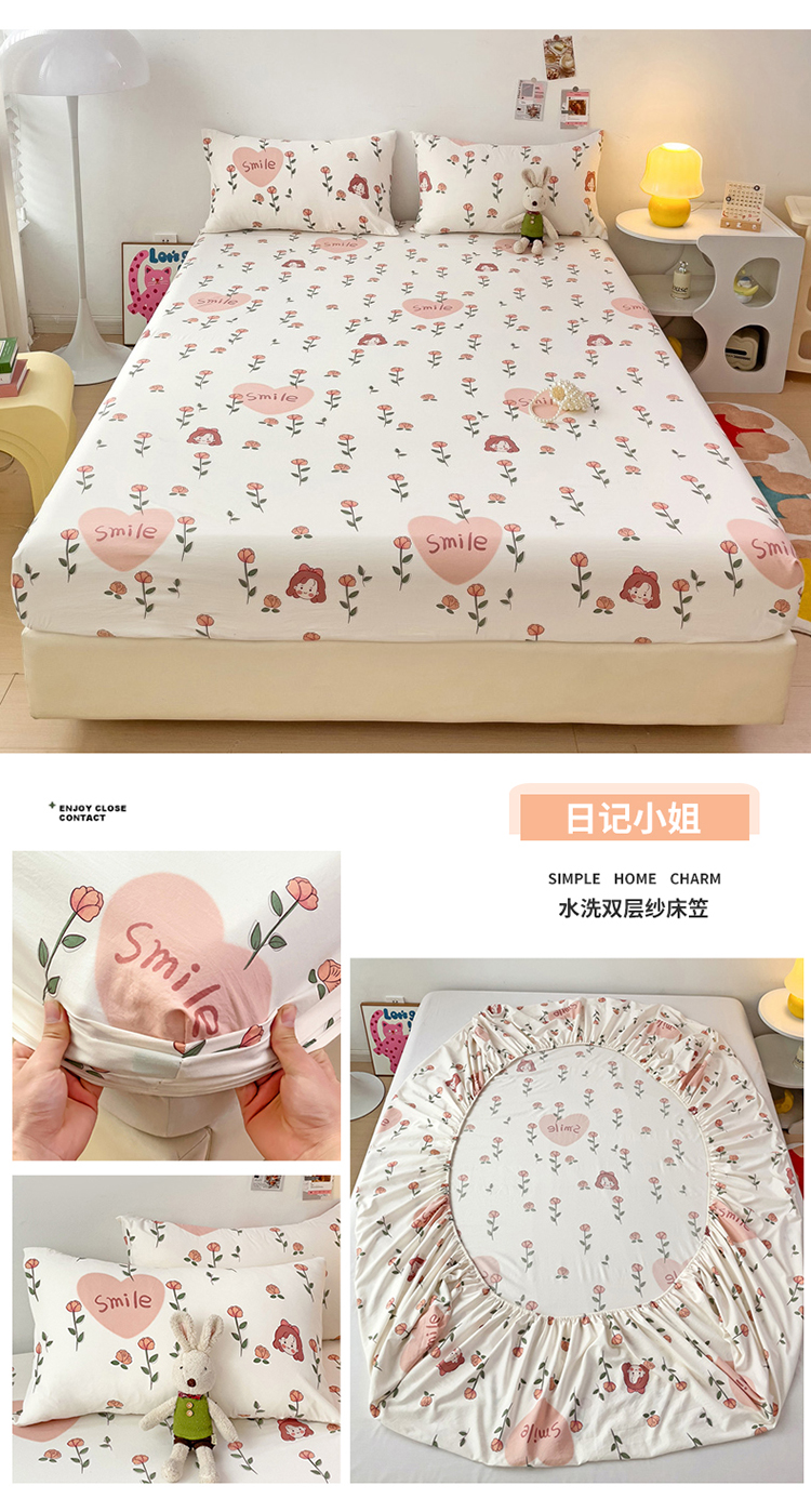 商品名称:纽缦家纺 2024水洗双层纱单床笠 日记小姐