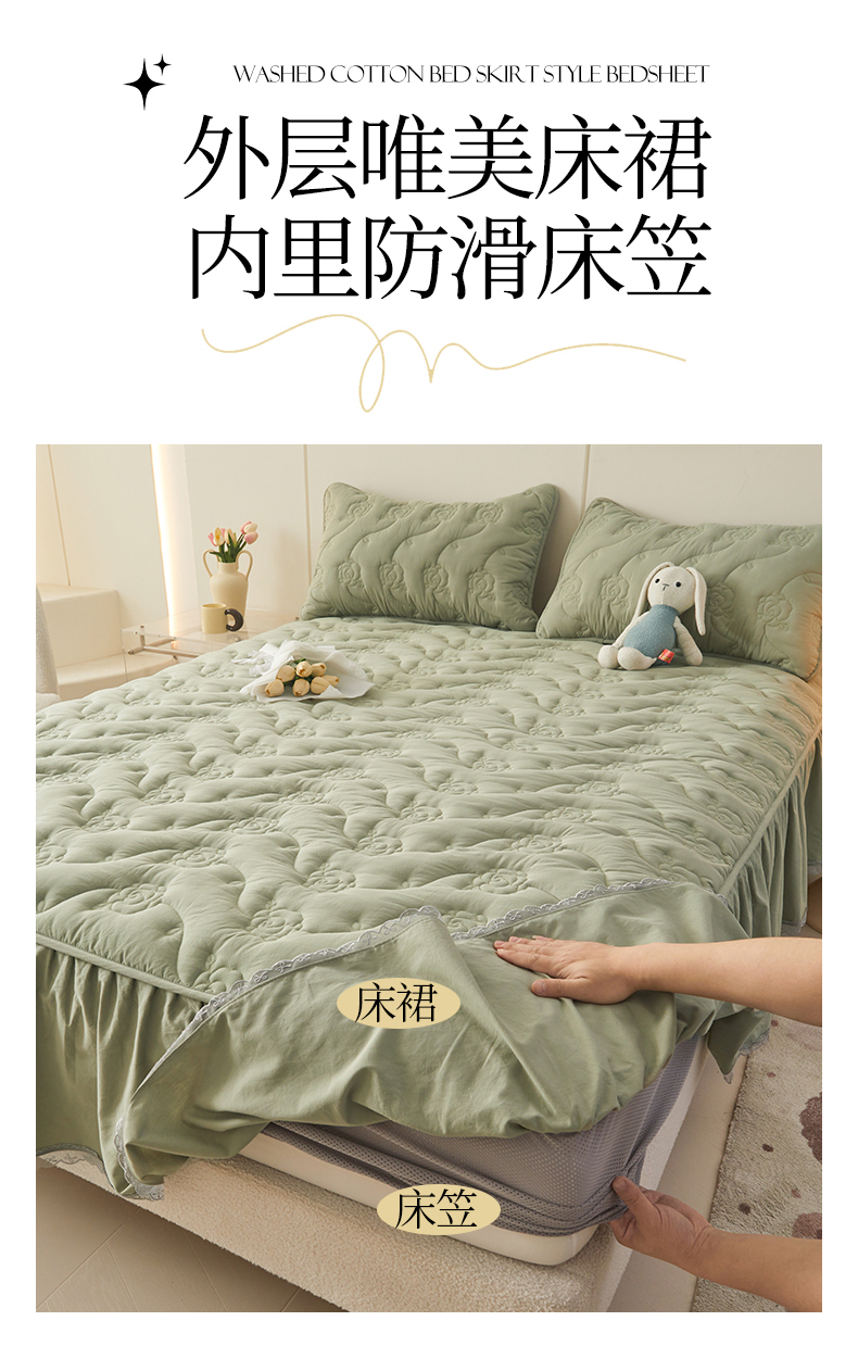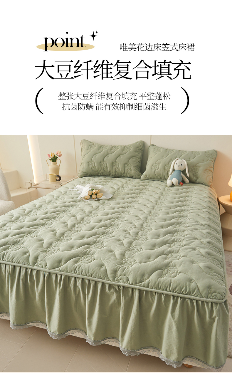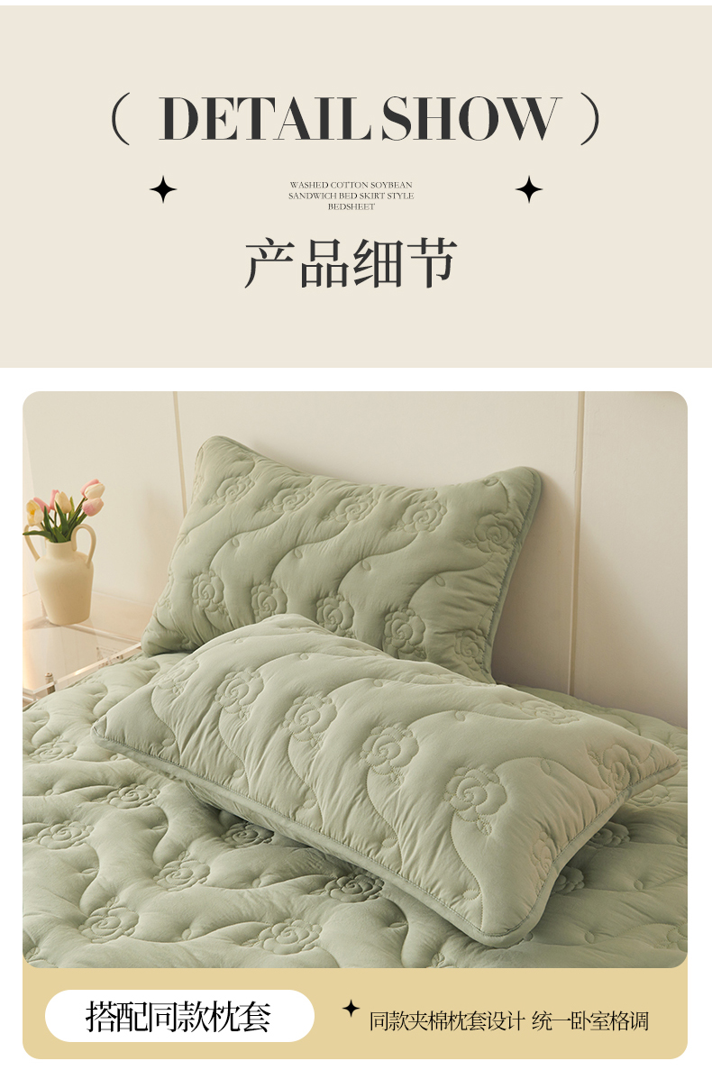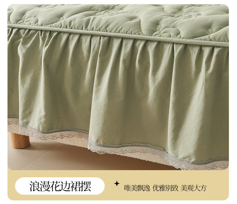 商品名称:3C 2024新款全棉水洗棉大豆夹棉床裙式床笠 抹茶绿