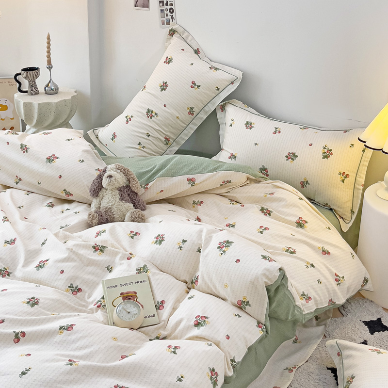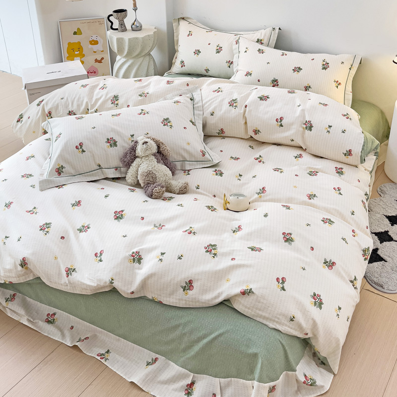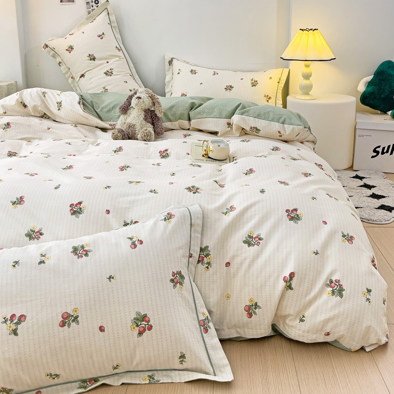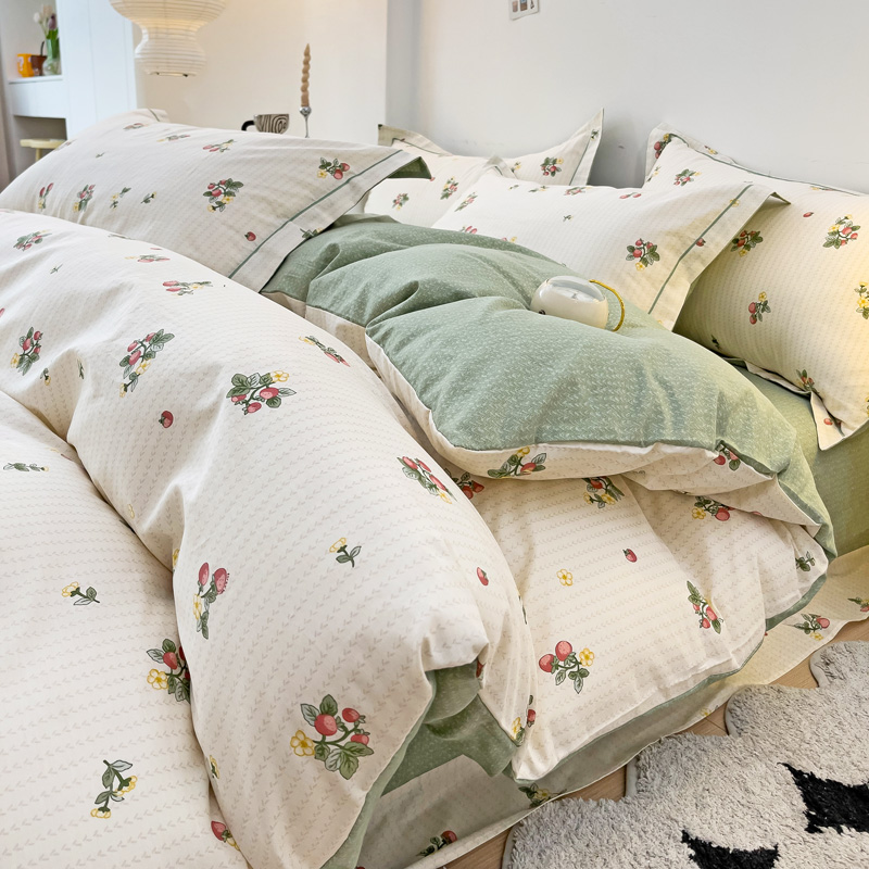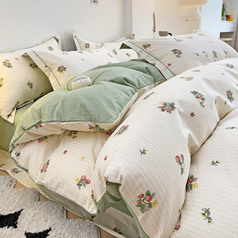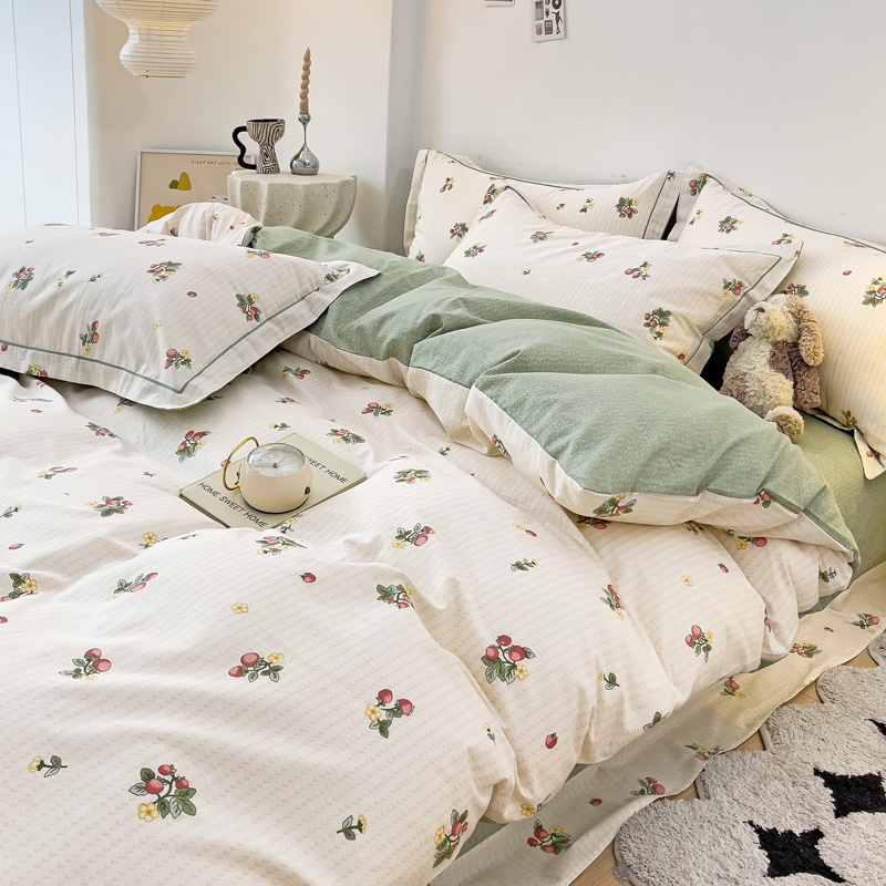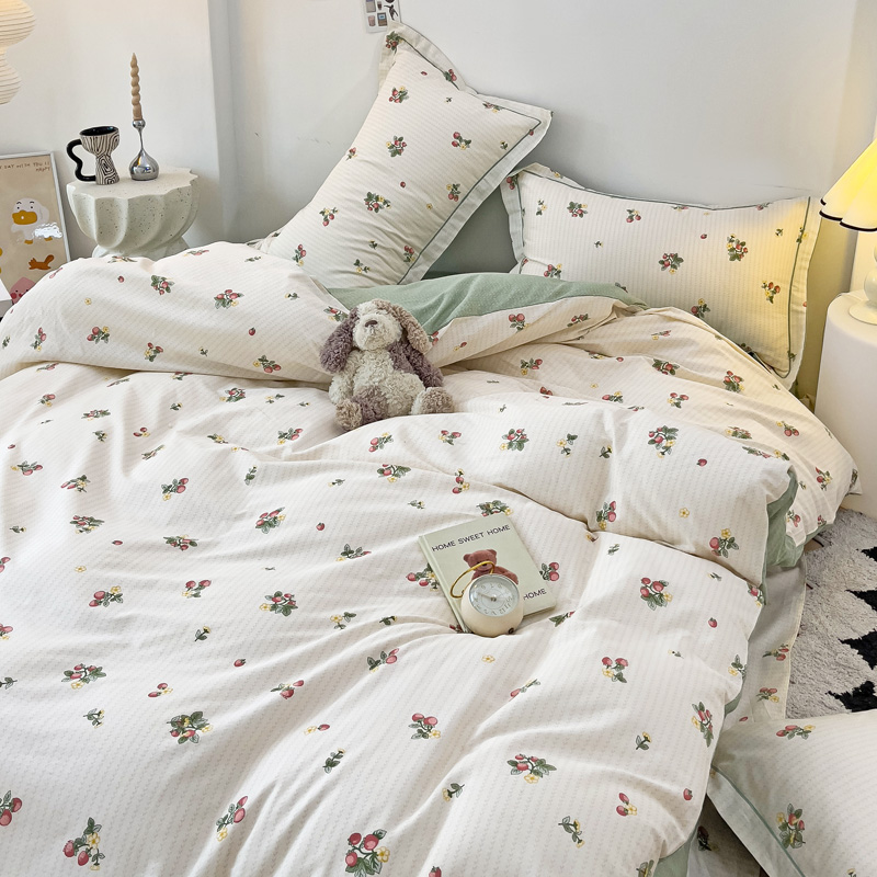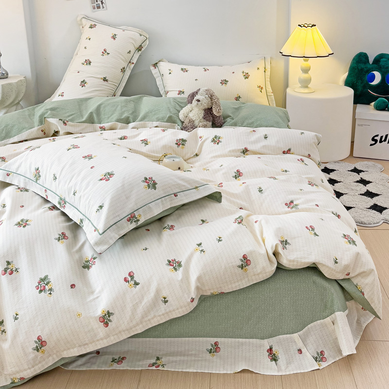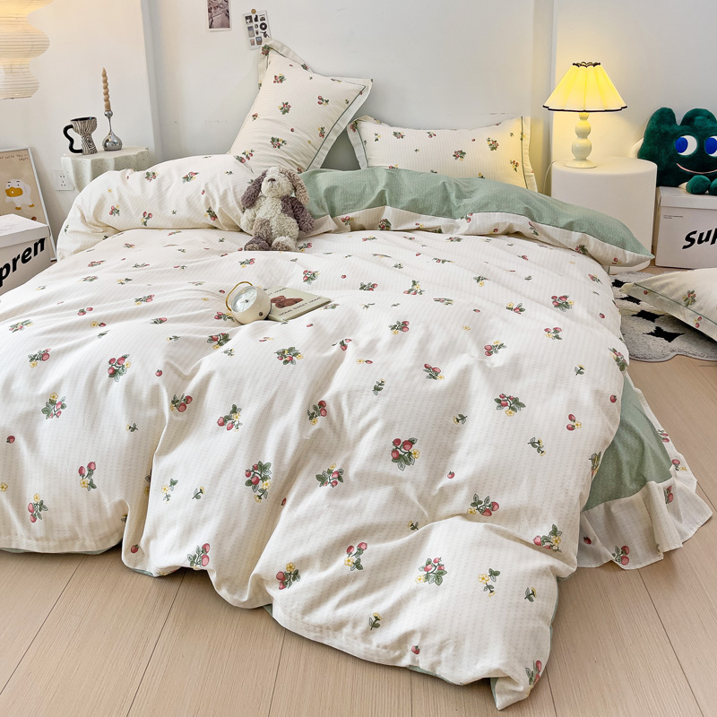 商品名称:云锦家居 2024新款13070纯棉印花吊边款一字绣四件套 盛夏果实