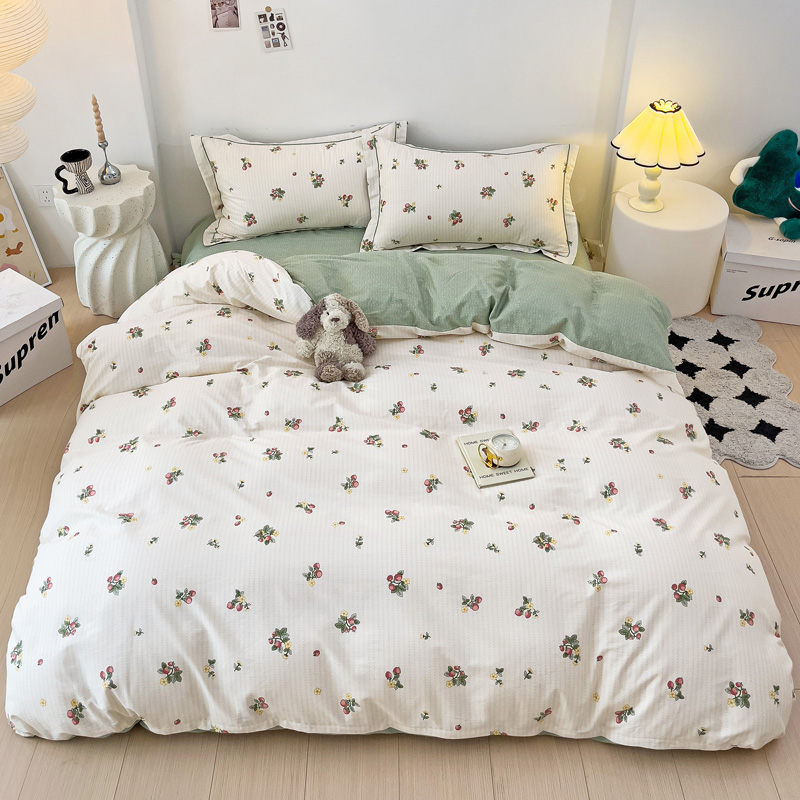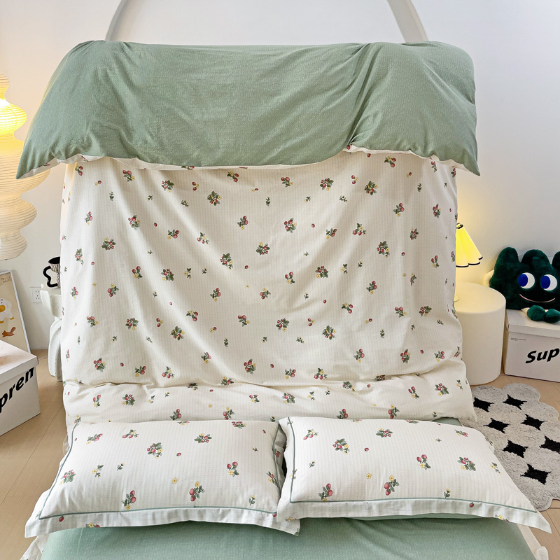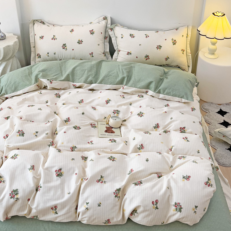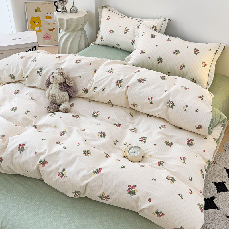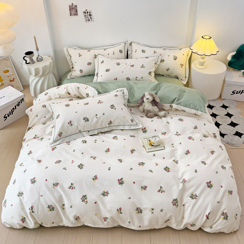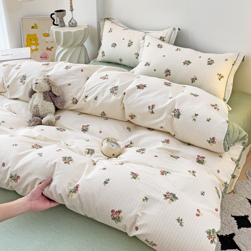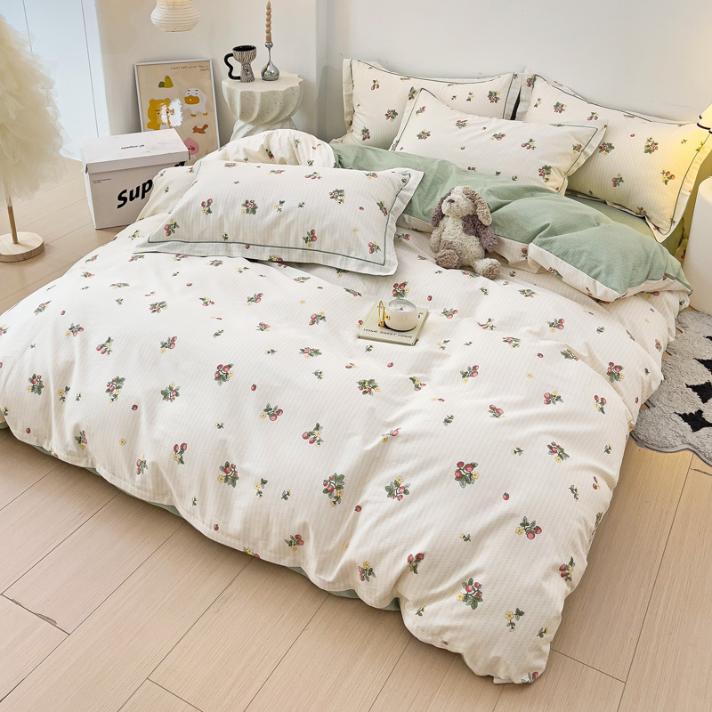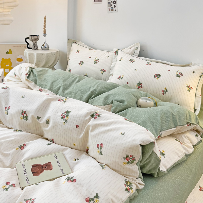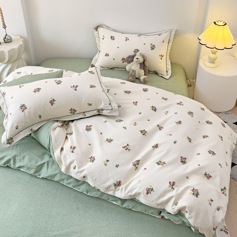 商品名称:云锦家居 2024新款13070纯棉印花吊边款一字绣四件套 盛夏果实