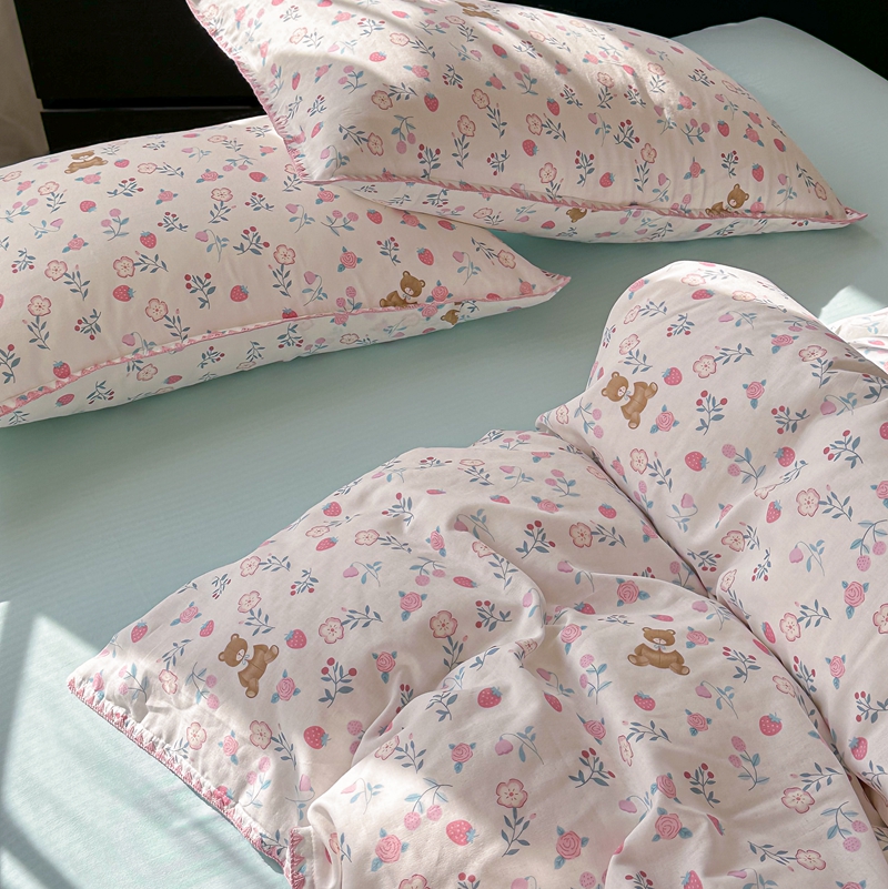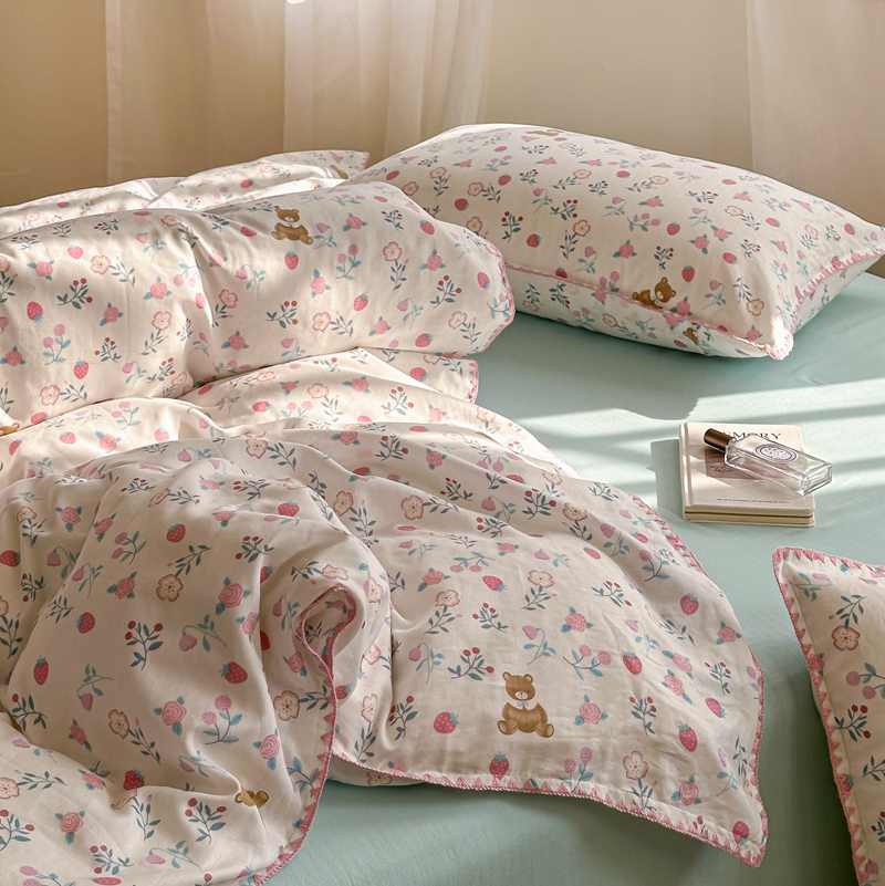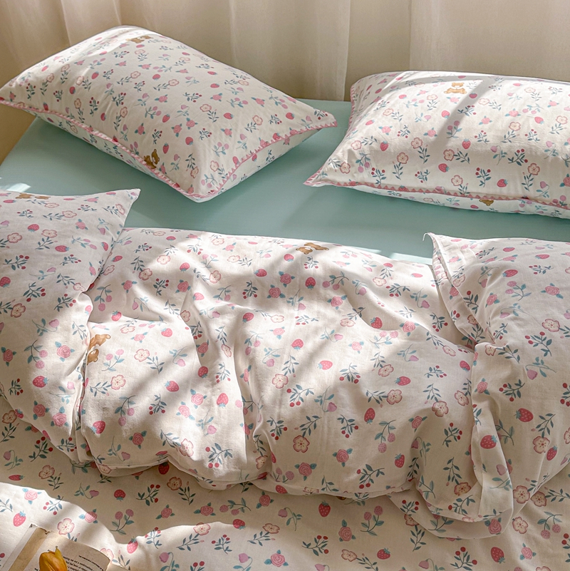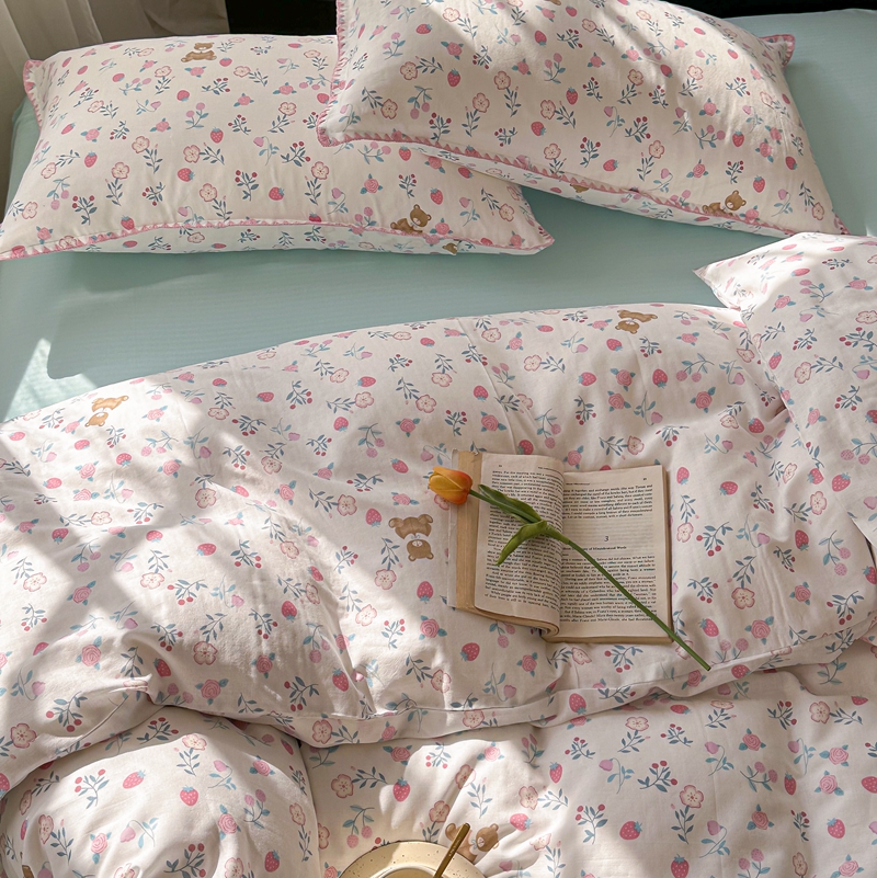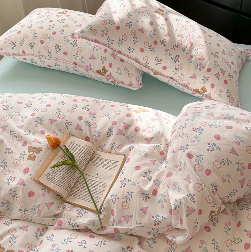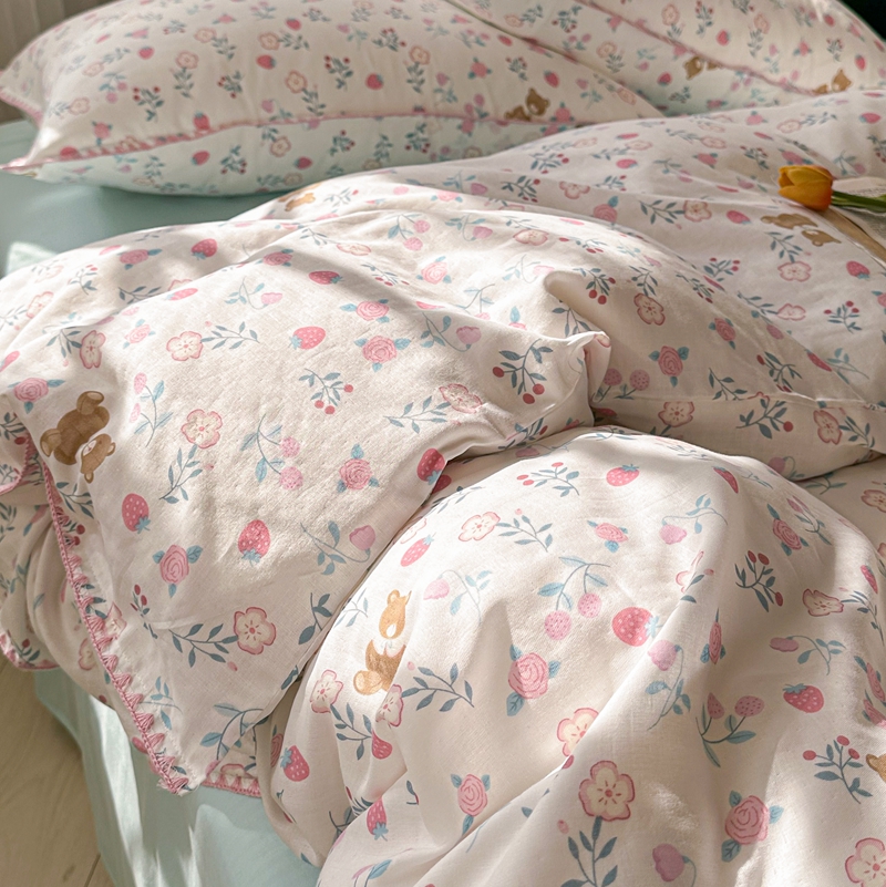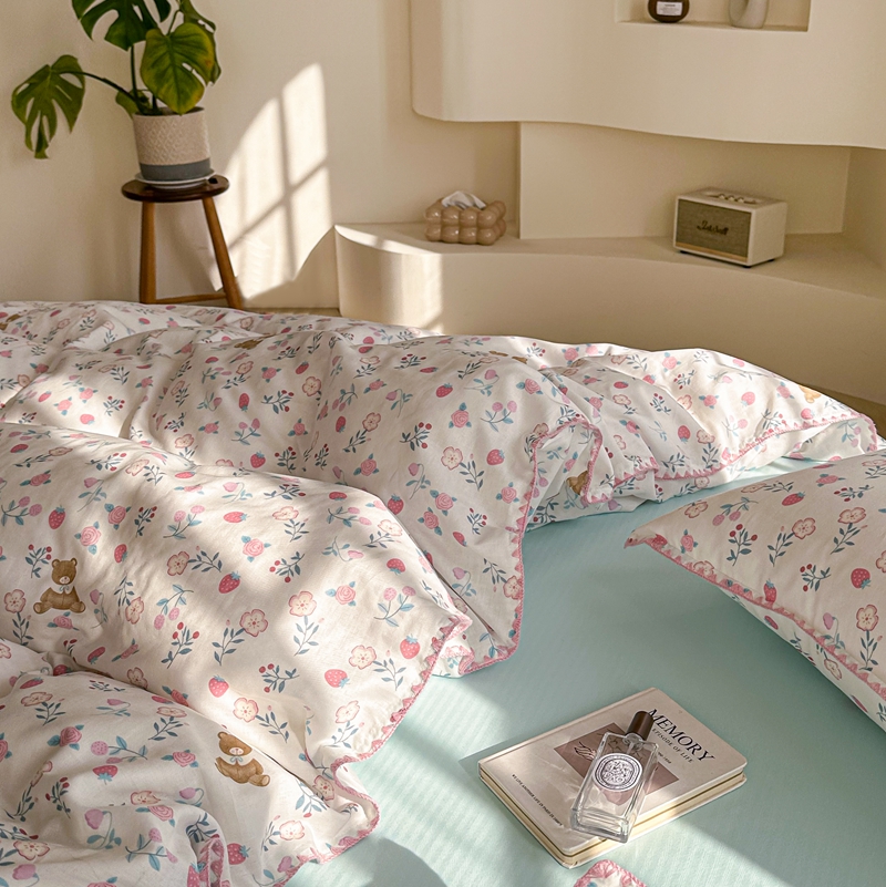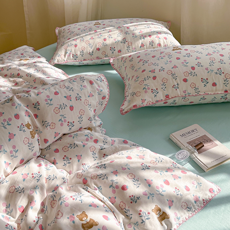 洋铭区(原狠狠爱) 2024新款全棉双层纱四件套 草莓小熊熊
