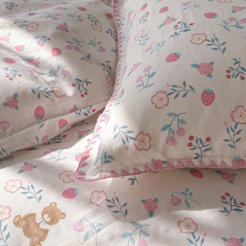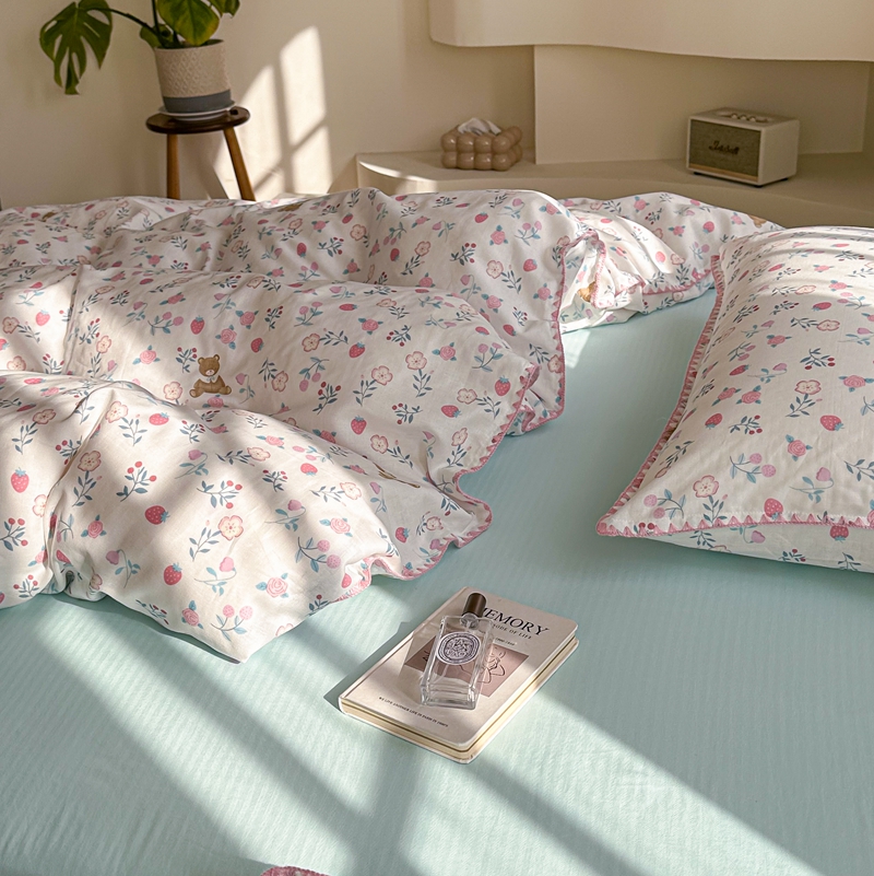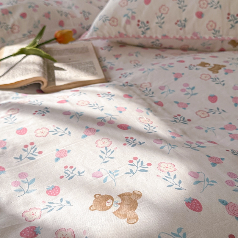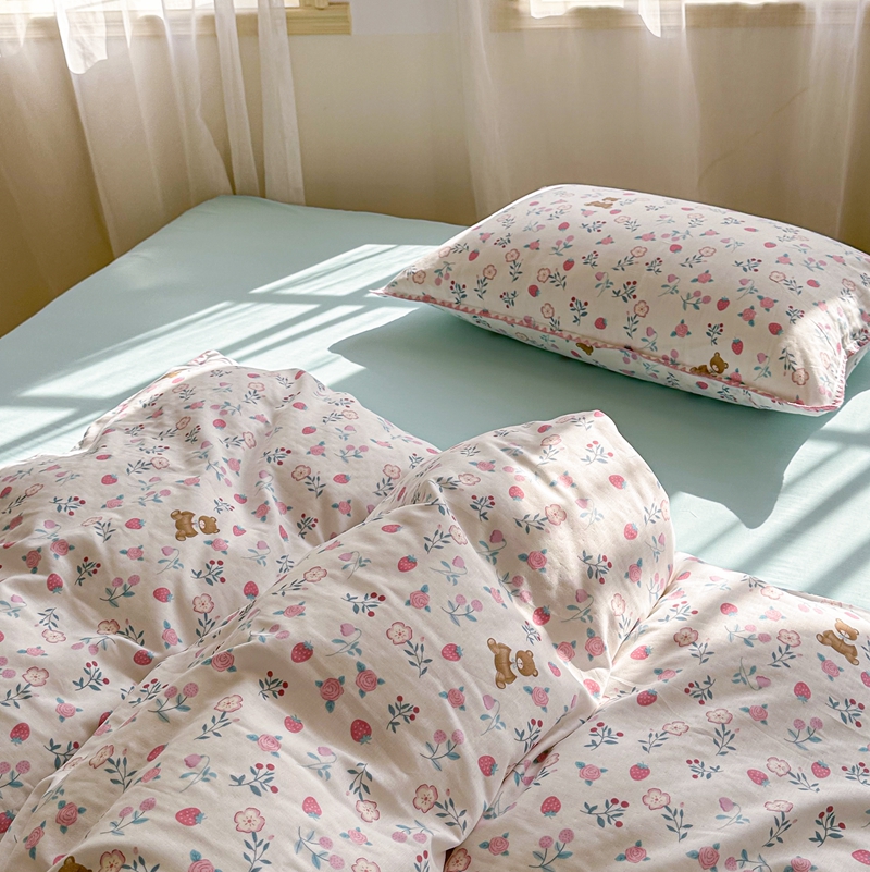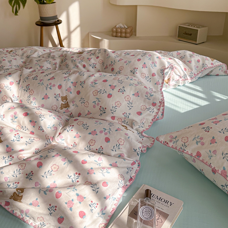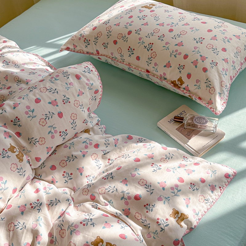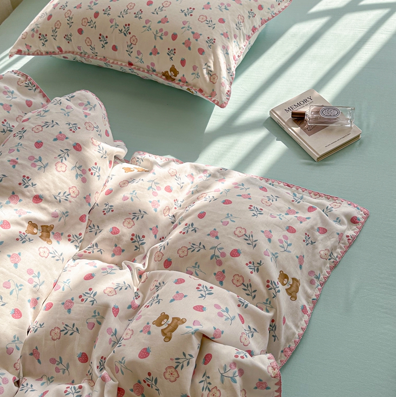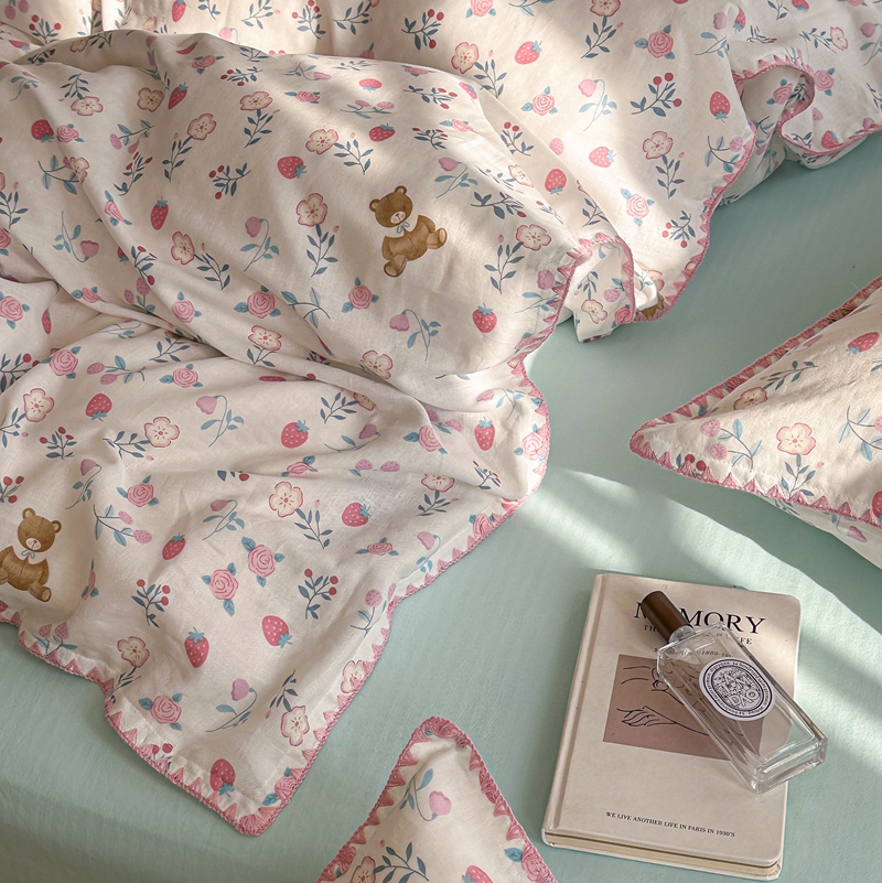 洋铭区(原狠狠爱) 2024新款全棉双层纱四件套 草莓小熊熊