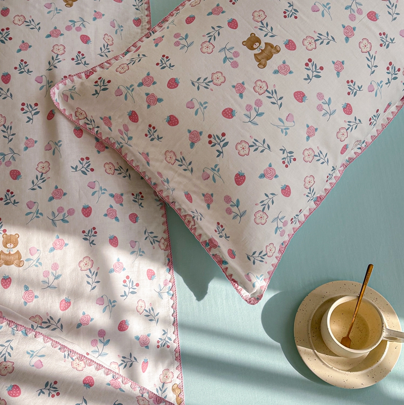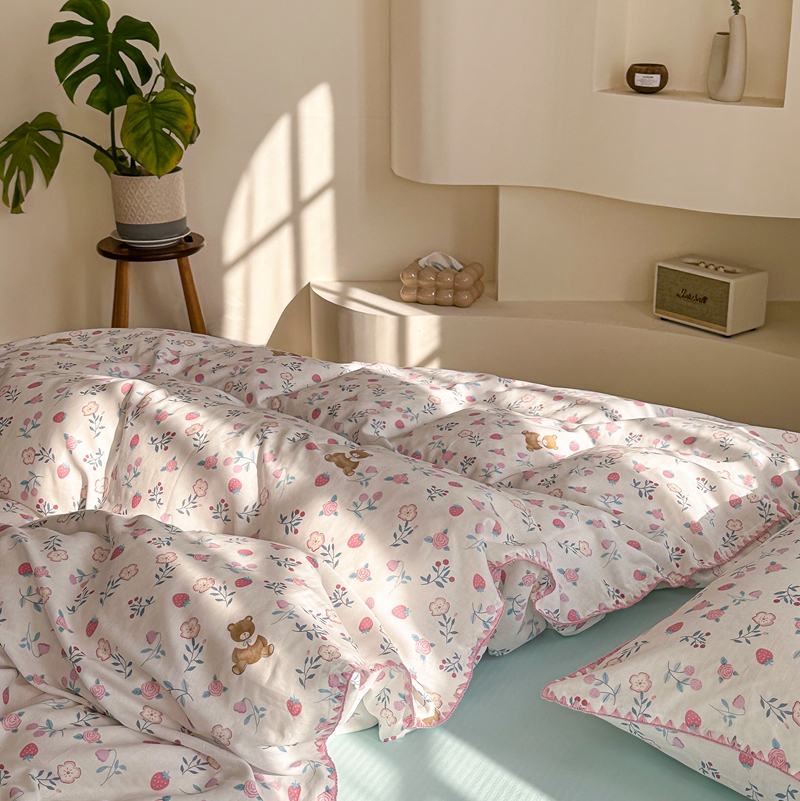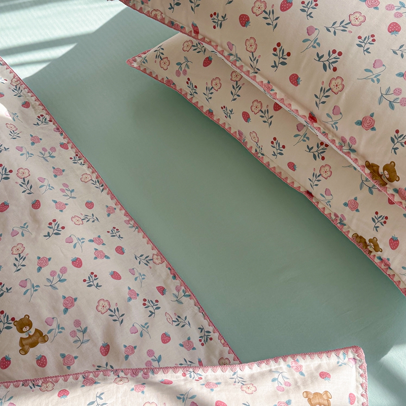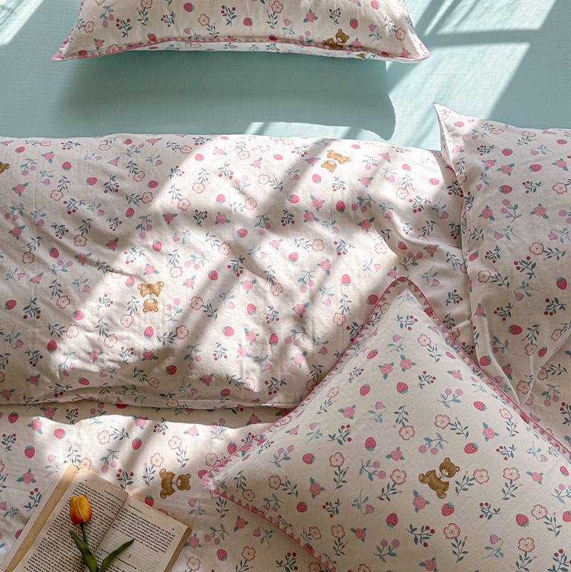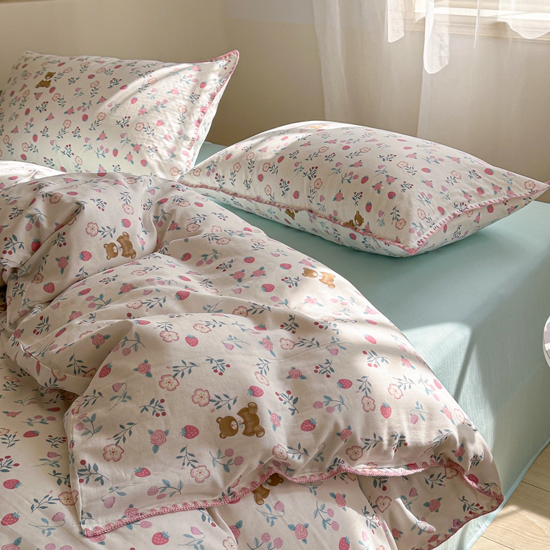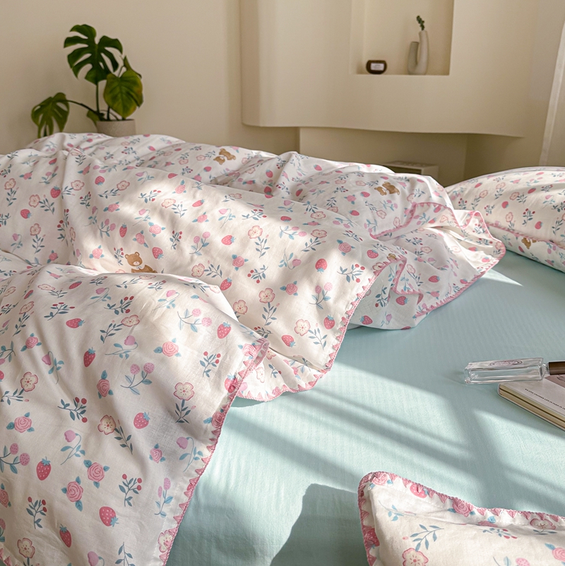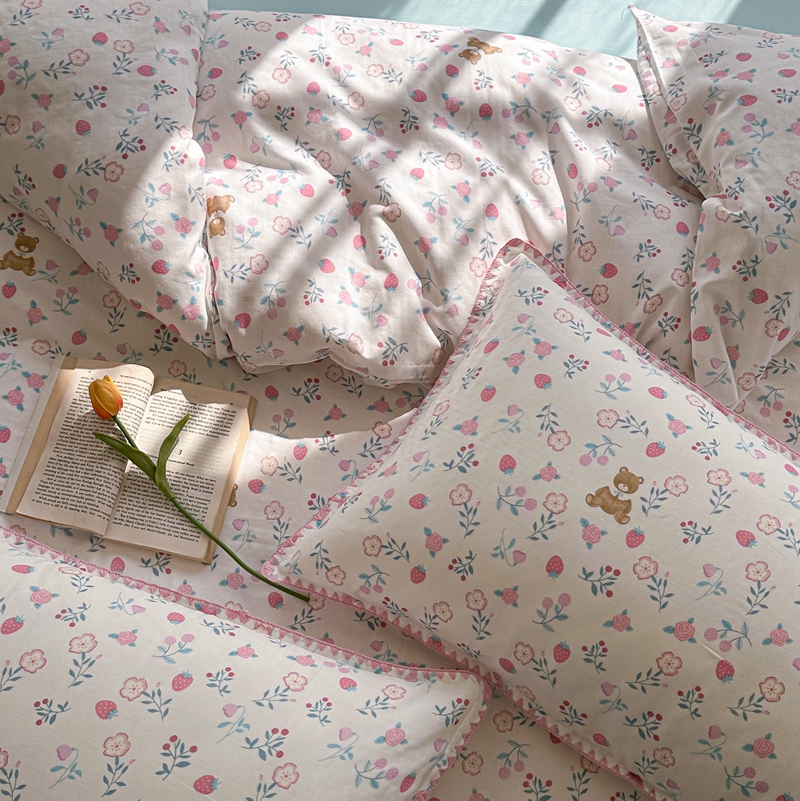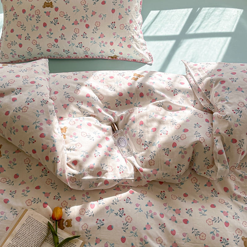 洋铭区(原狠狠爱) 2024新款全棉双层纱四件套 草莓小熊熊
