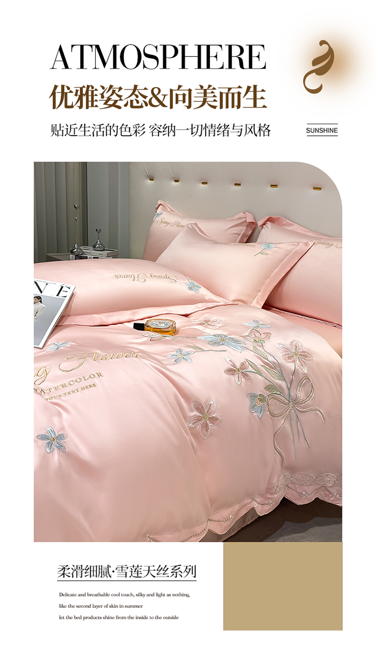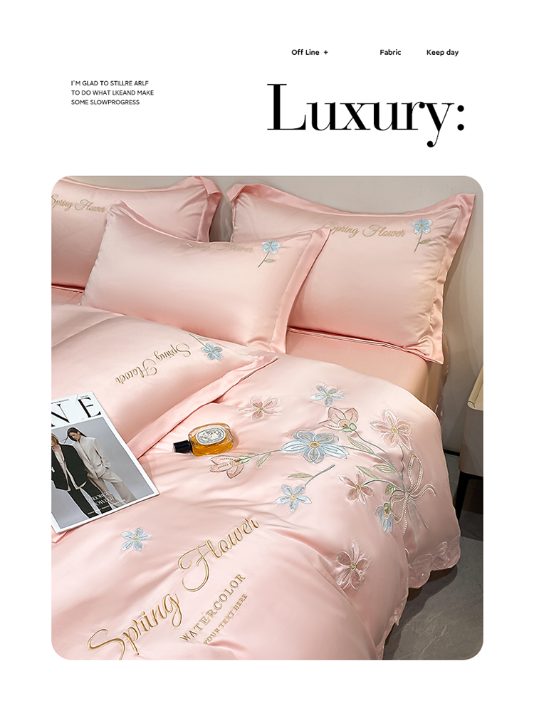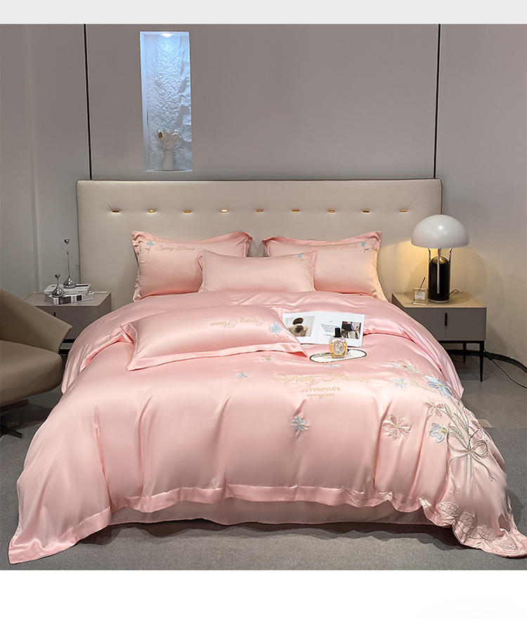 爱家 2025新款雪莲天丝刺绣四件套-春日恋曲 春日恋曲-公主粉