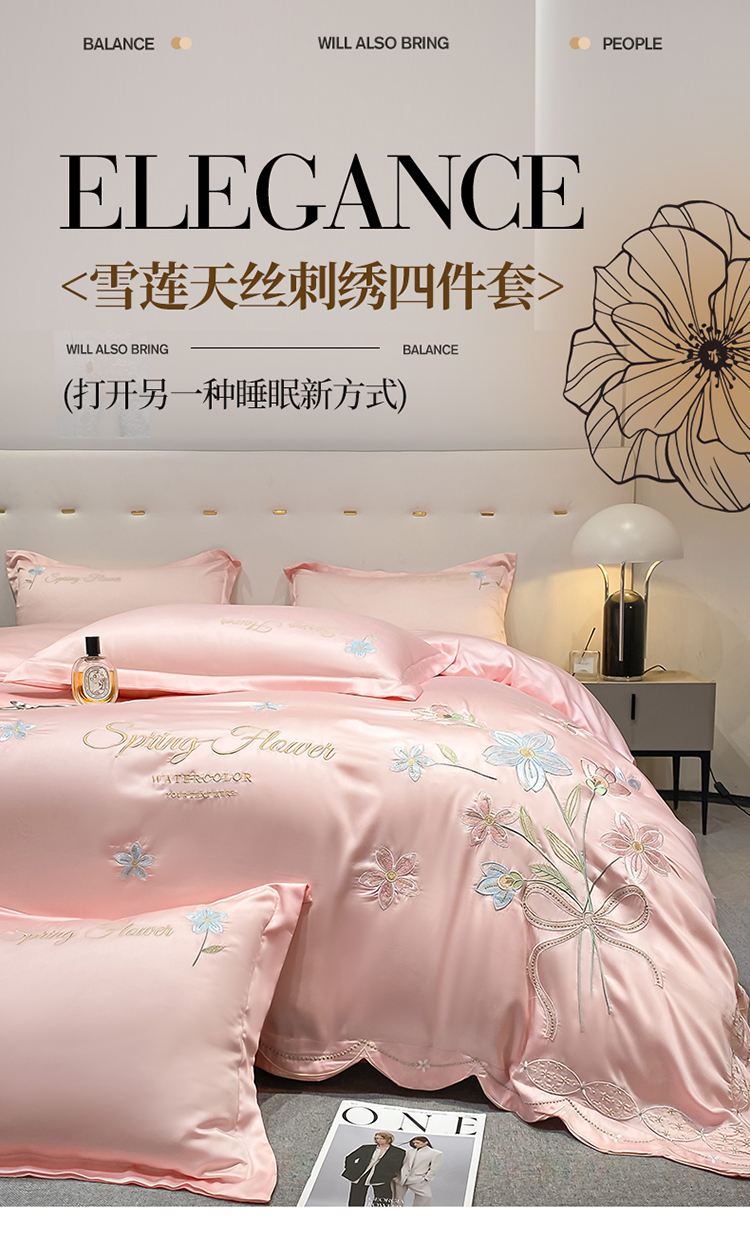 商品名称:爱家 2025新款雪莲天丝刺绣四件套-春日恋曲 春日恋曲-公主粉