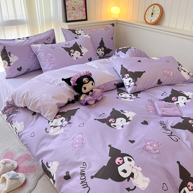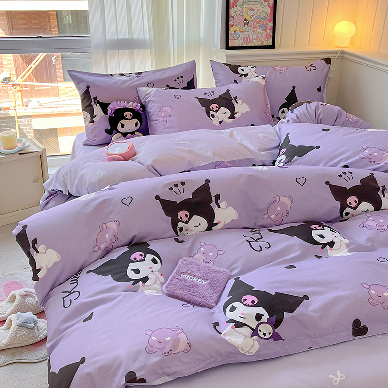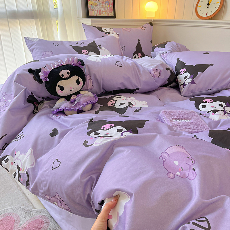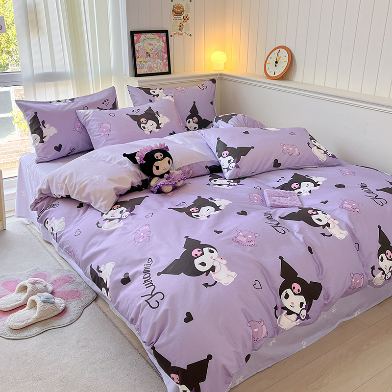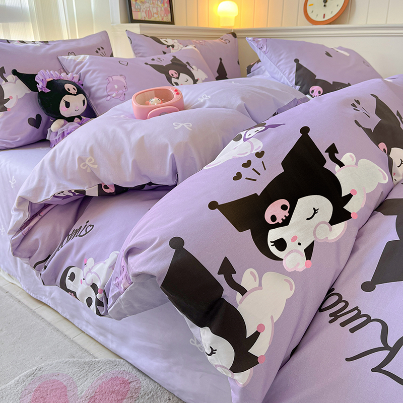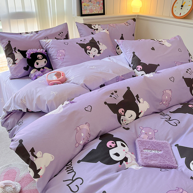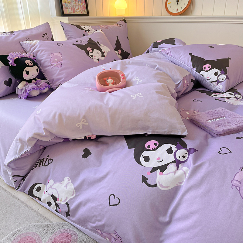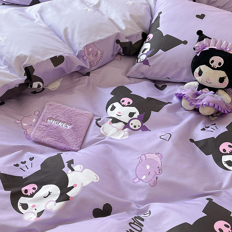 商品名称:顾里2024新款40支活性印花13372喷气全棉三丽鸥系列四件套 库洛米紫