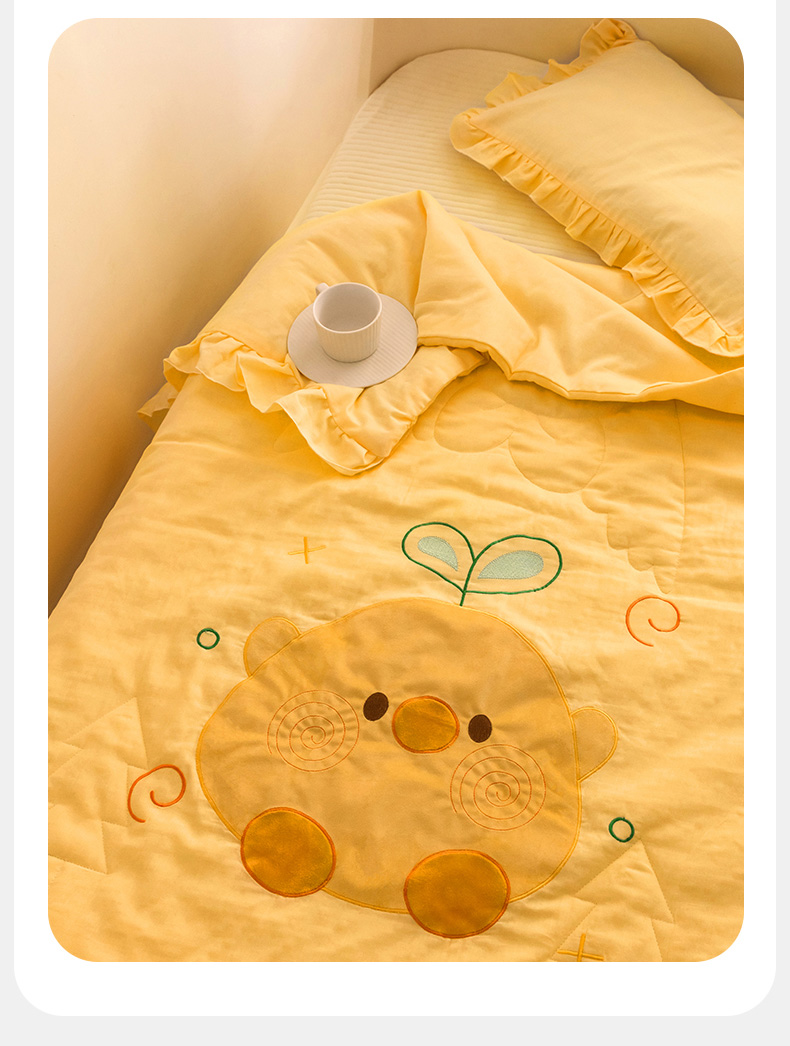 (总)喜多兔2025新款高精密人字棉贴布绣奶里奶气夏被夏凉被,粉色奶气小兔,黄色奶气小狗,咖色奶气小熊,蓝色奶气小象,绿色奶气小猫