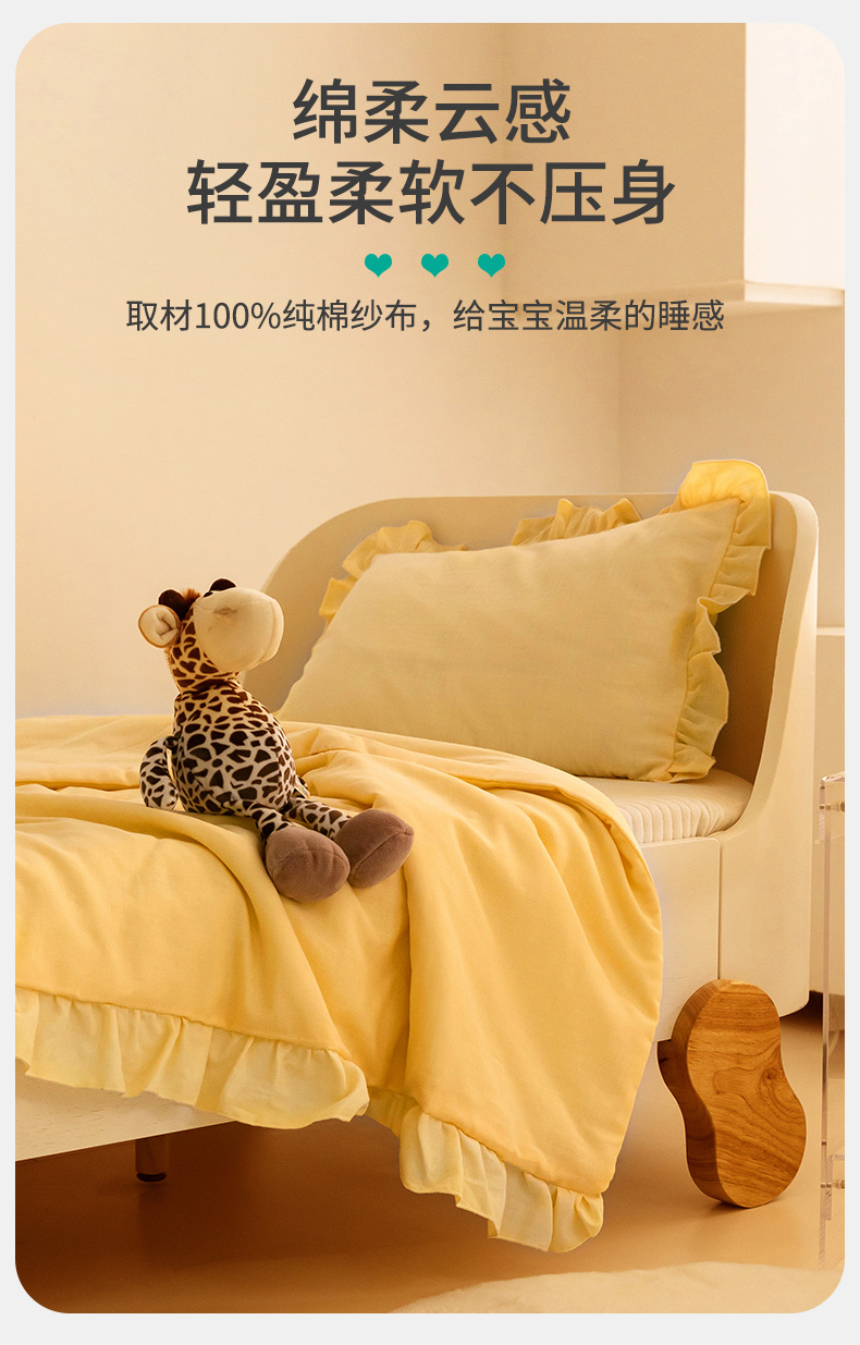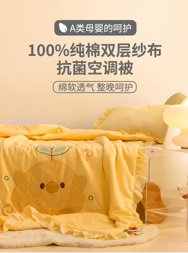 喜多兔儿童家纺 2024新款小轻柔纱布纯棉双层纱空调被 黄色Q小鸡