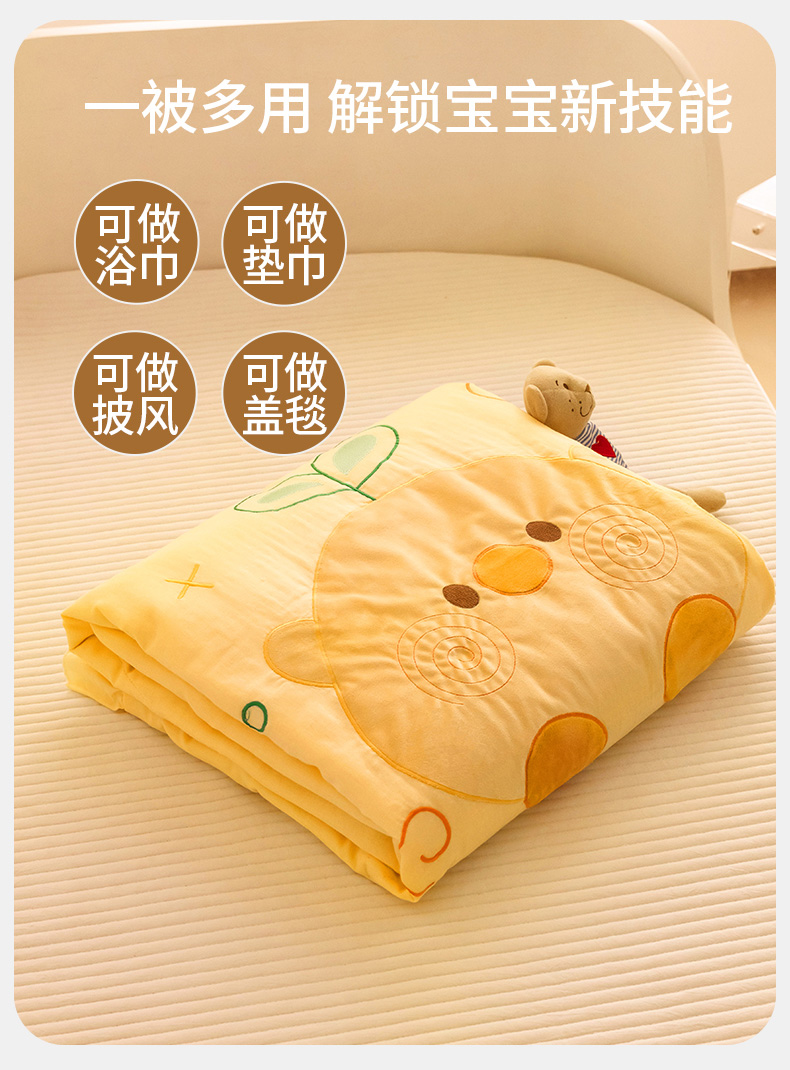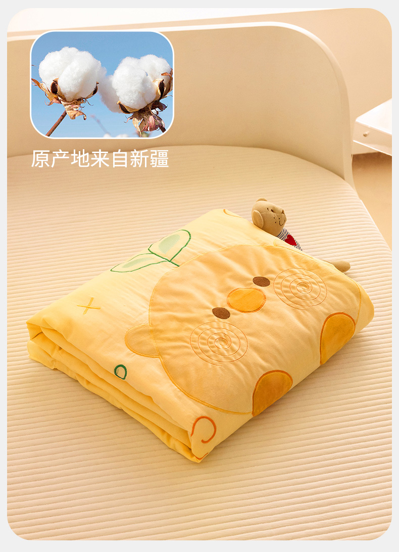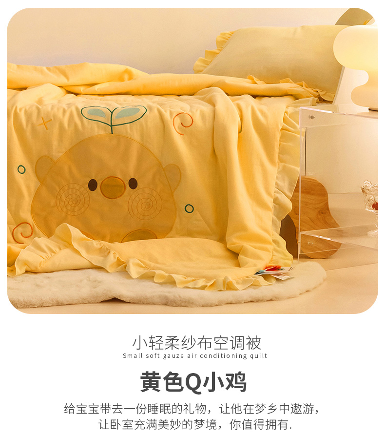 商品名称:喜多兔儿童家纺 2024新款小轻柔纱布纯棉双层纱空调被 黄色Q小鸡