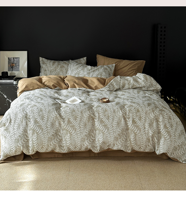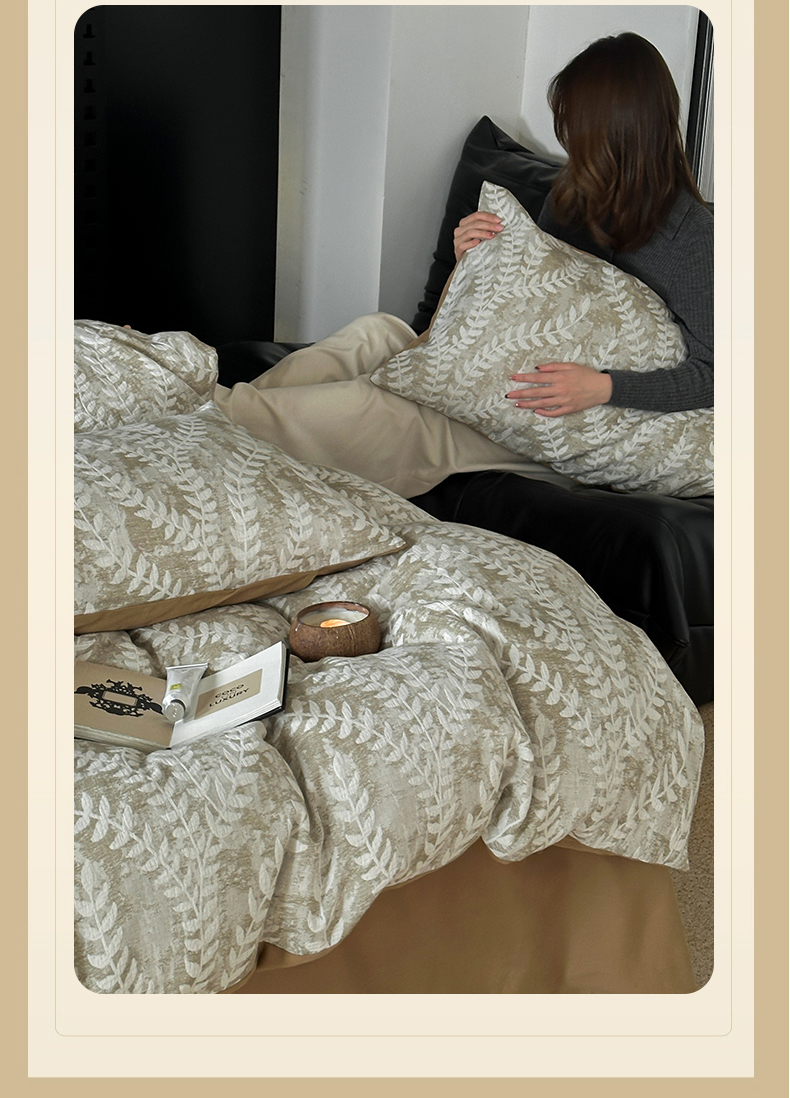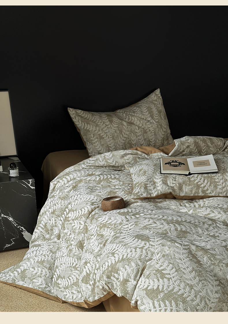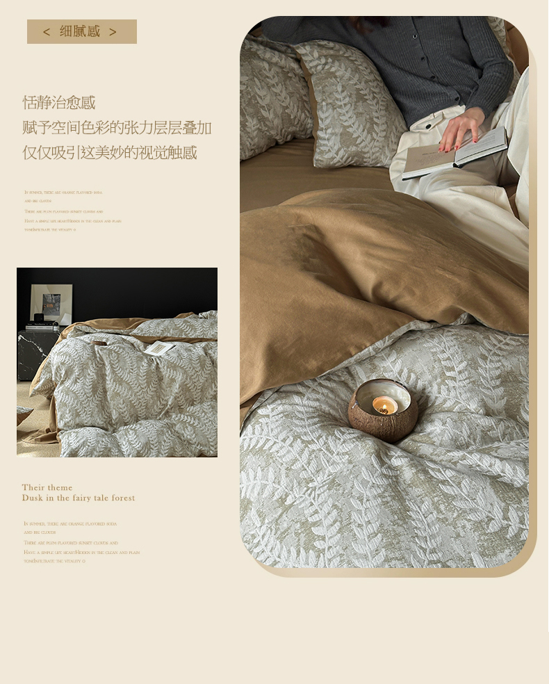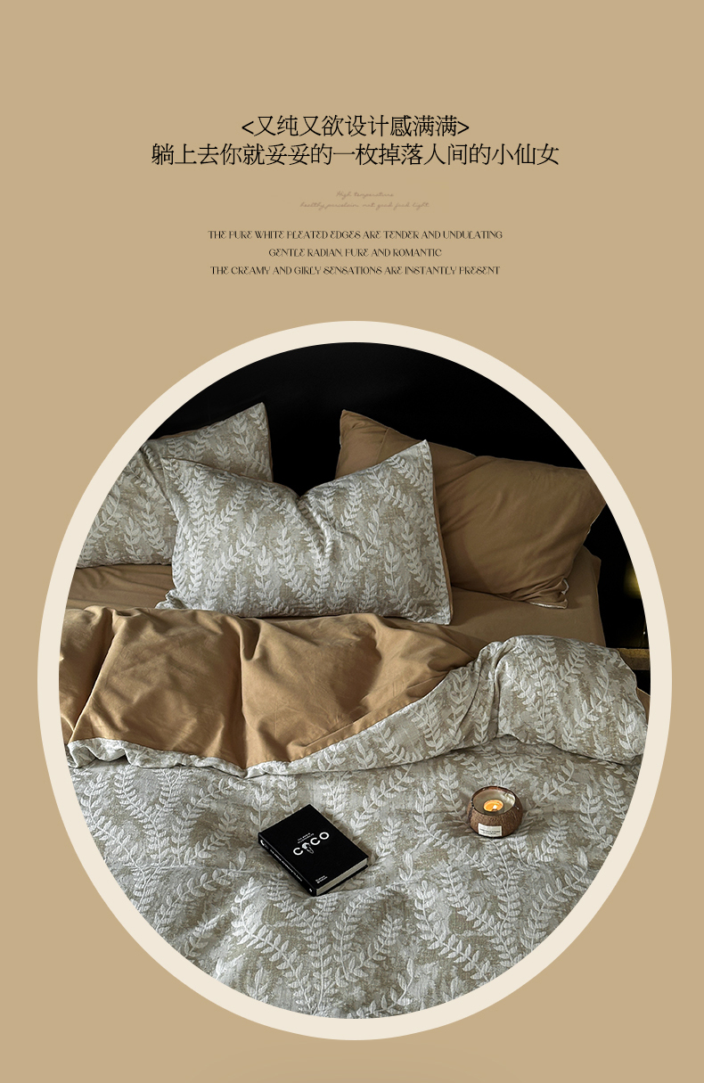 名品优仓 全棉水洗棉三层纱提花系列四件套-春意怏然 春意怏然-棕