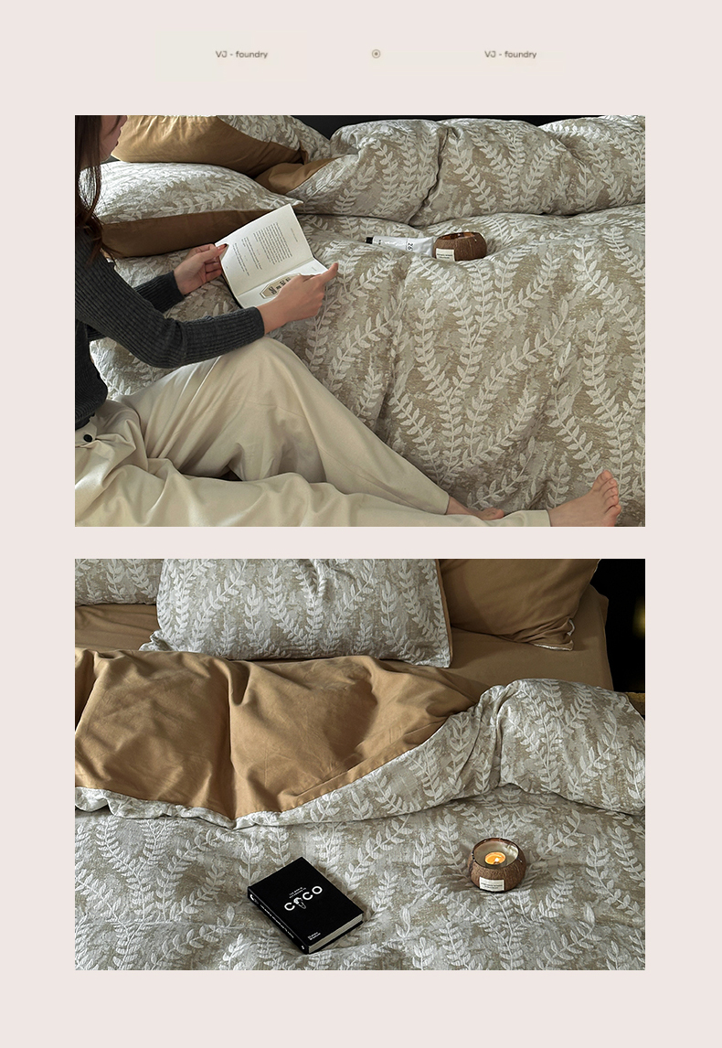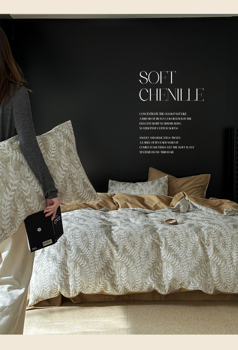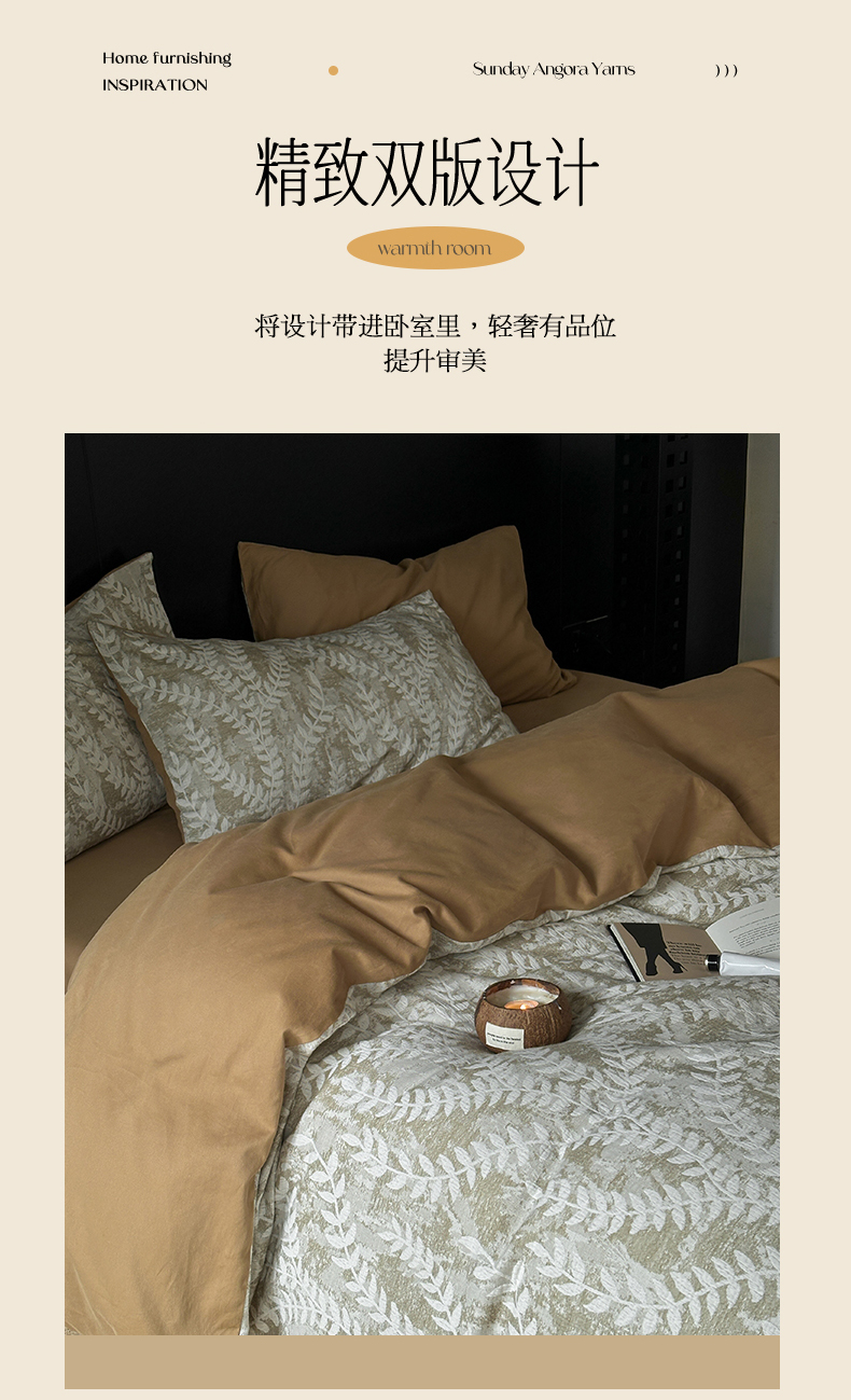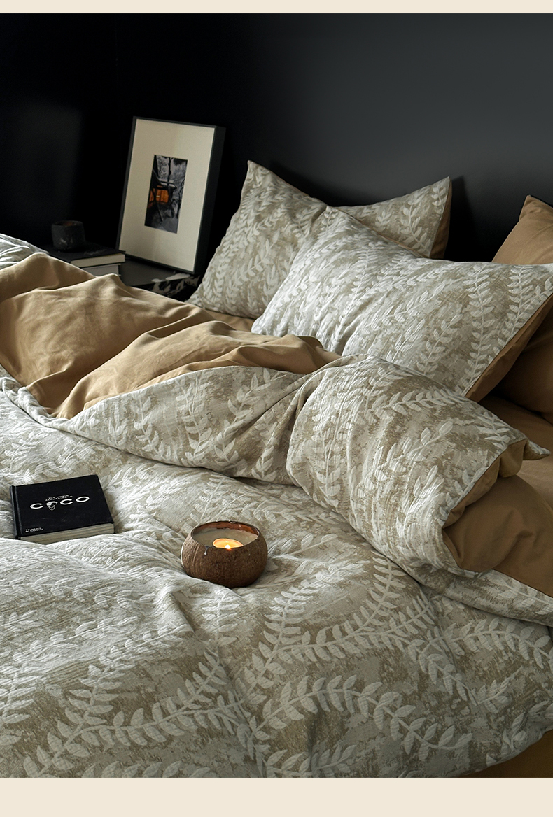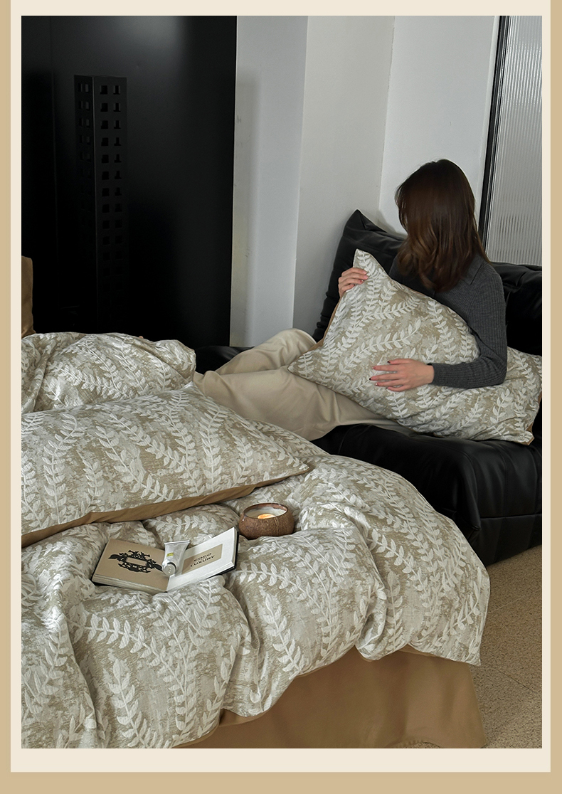 名品优仓 全棉水洗棉三层纱提花系列四件套-春意怏然 春意怏然-棕