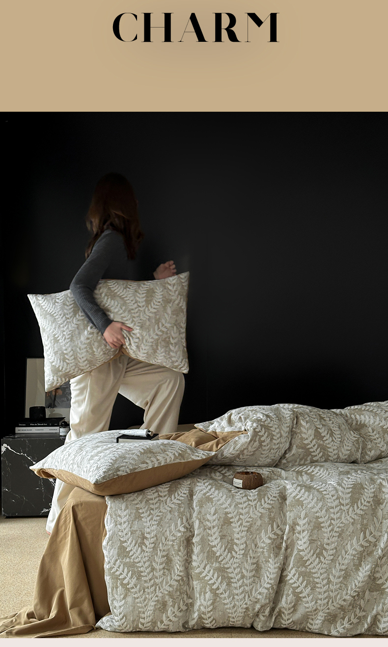 商品名称:名品优仓 全棉水洗棉三层纱提花系列四件套-春意怏然 春意怏然-棕