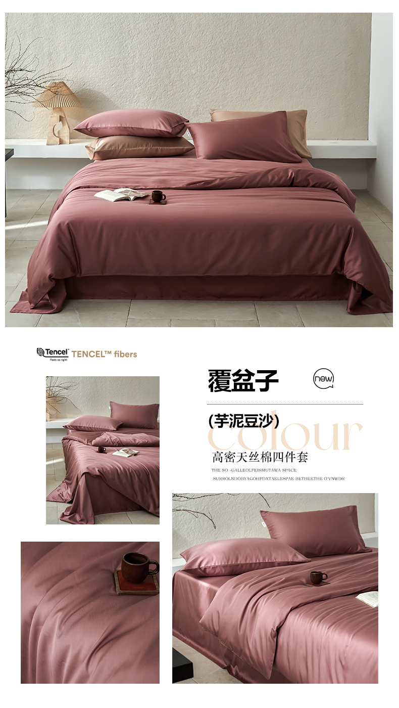 当前位置: 91家纺网 > 商品网购 > 床品套件 > 四件套 > 莱赛尔四件套 > 沐晴2024新款春夏60兰精天丝简约轻奢纯色长绒棉四件套 覆盆子(芋泥豆沙)