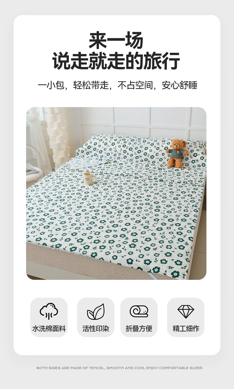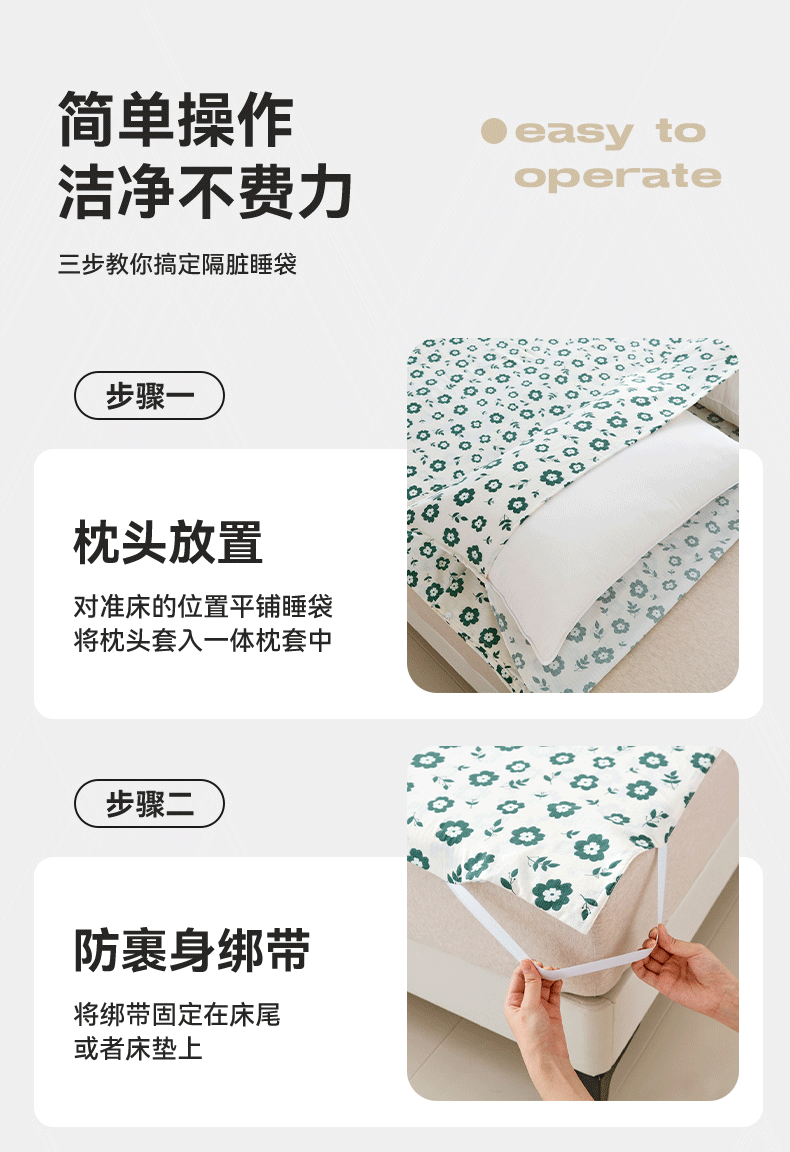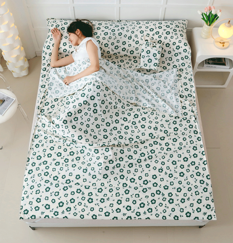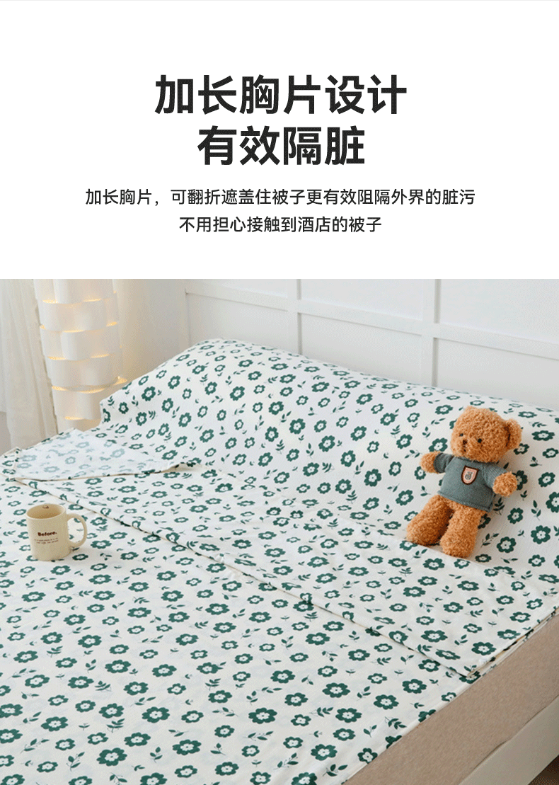 商品名称:北辰 2024新款印花水洗棉天竺棉隔脏睡袋 韩式小花