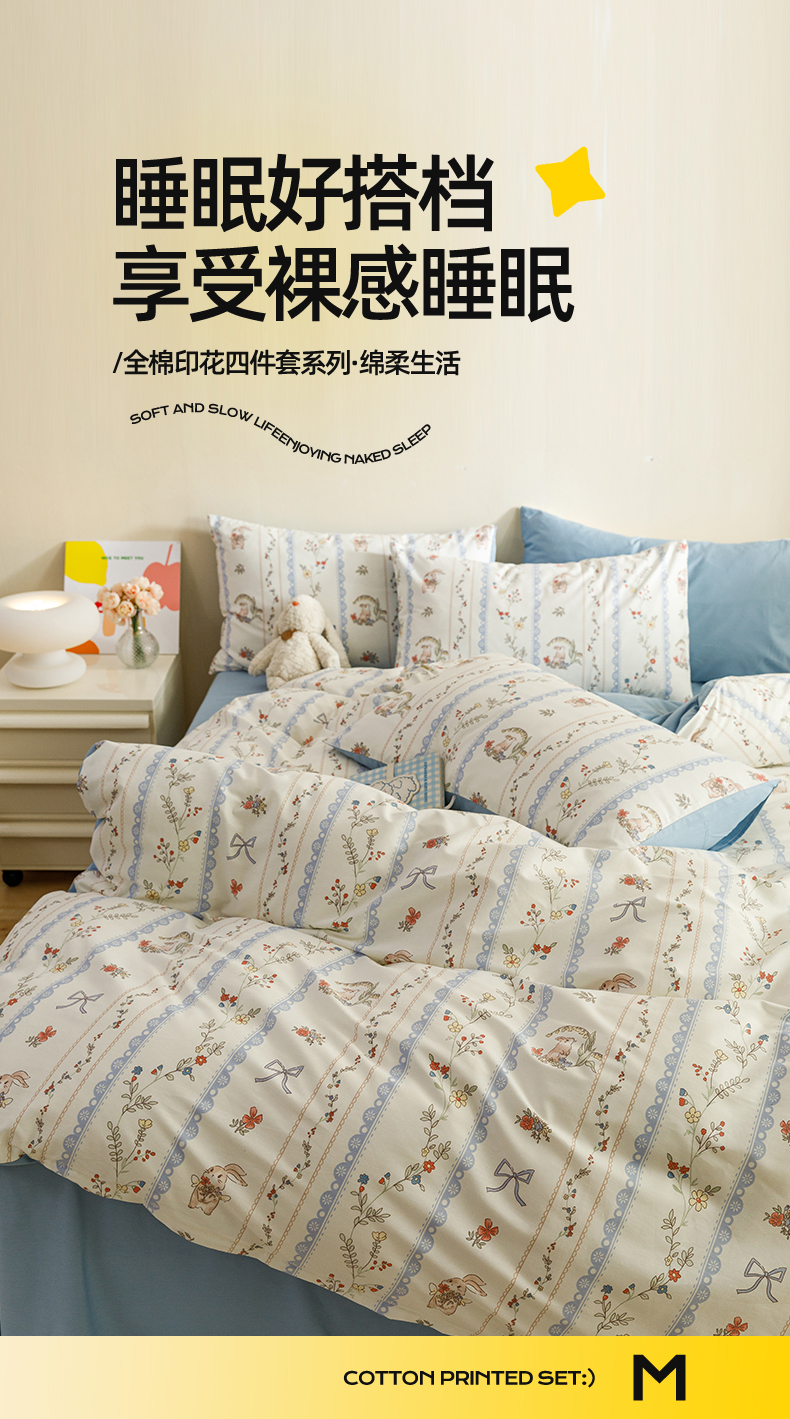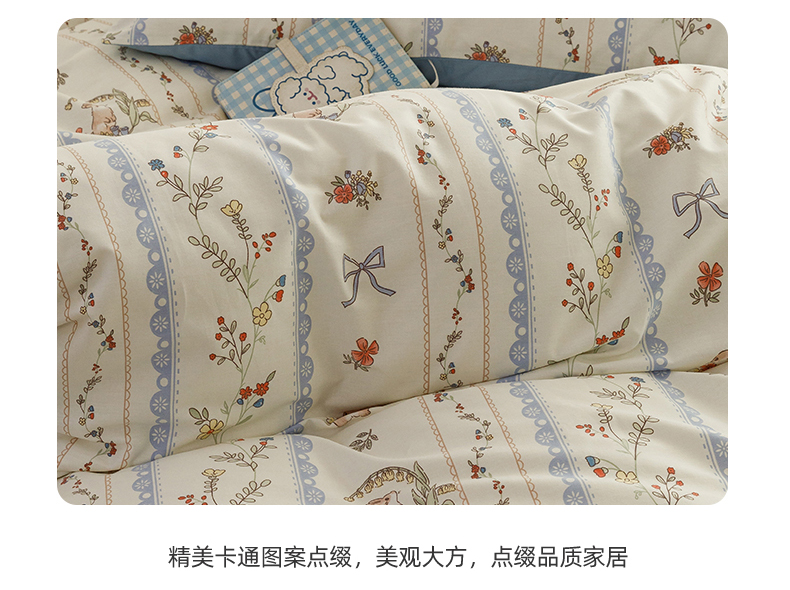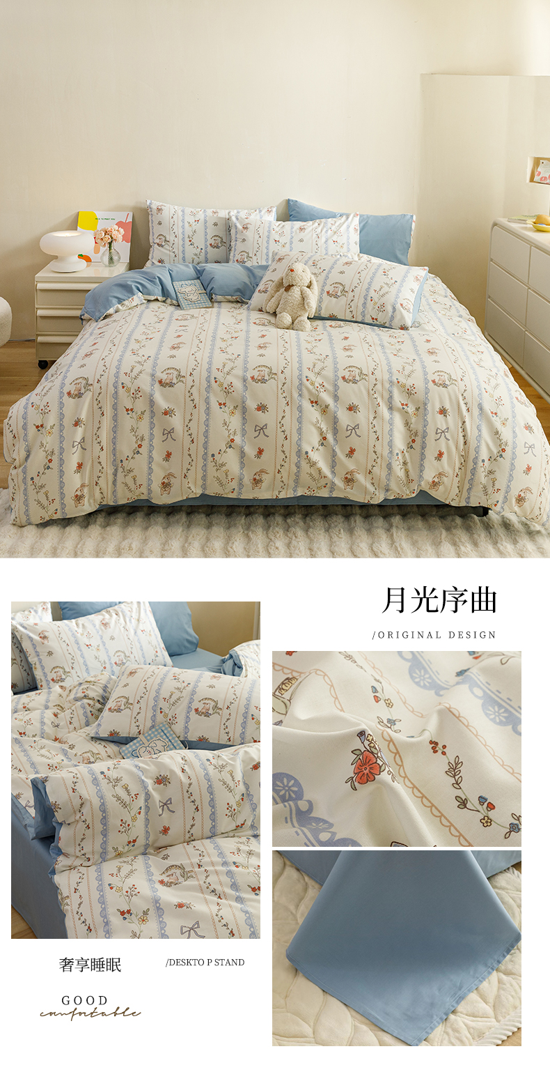 当前位置: 91家纺网 > 商品网购 > 床品套件 > 四件套 > 全棉普通四件套 > 红粉佳人家纺 2024新款纯棉卡通小清新四件套及单品 月光序曲-1