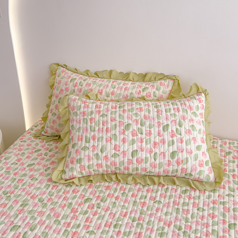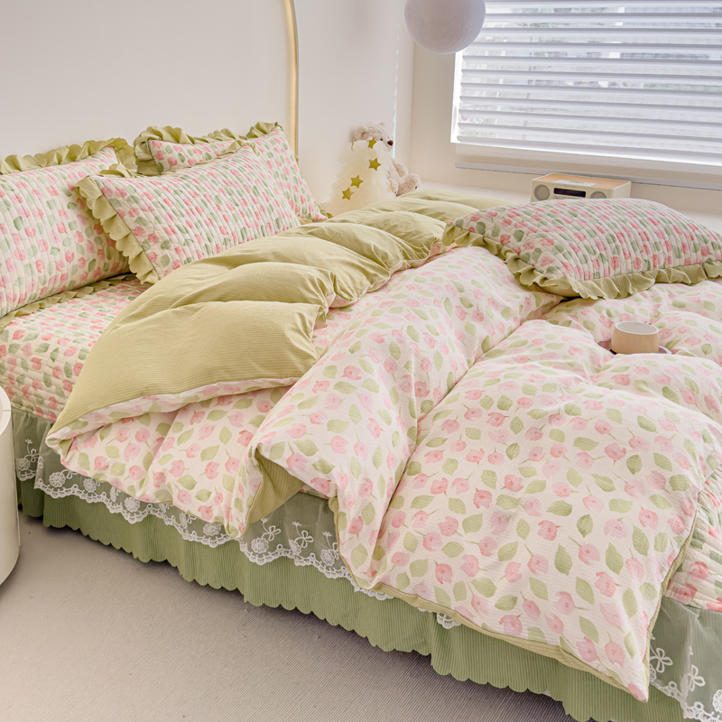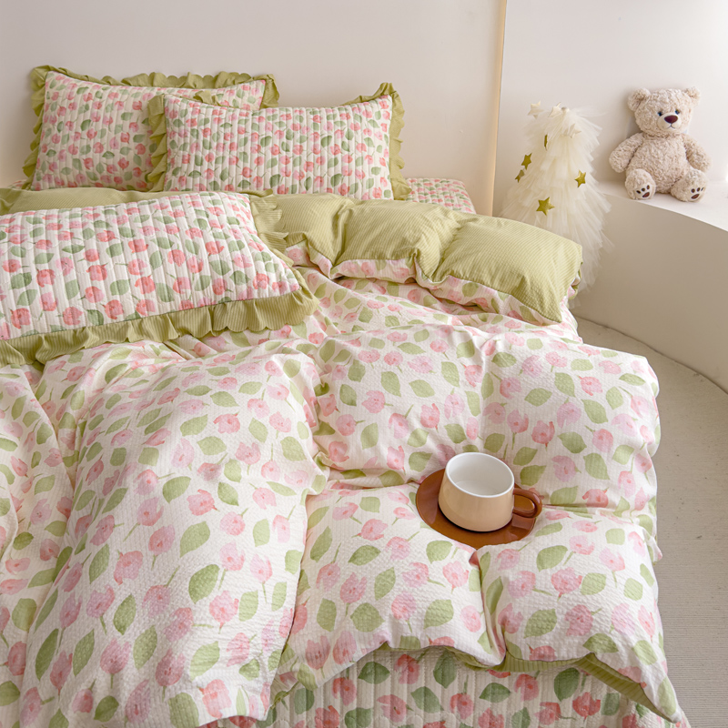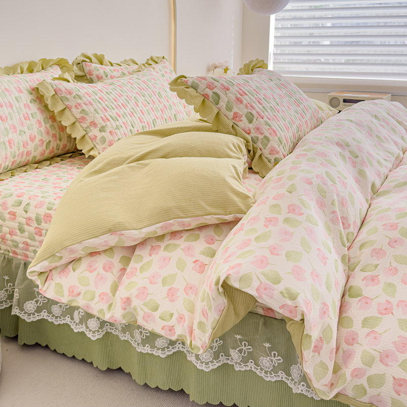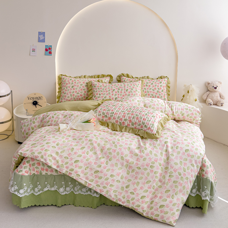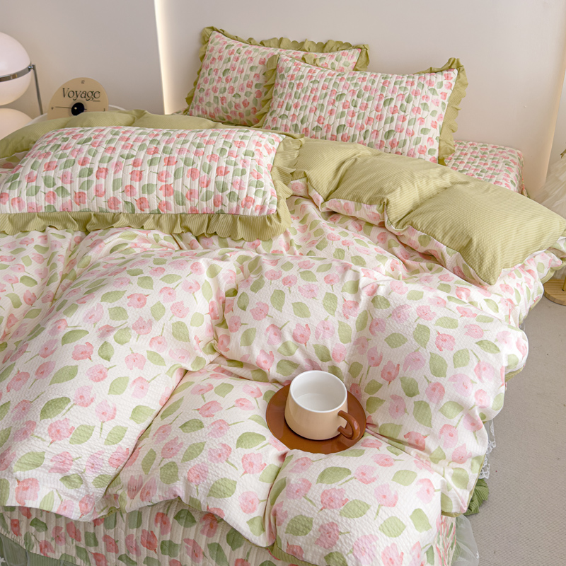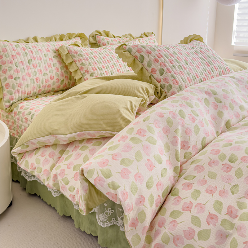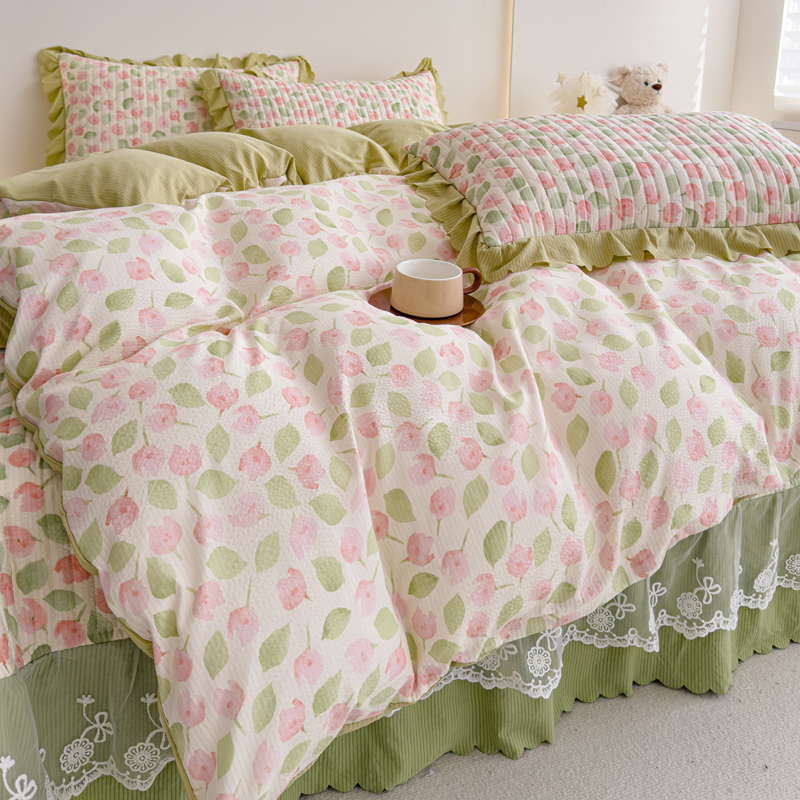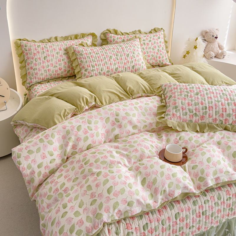 (总)雅眠居 2025爆款针织棉双层纱印花床盖四件套,爱心粉,爱心绿,半夏,蝶恋,粉格蝴蝶结,灰韵,蓝格蝴蝶结,玫瑰庄园,蔷薇,甜心,香草绿,幽幽花香,郁金香,蝴蝶印记,奶油波点,五叶花