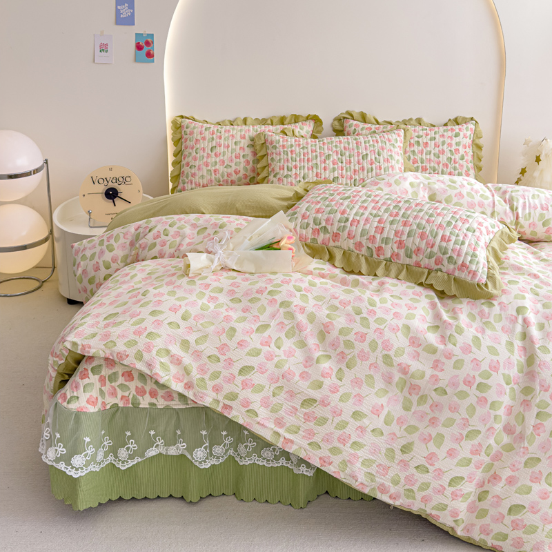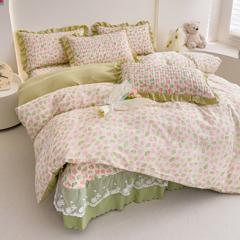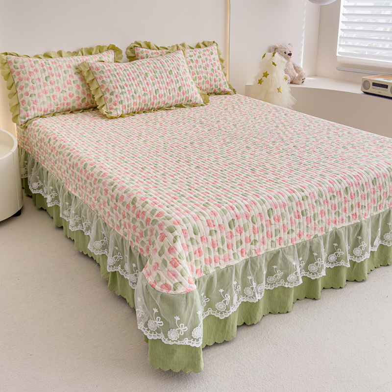 商品名称:2024直播爆款泡泡棉床盖款四件套双层蕾丝花边夹棉床裙款三件套 晨曦