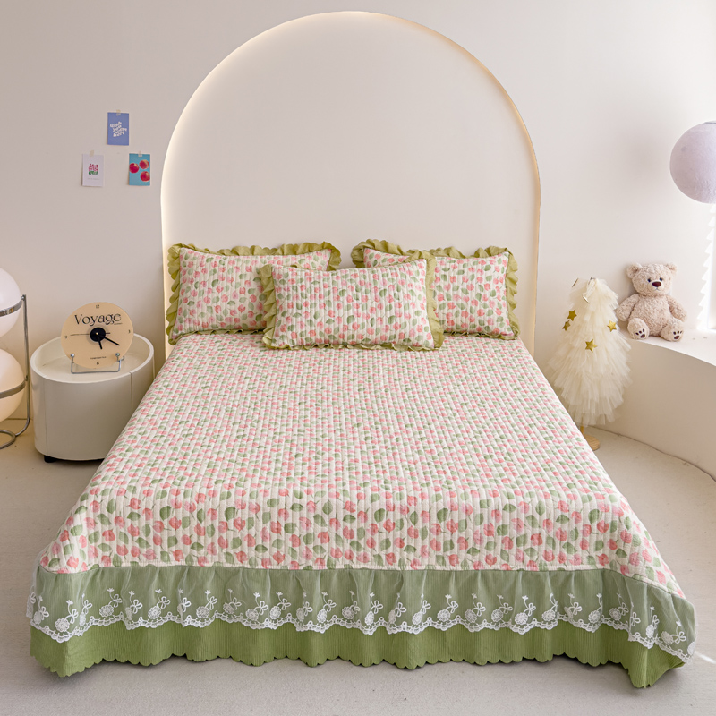 2024直播爆款泡泡棉床盖款四件套双层蕾丝花边夹棉床裙款三件套 晨曦