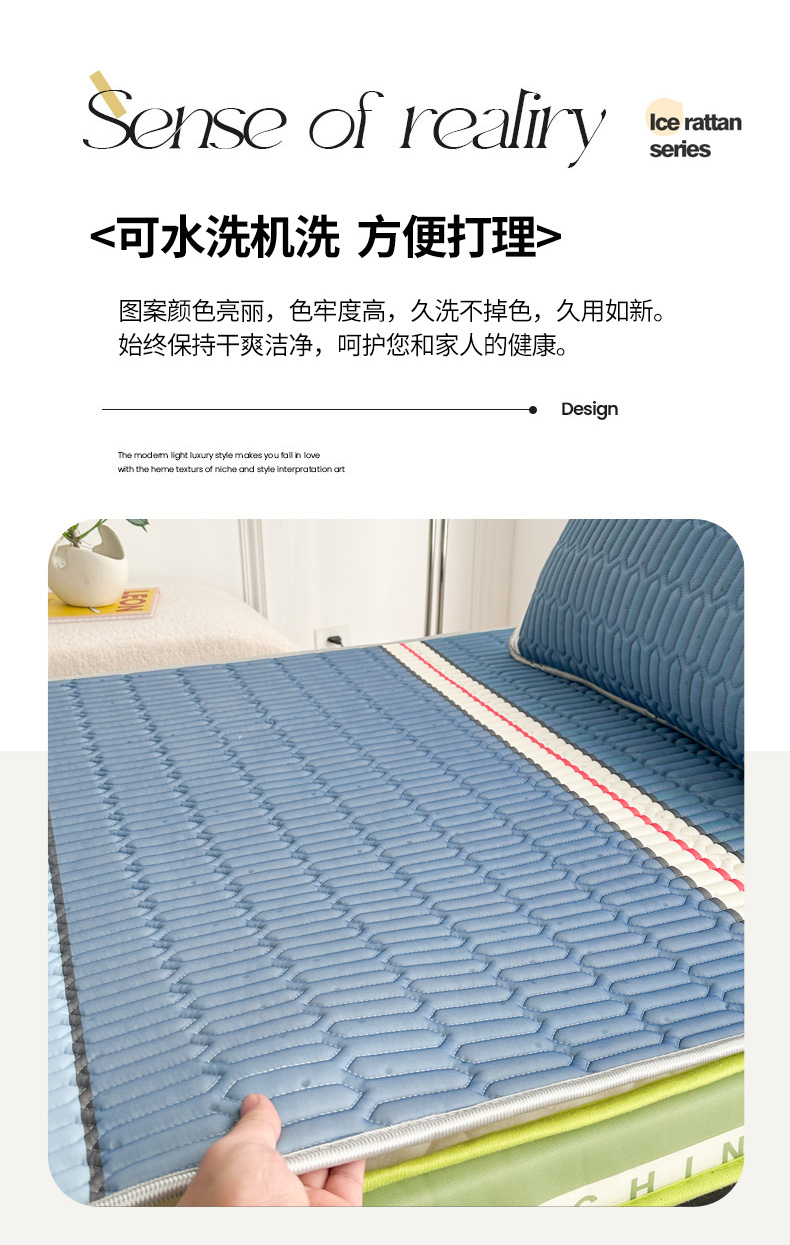 (总)凌云家纺 2025新款100%锦纶凉席床笠款可水洗冰丝席三明治软席,灰色,绿色