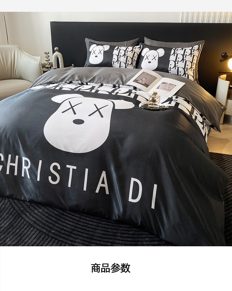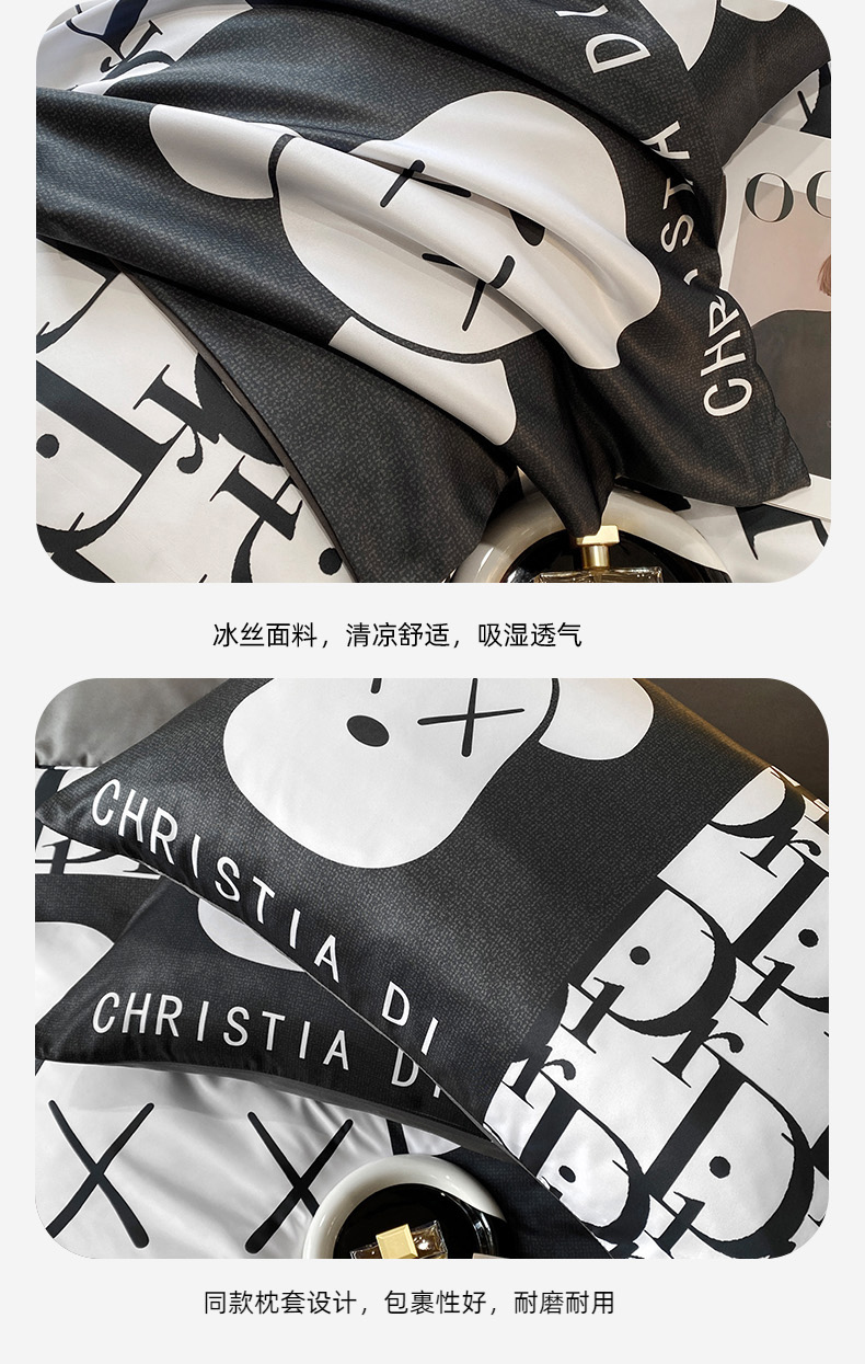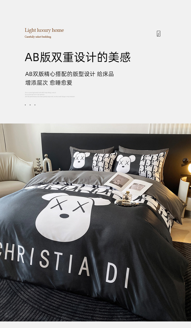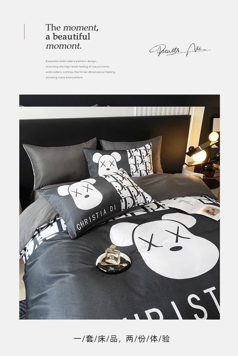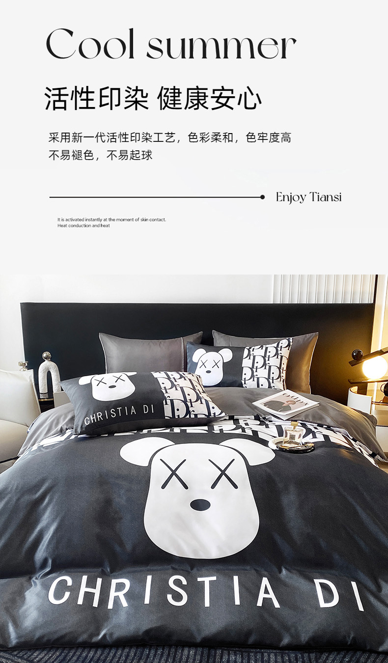 商品名称:色鬼布艺 2024新款冰丝四件套水洗真丝四件套 黑迪熊1