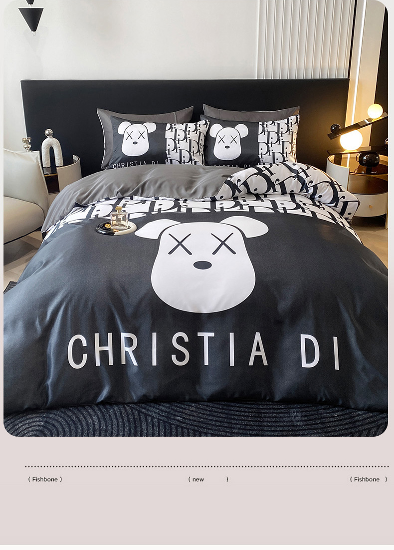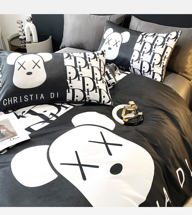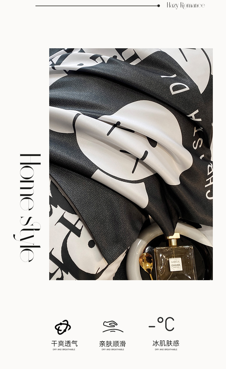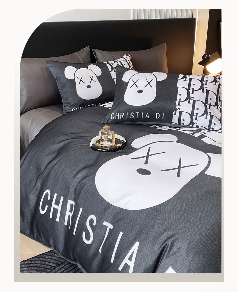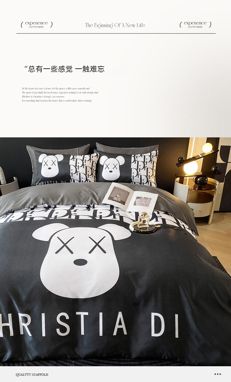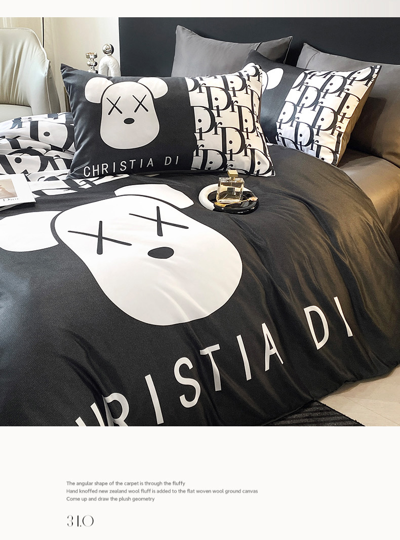 商品名称:色鬼布艺 2024新款冰丝四件套水洗真丝四件套 黑迪熊1