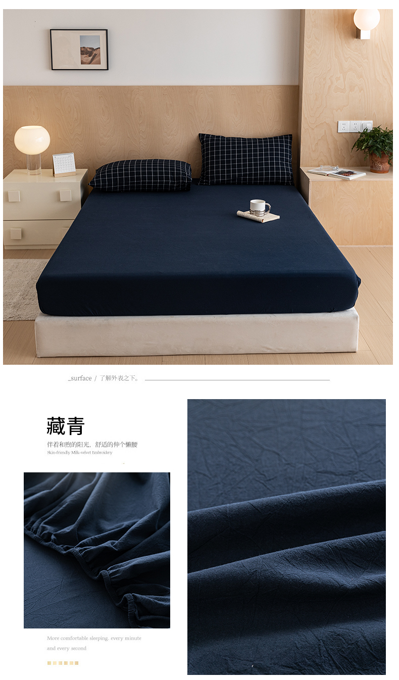 • 91家纺网 家纺一手货源 找家纺 北欧良品 2024新款水洗棉单品床笠、床单--纯色款(床笠、床单) 藏青