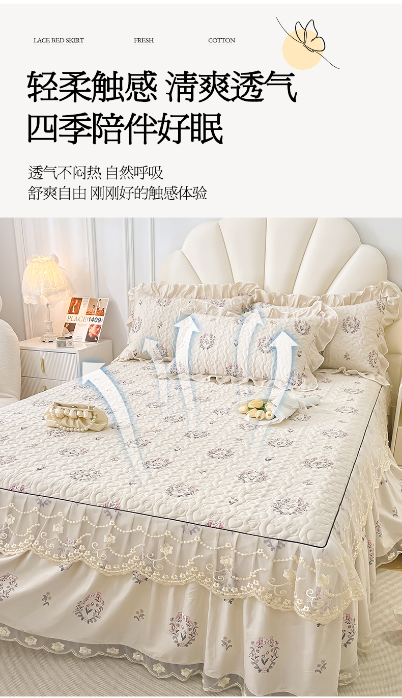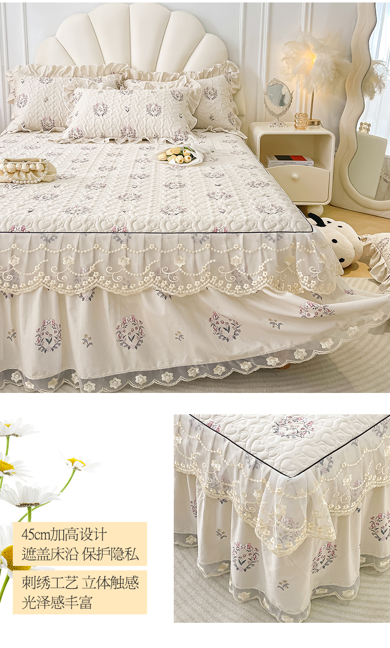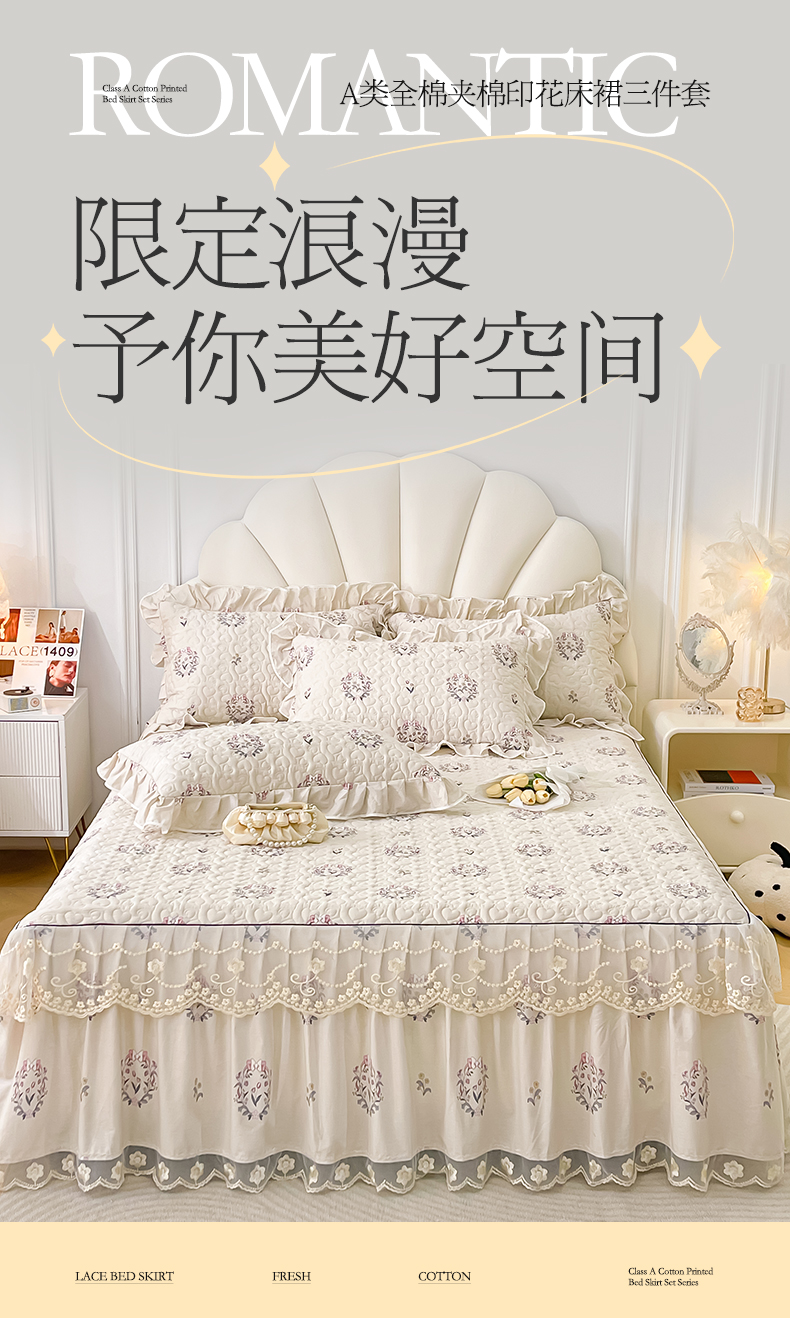 • 91家纺网 家纺一手货源 找家纺 宜凡家纺 2024新款全棉夹棉印花床裙系列三件套 童梦爱丽丝