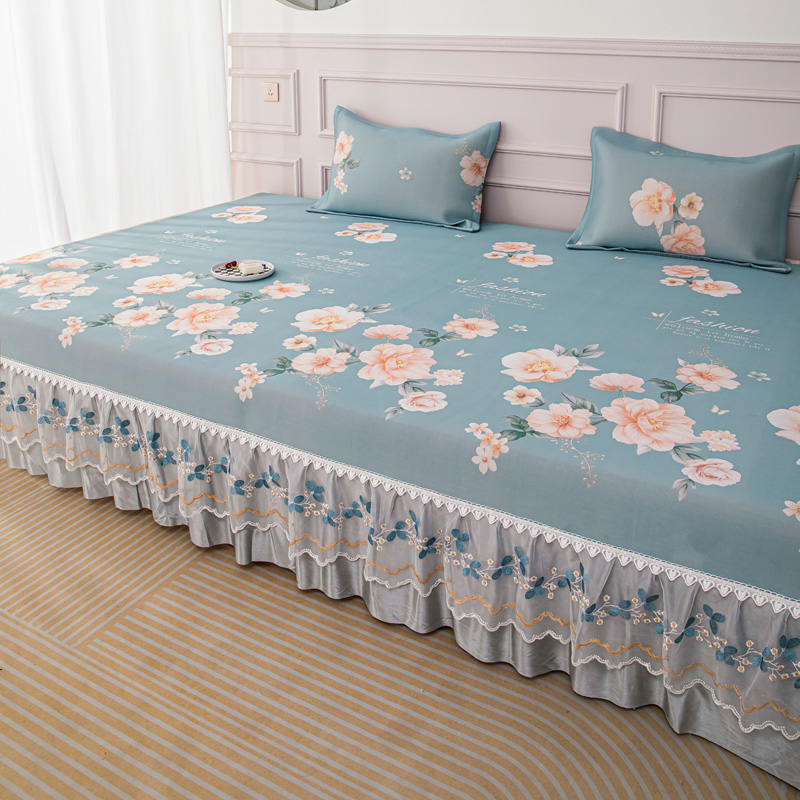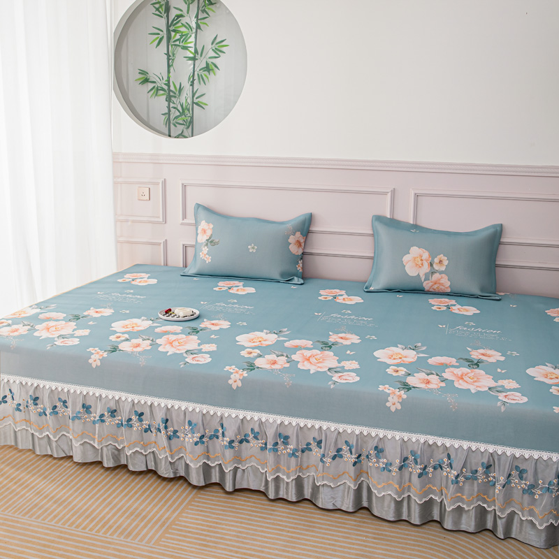 • 91家纺网 家纺一手货源 找家纺 手艺人沙发垫炕垫 2025新款三明治冰丝花边凉席 L79