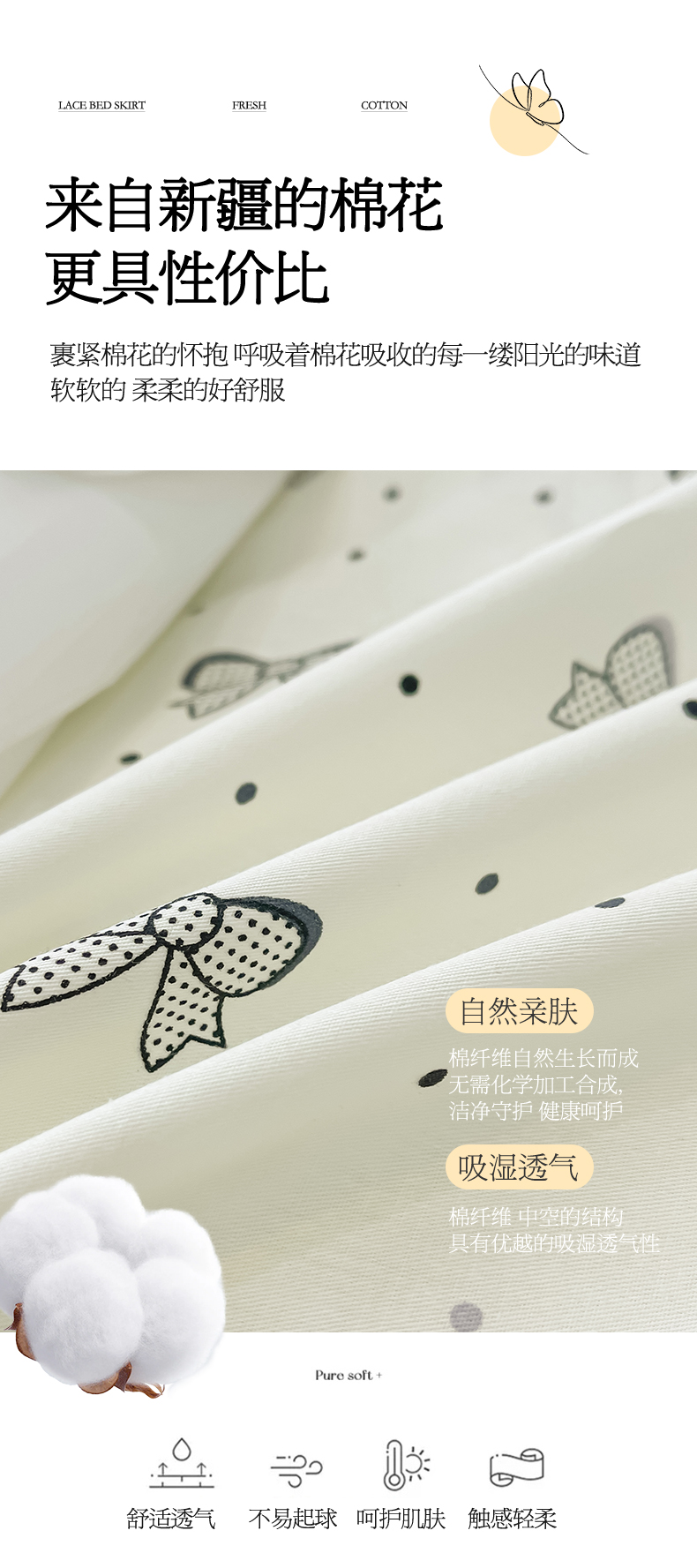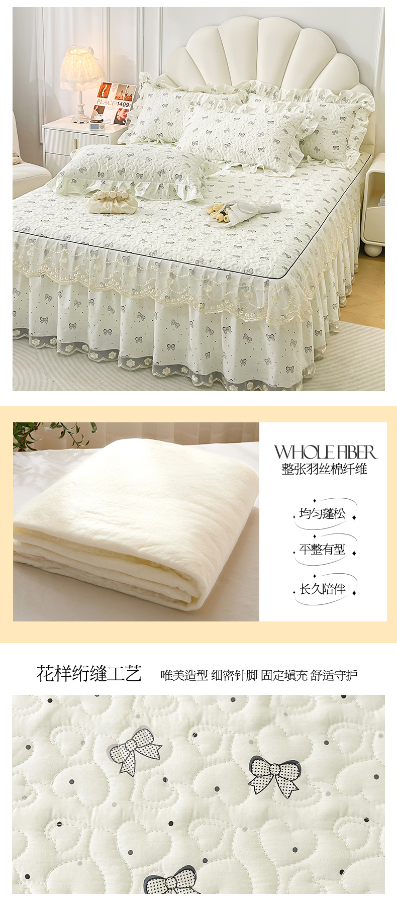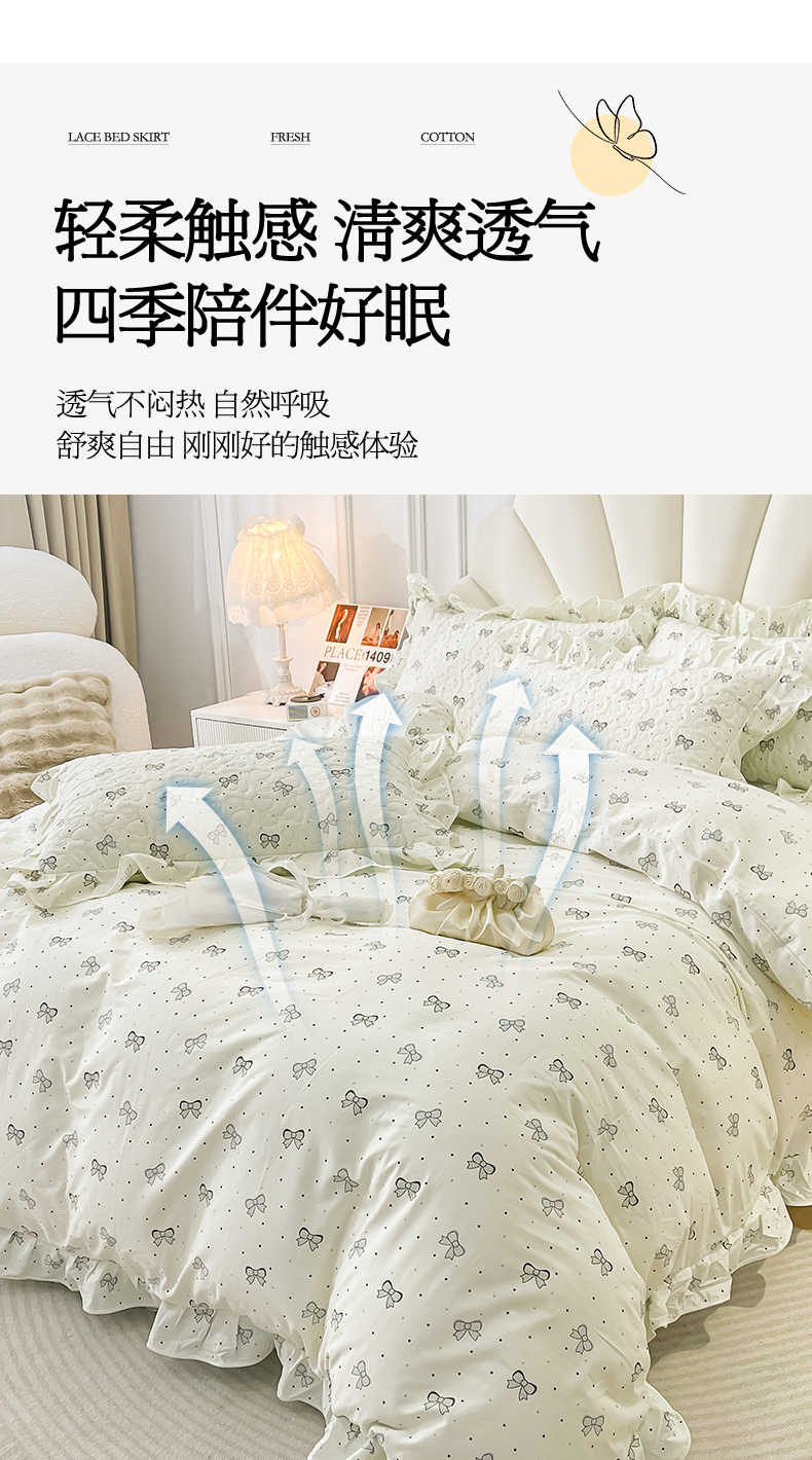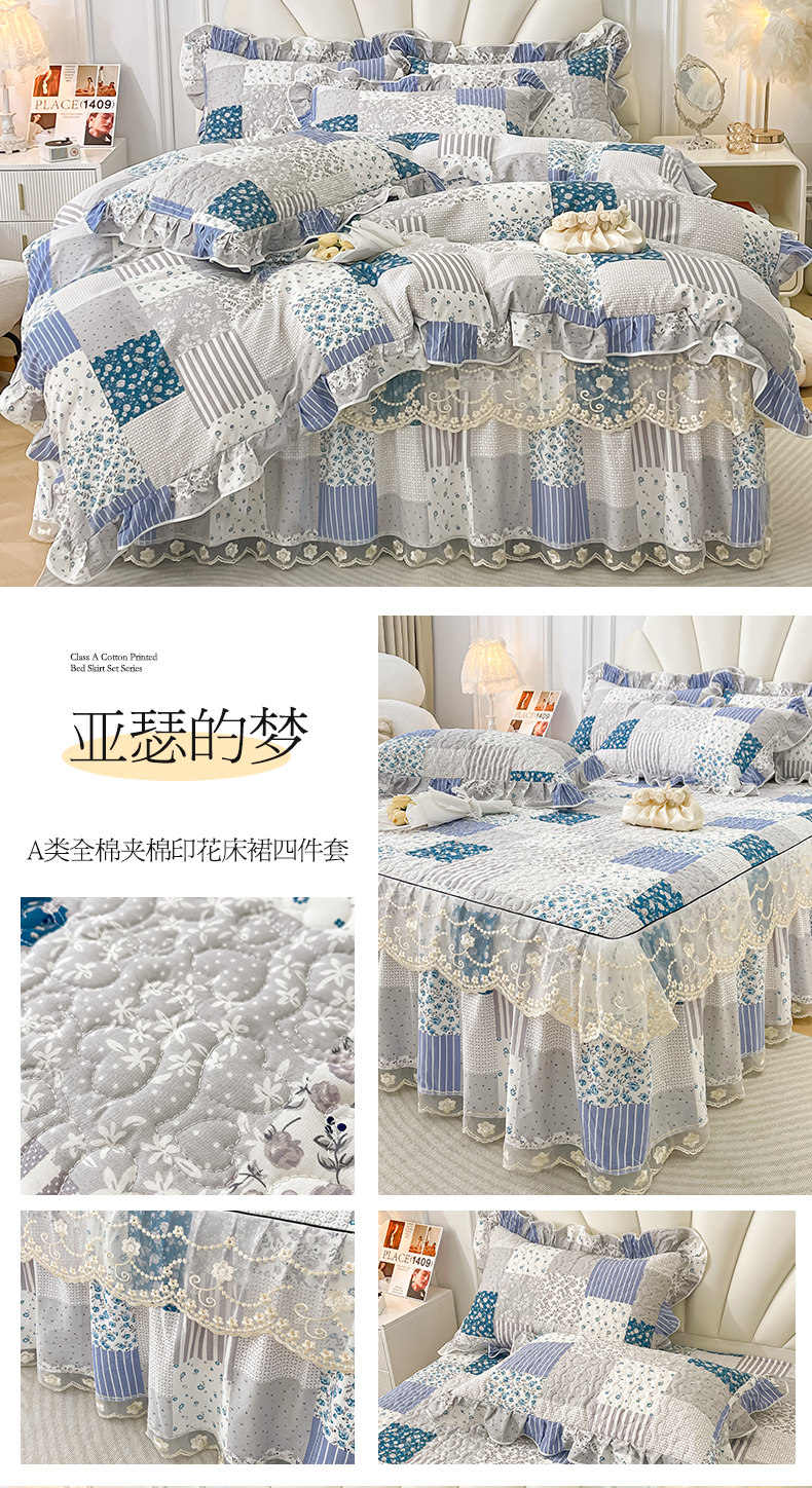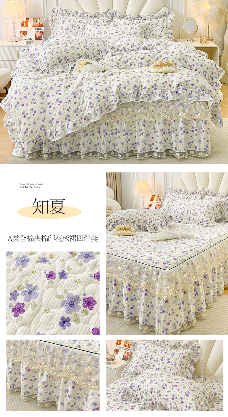 宜凡家纺 2024新款全棉夹棉印花床裙系列四件套 春天派对