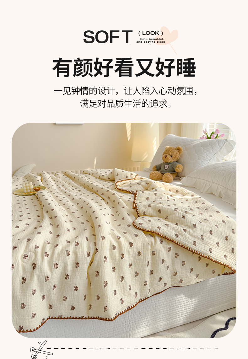 商品名称:芯恋 2025新款母婴级全棉皱皱纱双层纱夏被 年轮