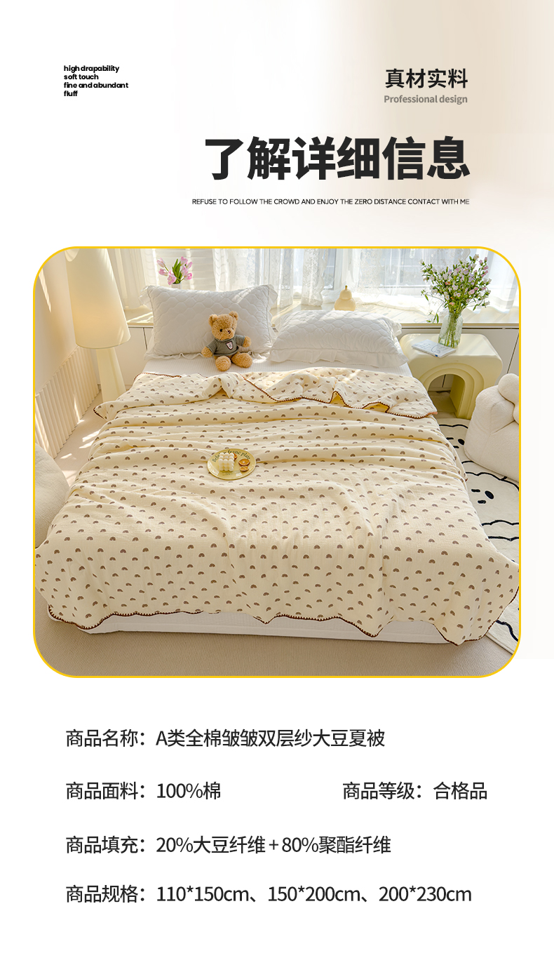 (总)芯恋家居 2025新款秋冬款母婴级全棉皱皱双层纱大豆被春秋被加厚大豆被,财源广进,草莓花朵,春意盎然,法式腊肠犬,花颜,花姿,可爱熊,陌上花开,穗花,小龙人,小蘑菇,小兔兔,小棕熊,星星月亮,熊baby,竹林熊猫
